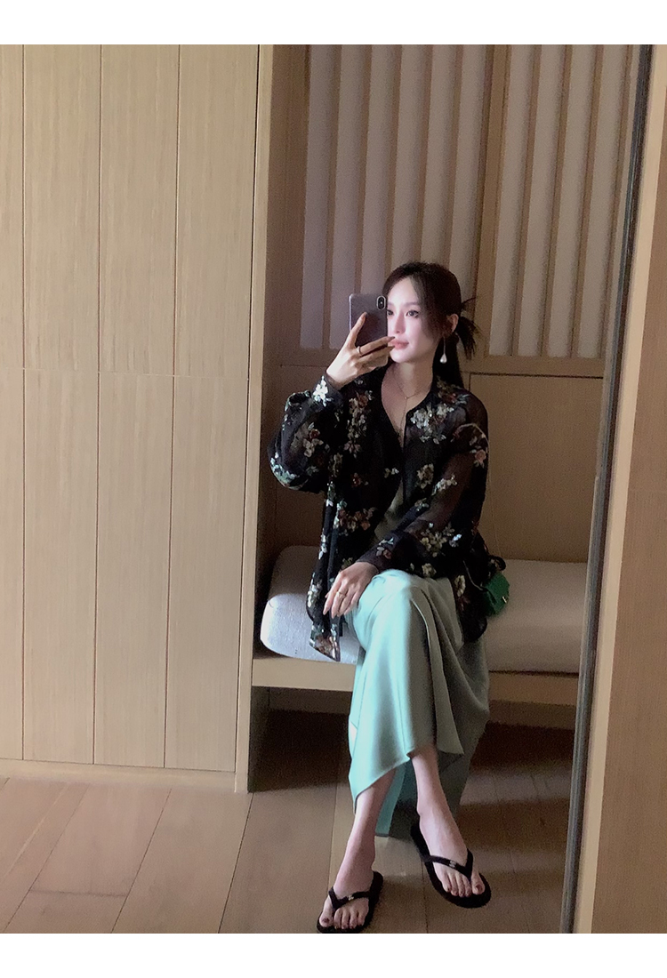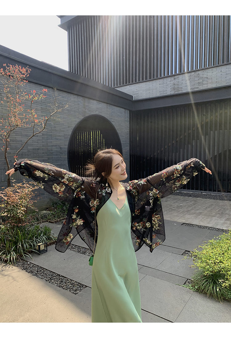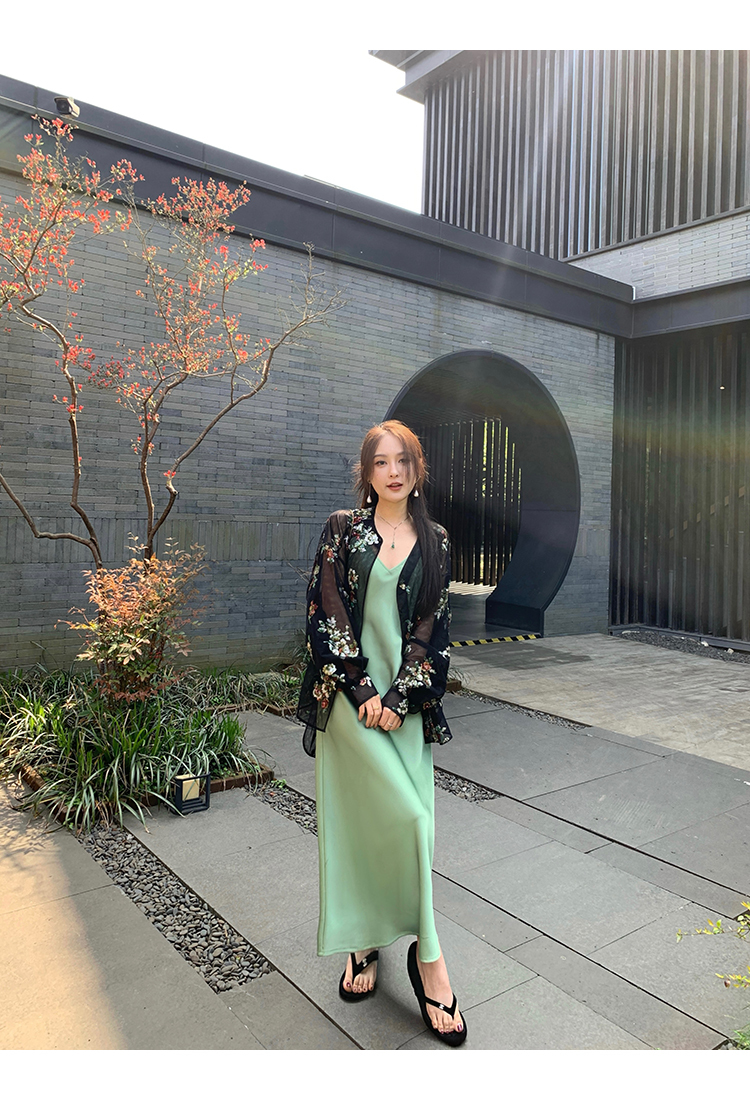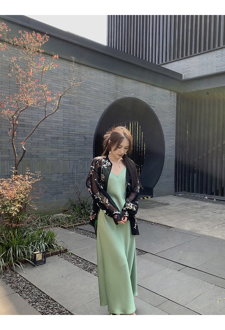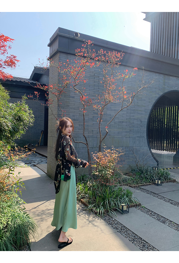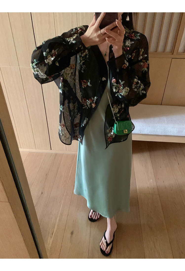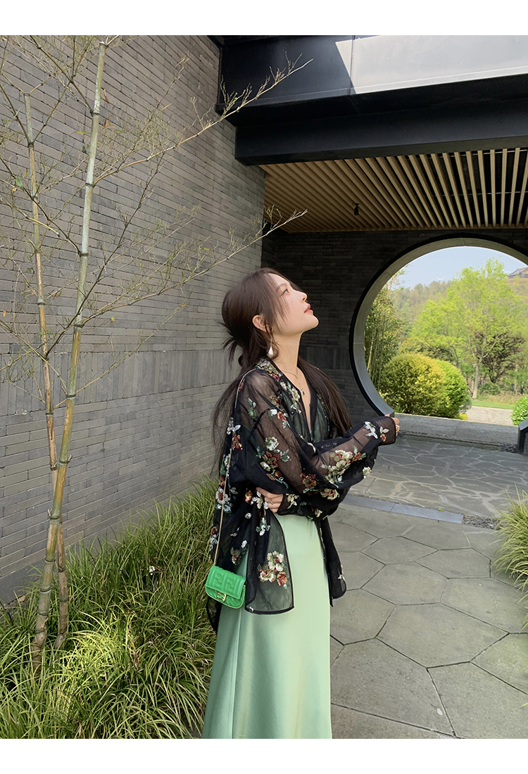*o-ha-you*【FMQC2041047】浮生若夢新中式重工珠片繡半透偏襟襯衫/曼妙流光緞面吊帶裙