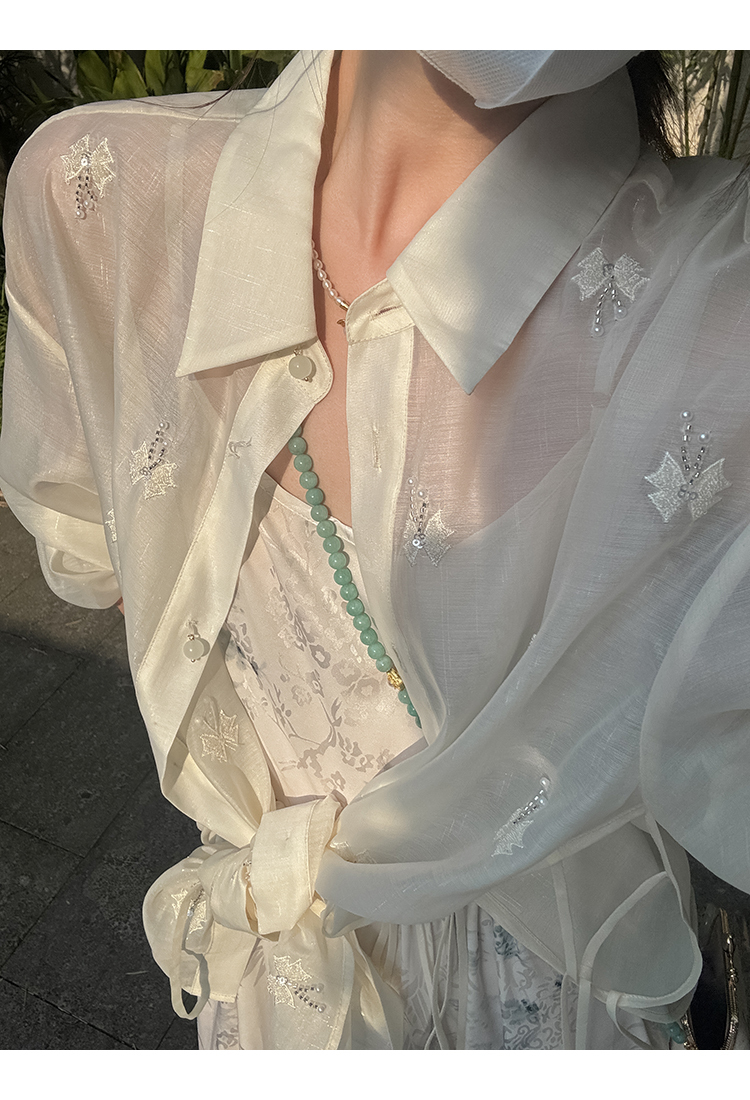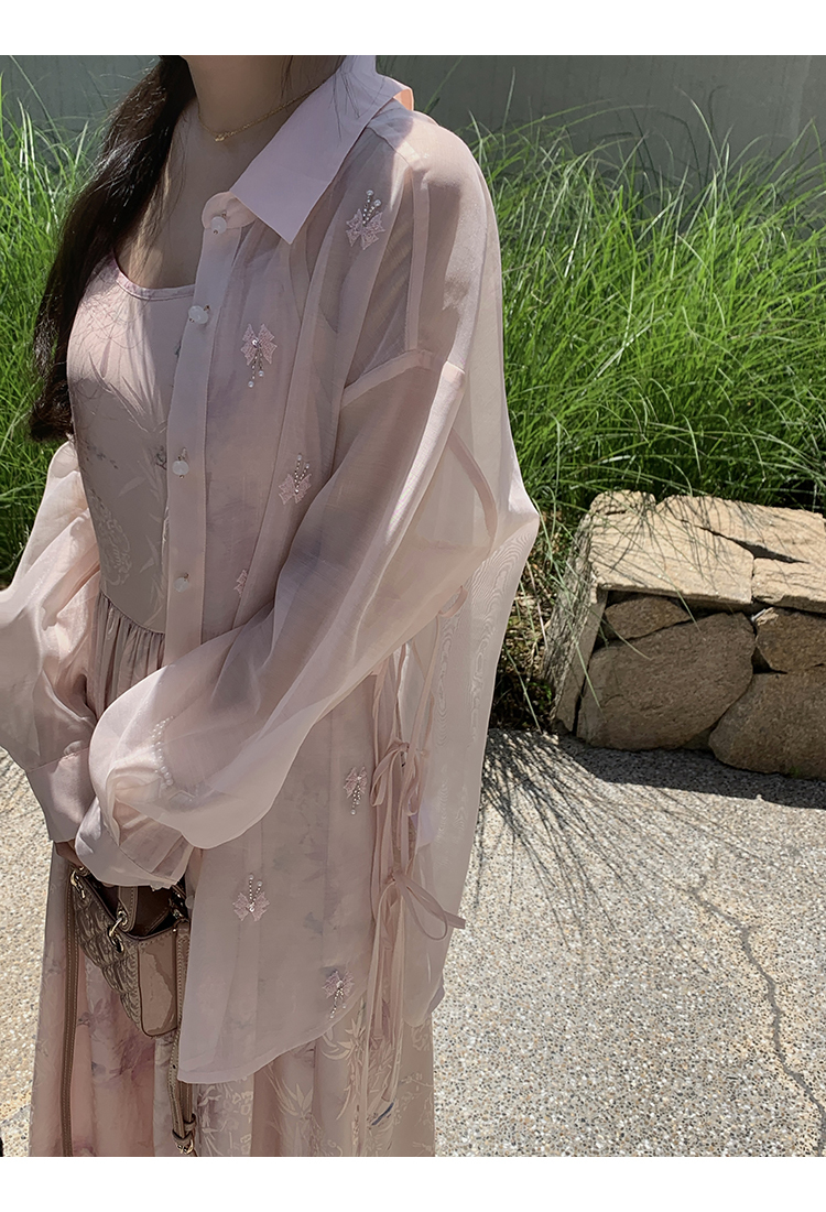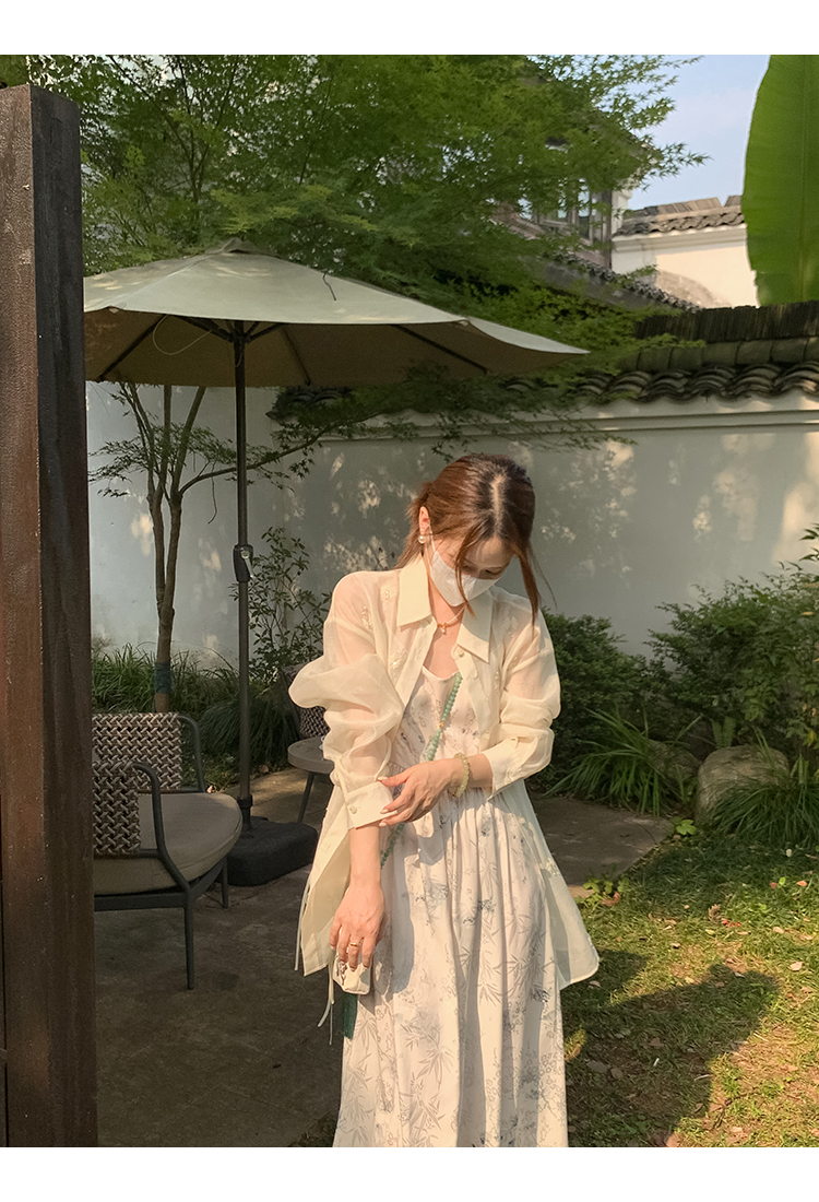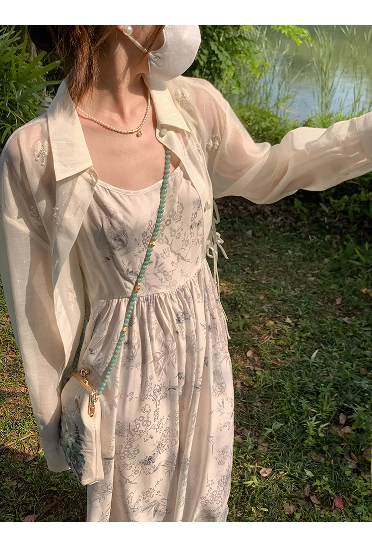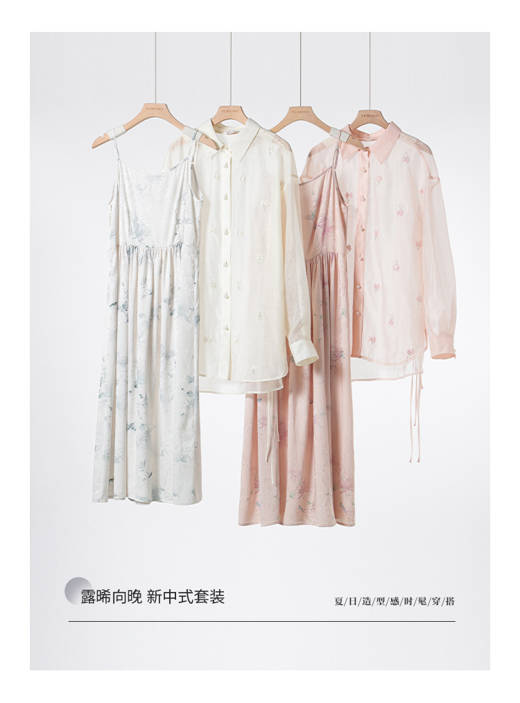 *o-ha-you*【FMQC2042014】露晞向晚清冷禪意新中式套裝重工釘珠刺繡空氣襯衫/吊帶連衣裙洋裝