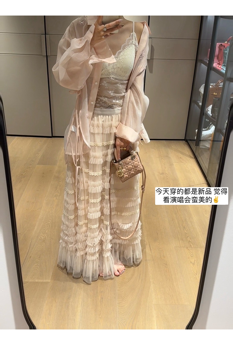 裙子設計下擺斜裁,手工抽著褶,做到自然的蓬量且不顯胖