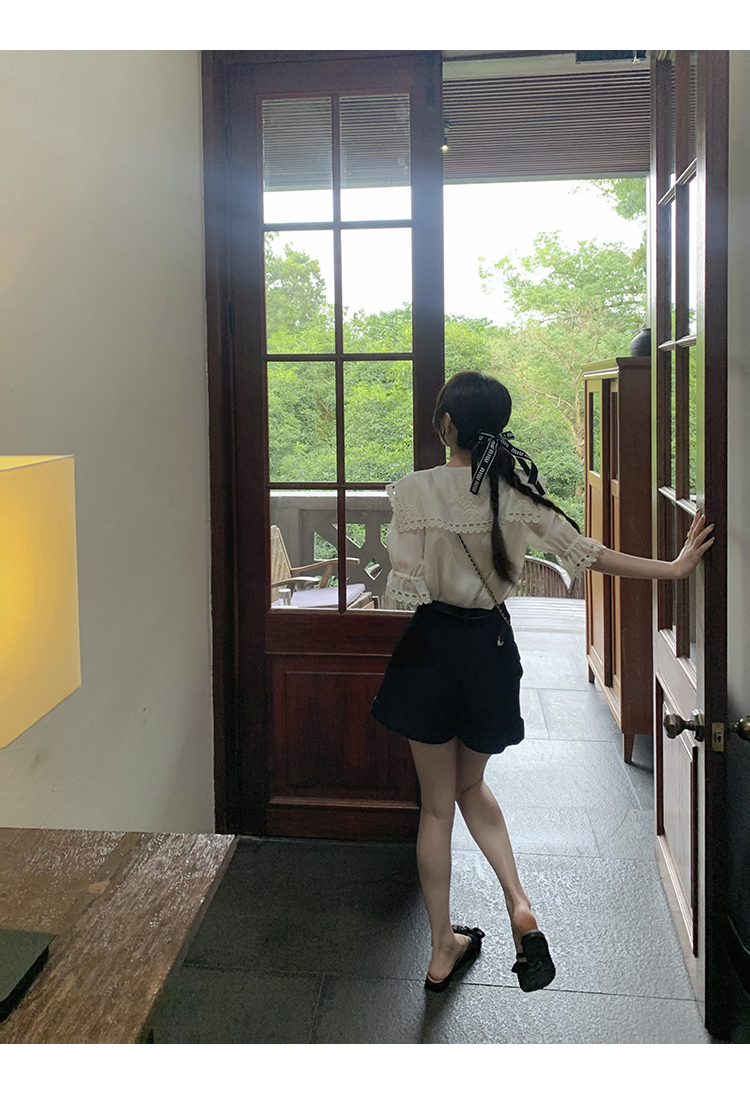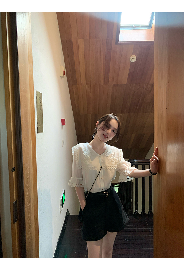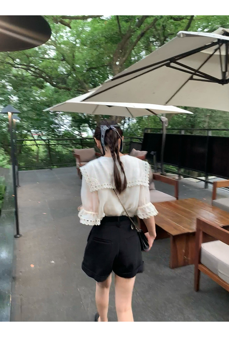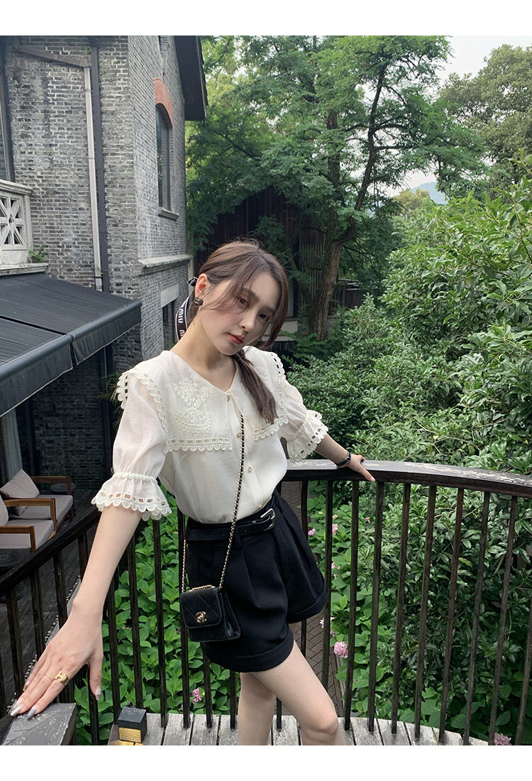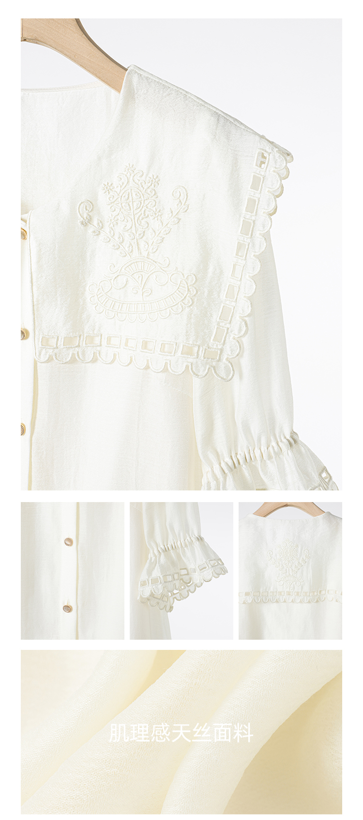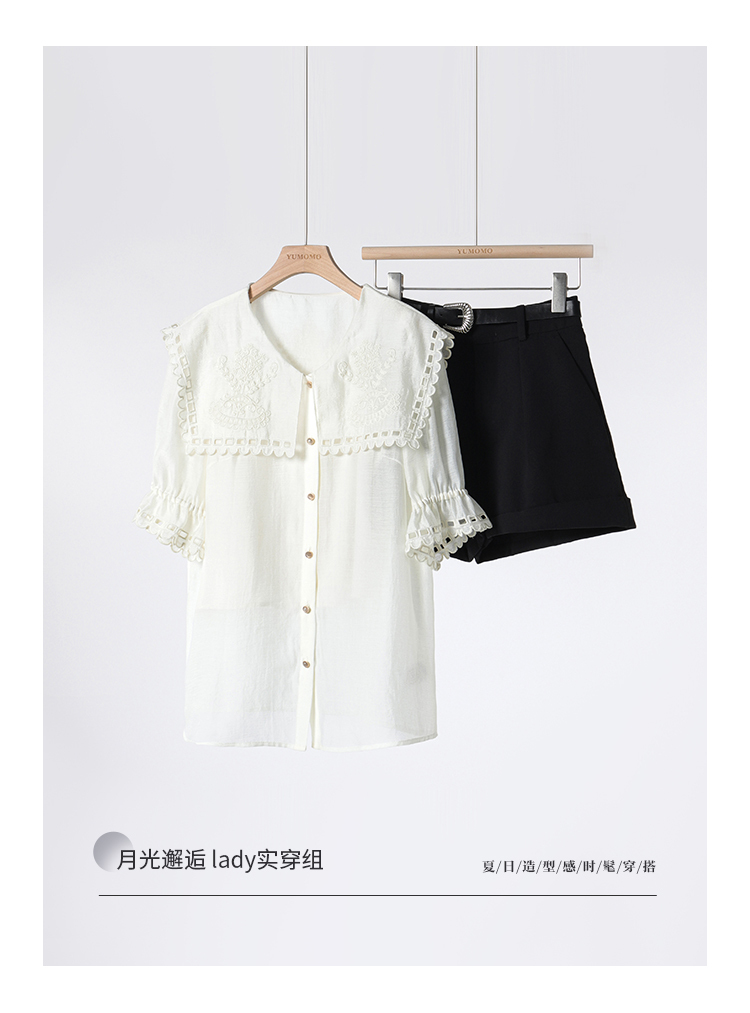 *o-ha-you*【FMQC2042023】月光邂逅lady實穿組肌理天絲刺繡海軍領襯衫+吊帶/短褲