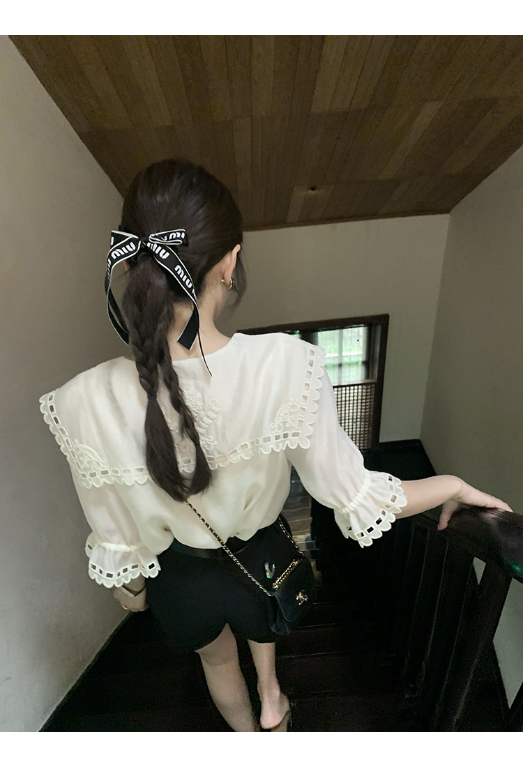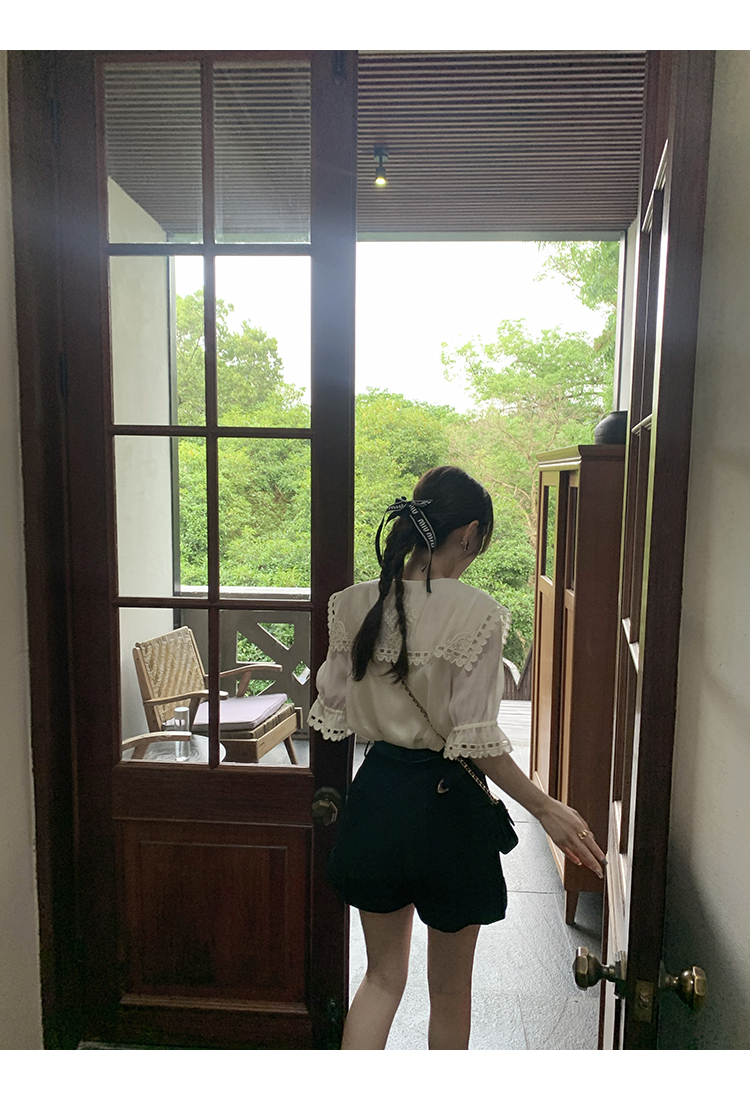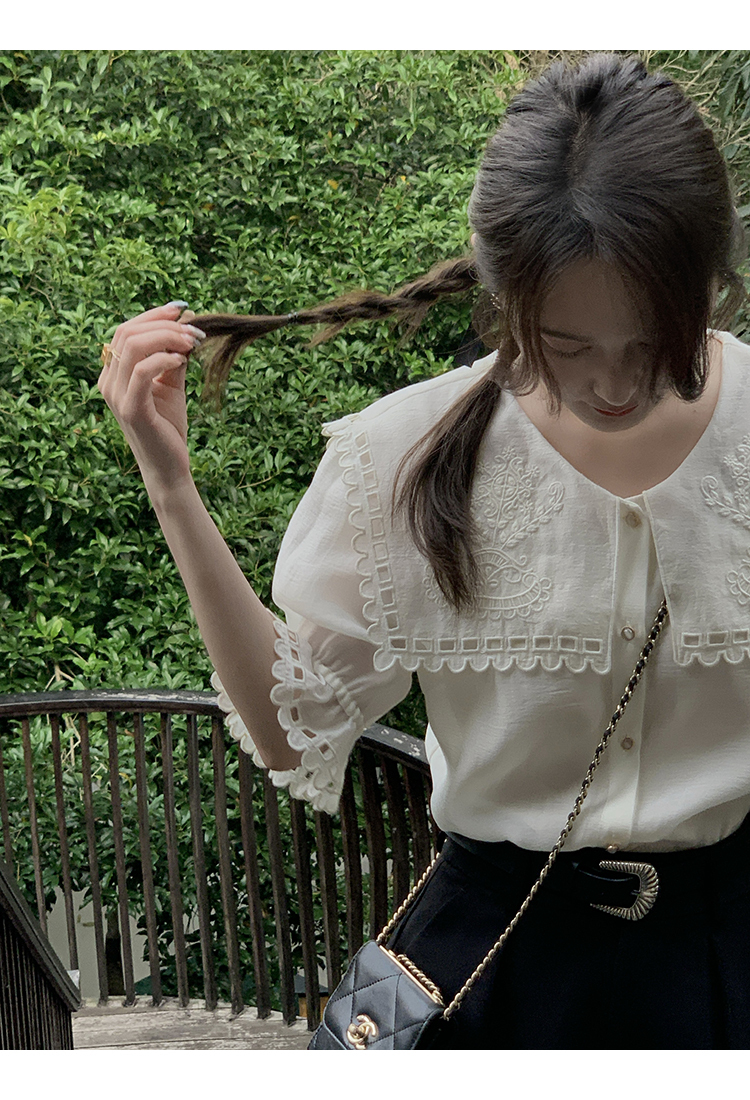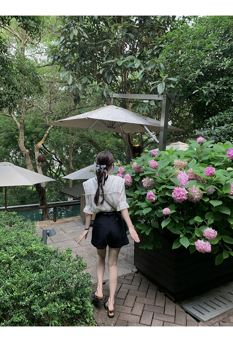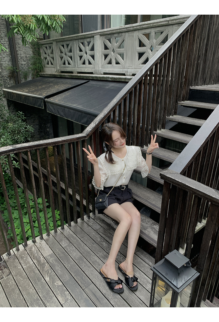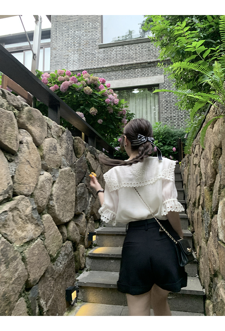 *o-ha-you*【FMQC2042023】月光邂逅lady實穿組肌理天絲刺繡海軍領襯衫+吊帶/短褲