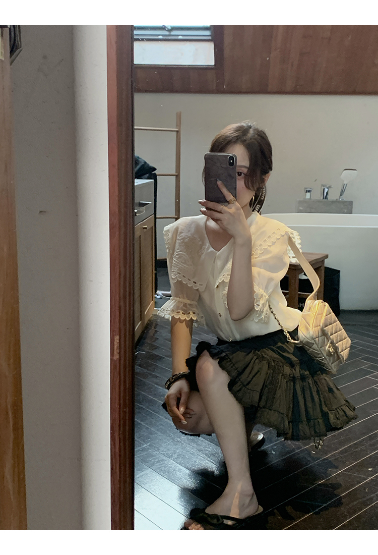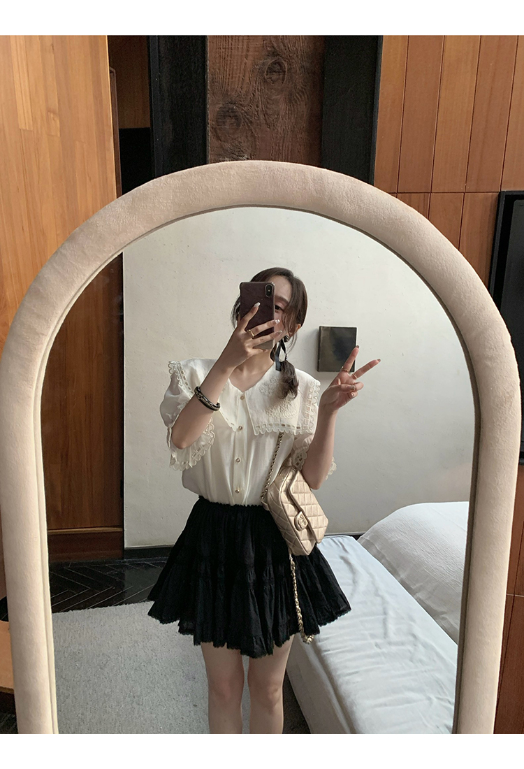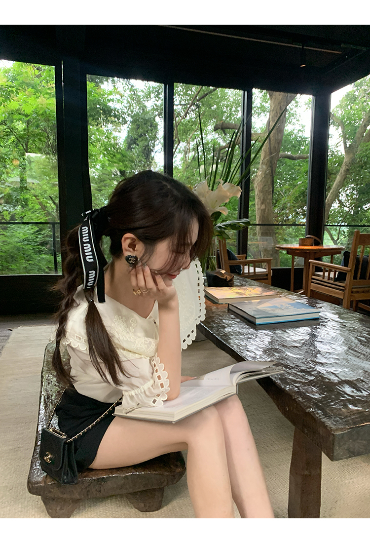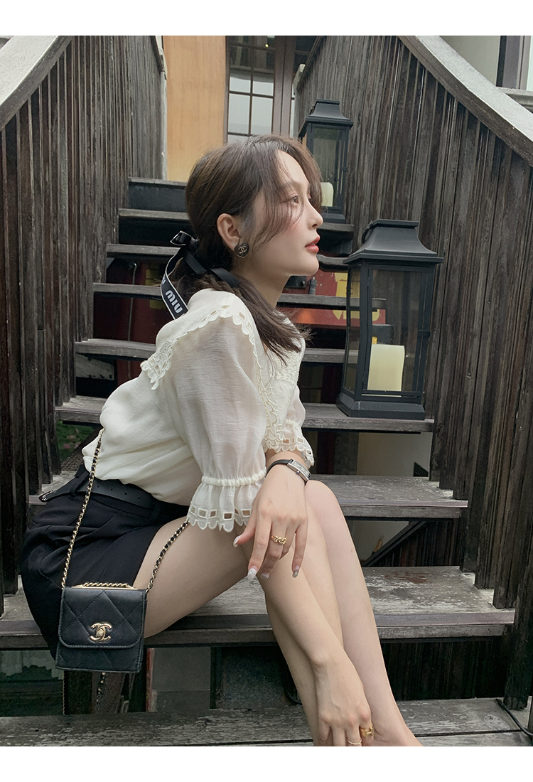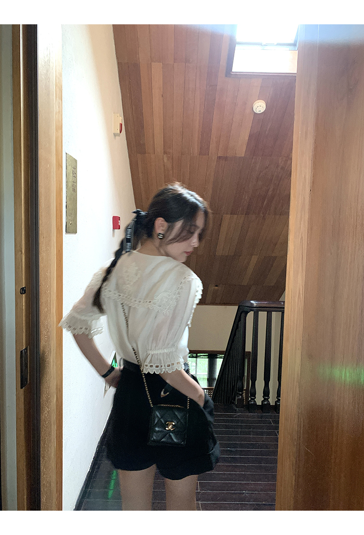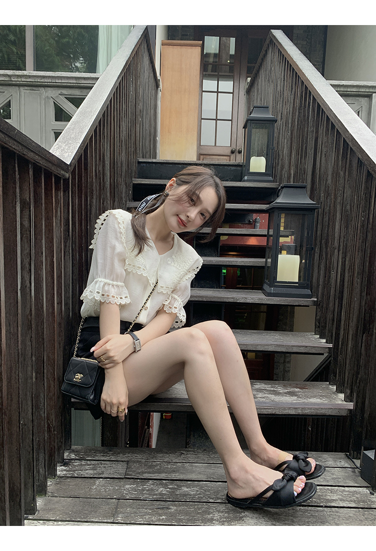*o-ha-you*【FMQC2042023】月光邂逅lady實穿組肌理天絲刺繡海軍領襯衫+吊帶/短褲
