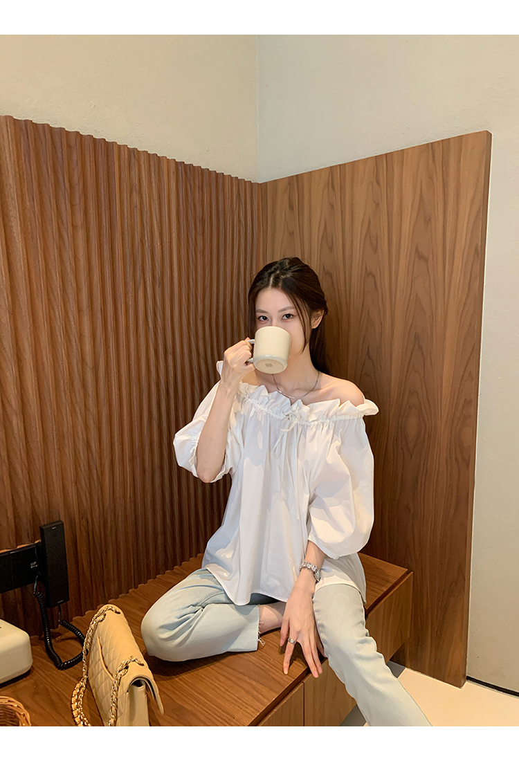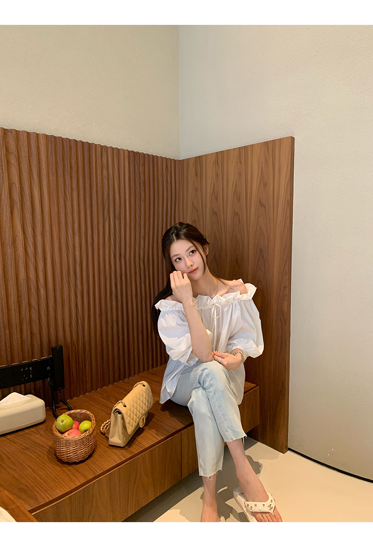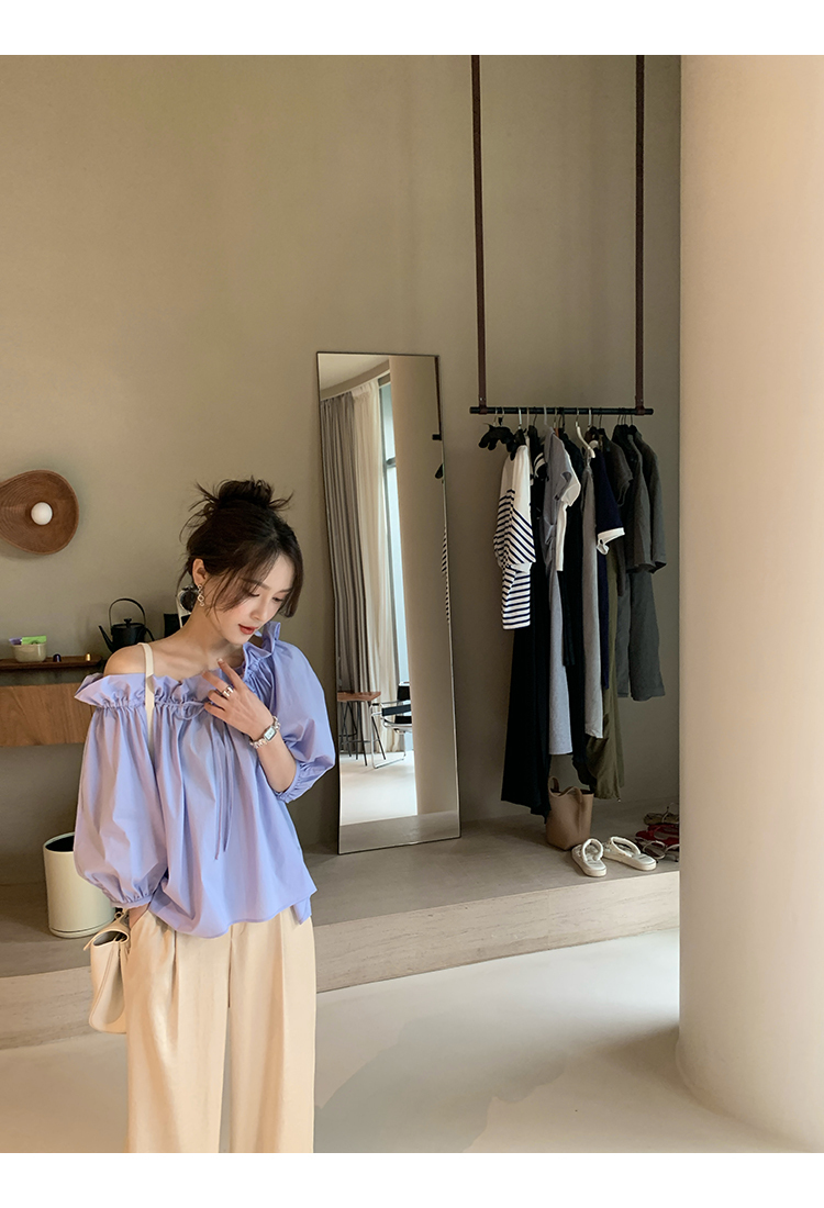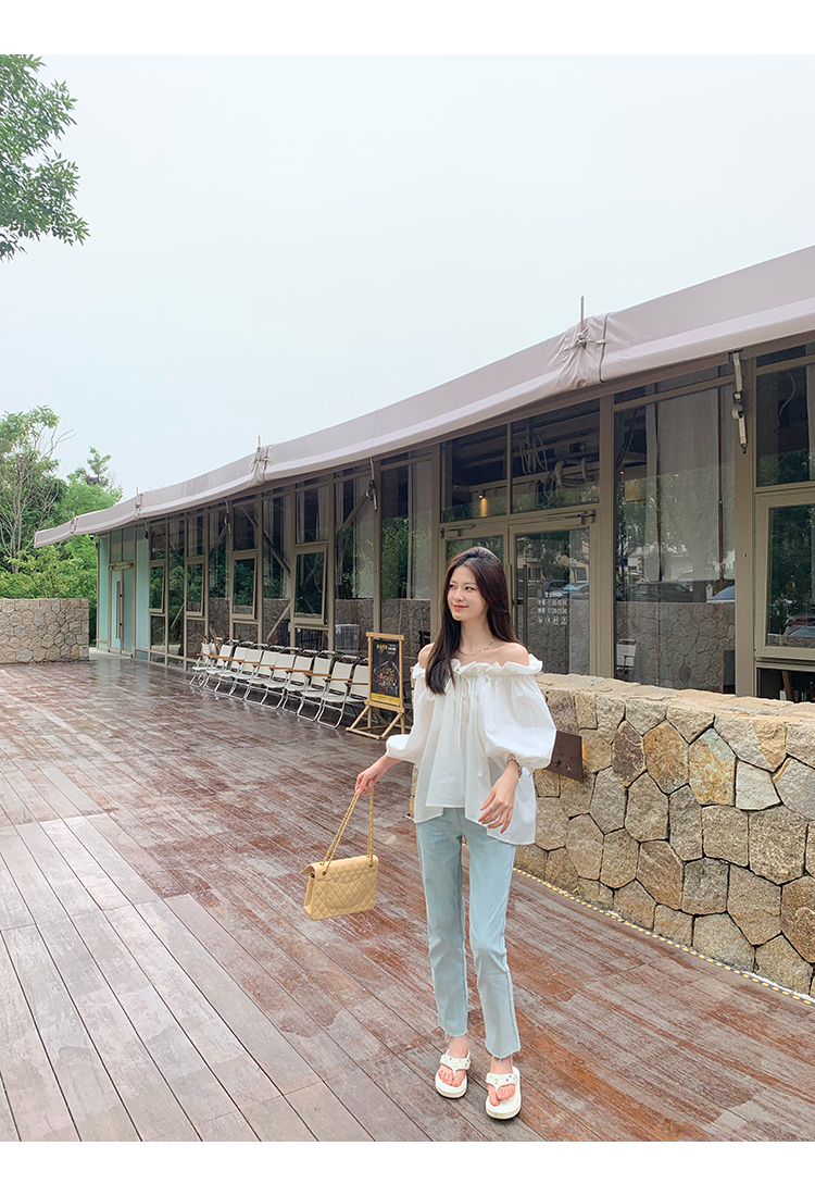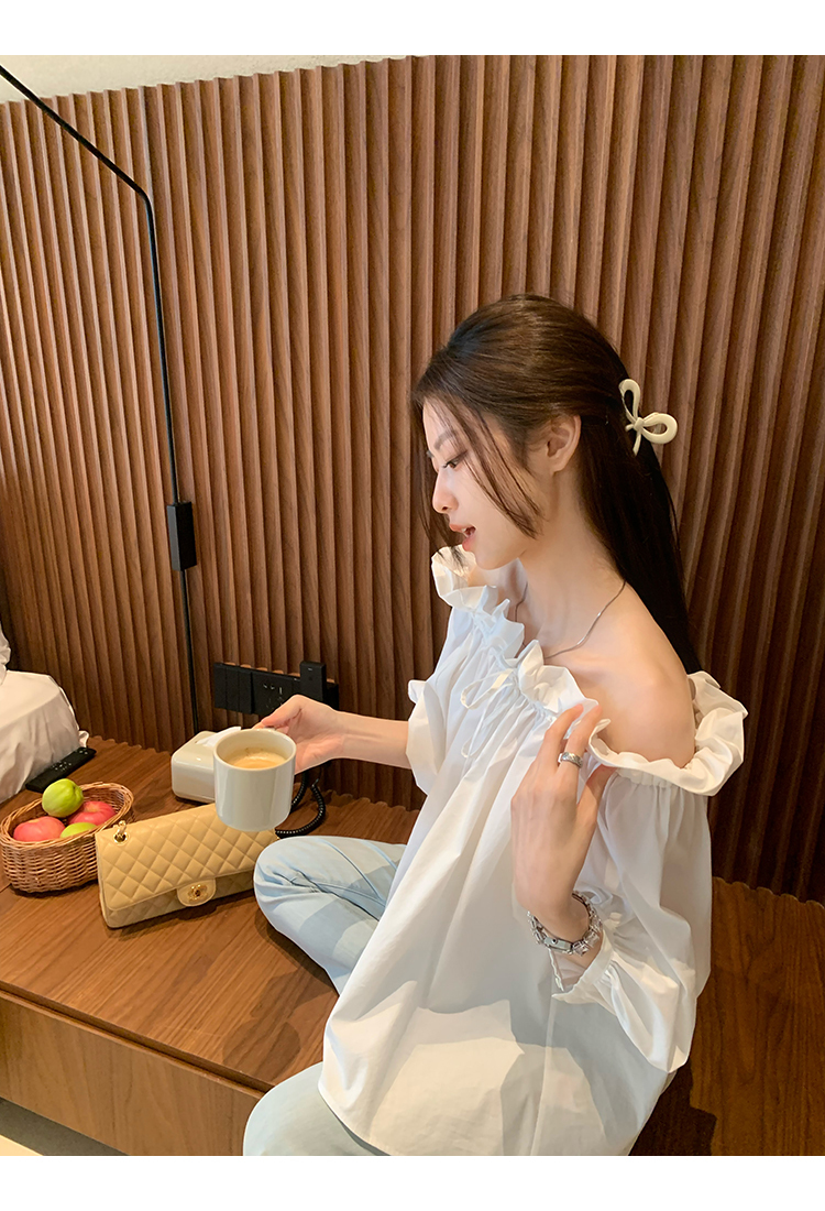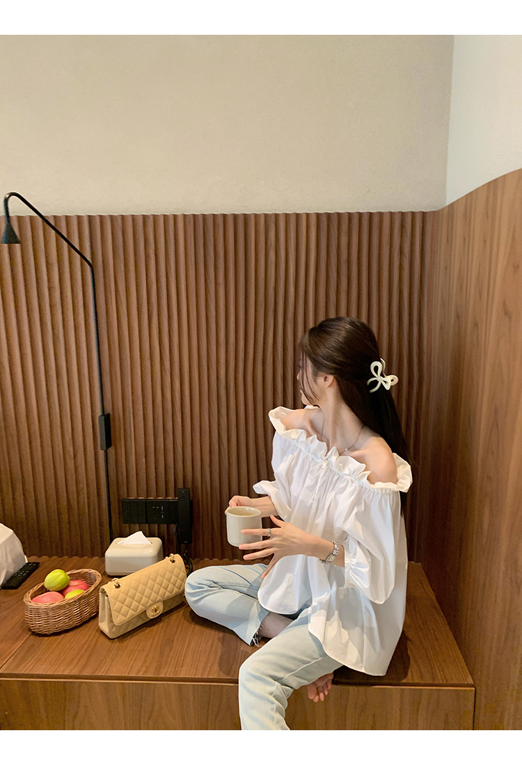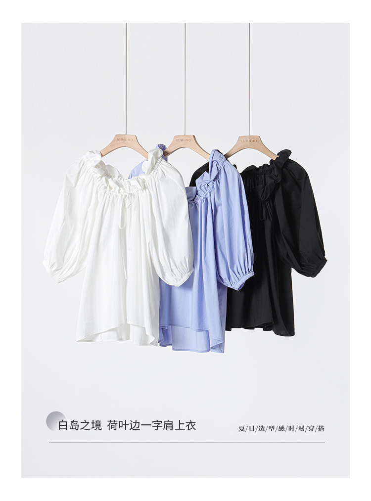 *o-ha-you*【FMQC2042033】白島之境高密高織彈性棉多季實穿法式溫柔風荷葉邊一字肩上衣-3色