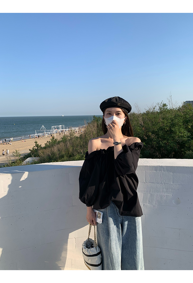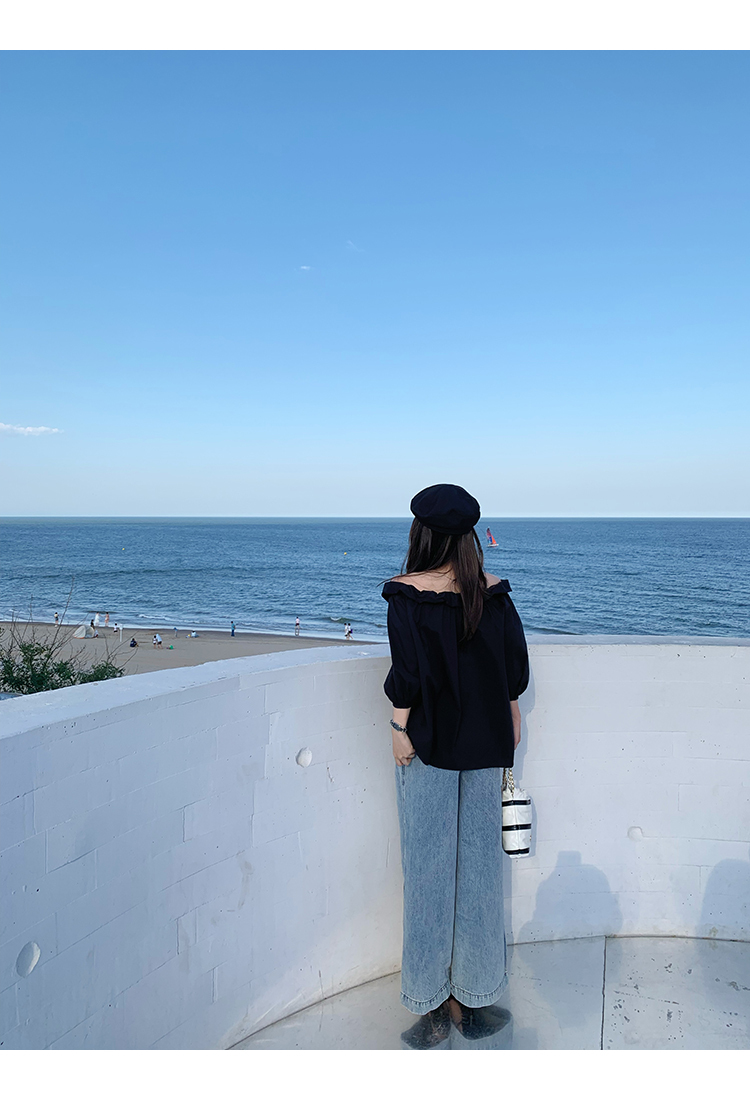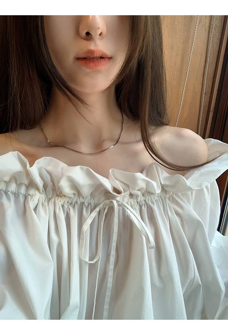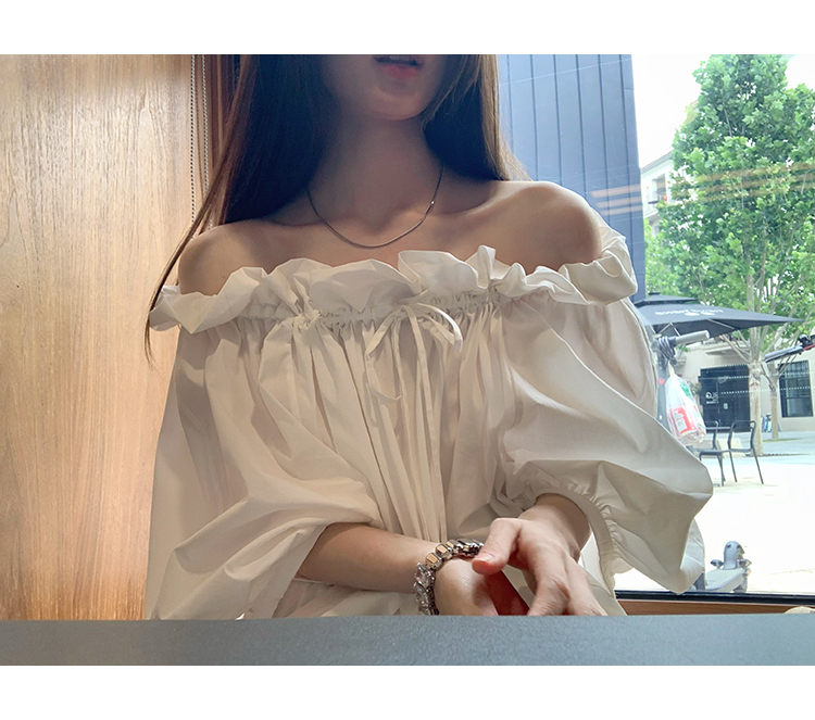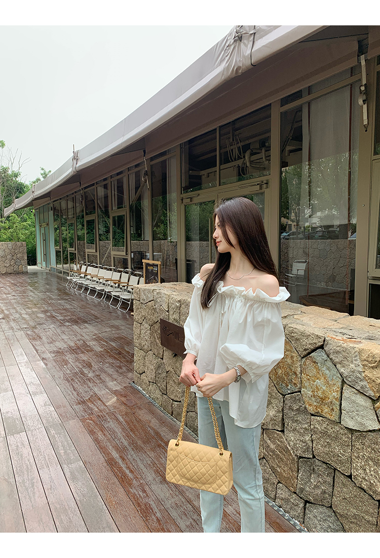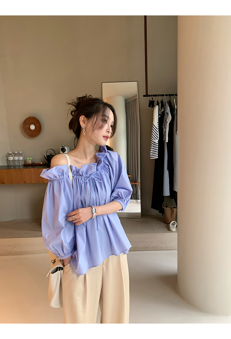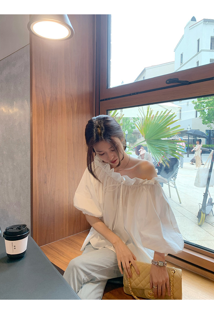 *o-ha-you*【FMQC2042033】白島之境高密高織彈性棉多季實穿法式溫柔風荷葉邊一字肩上衣-3色