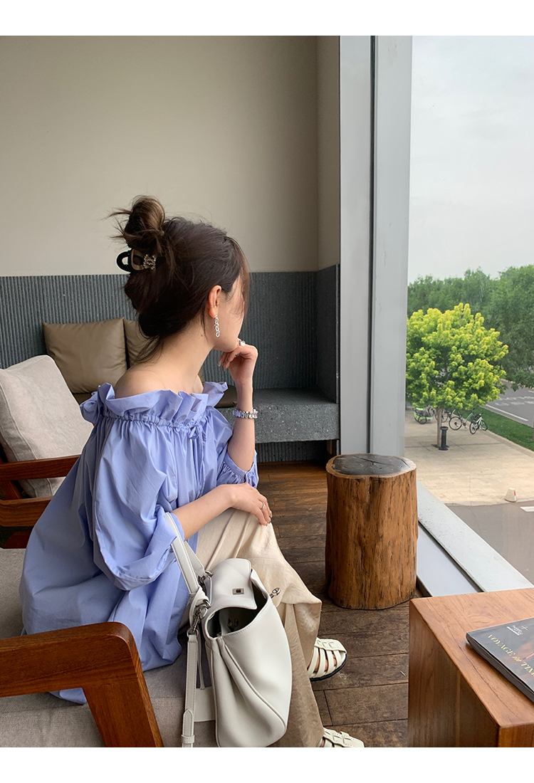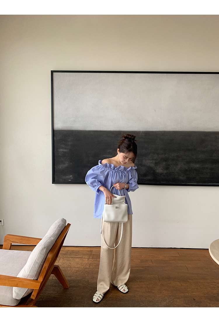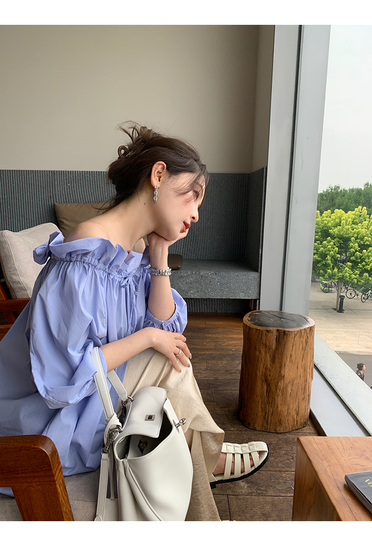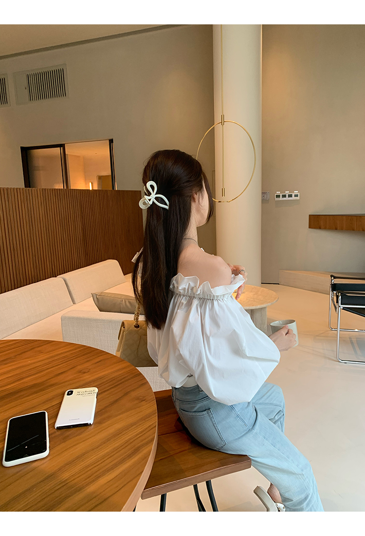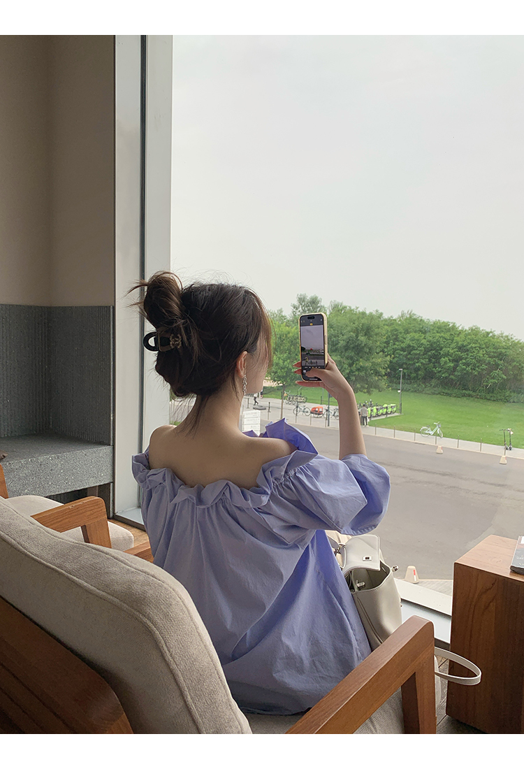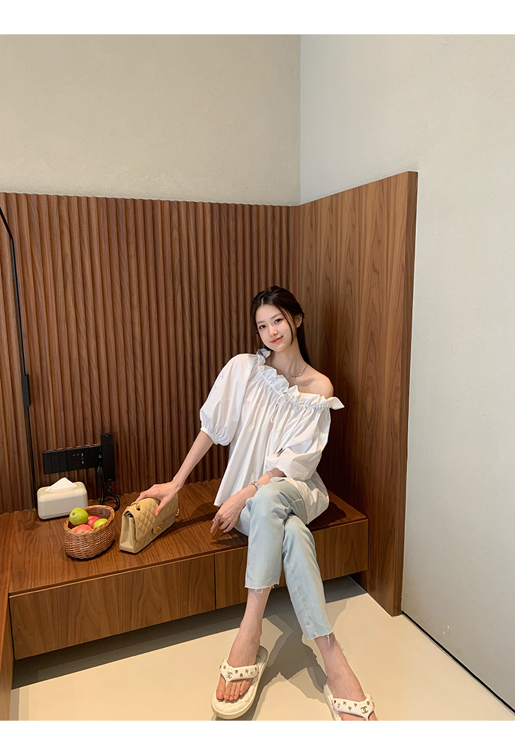 *o-ha-you*【FMQC2042033】白島之境高密高織彈性棉多季實穿法式溫柔風荷葉邊一字肩上衣-3色