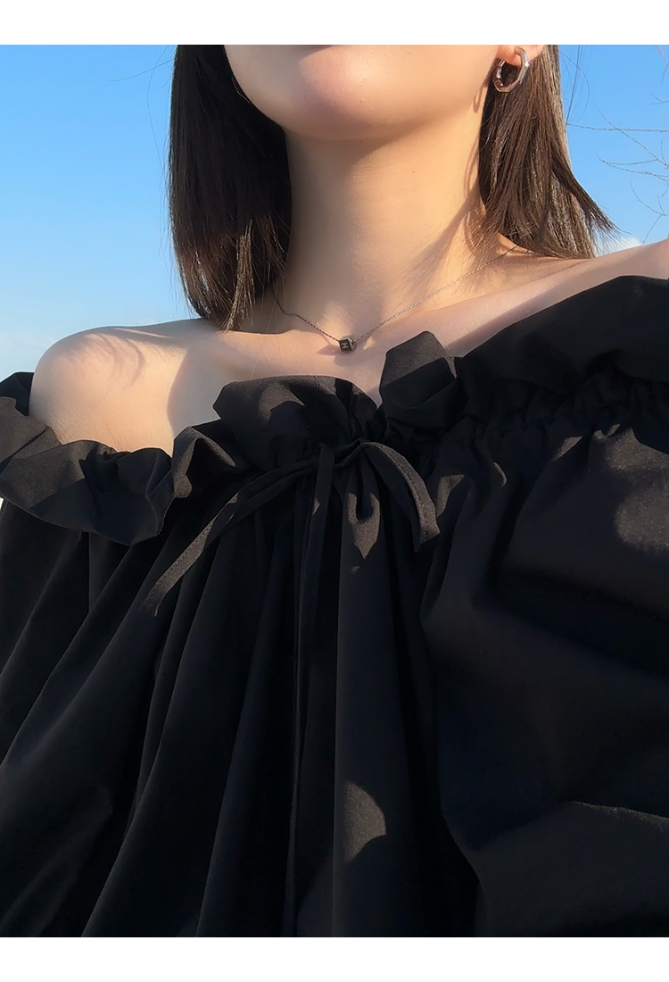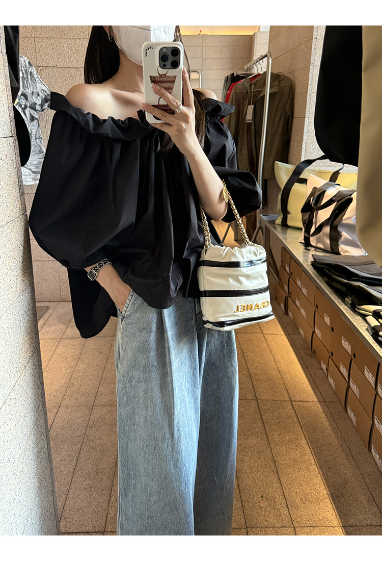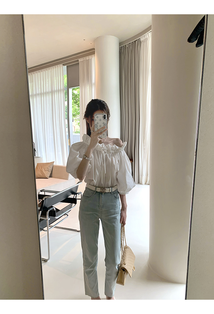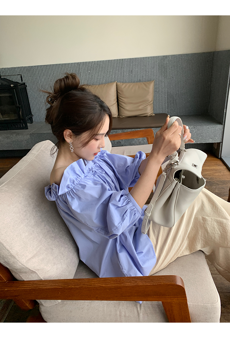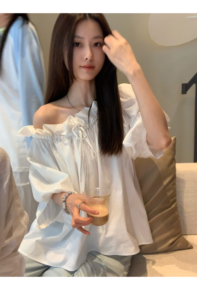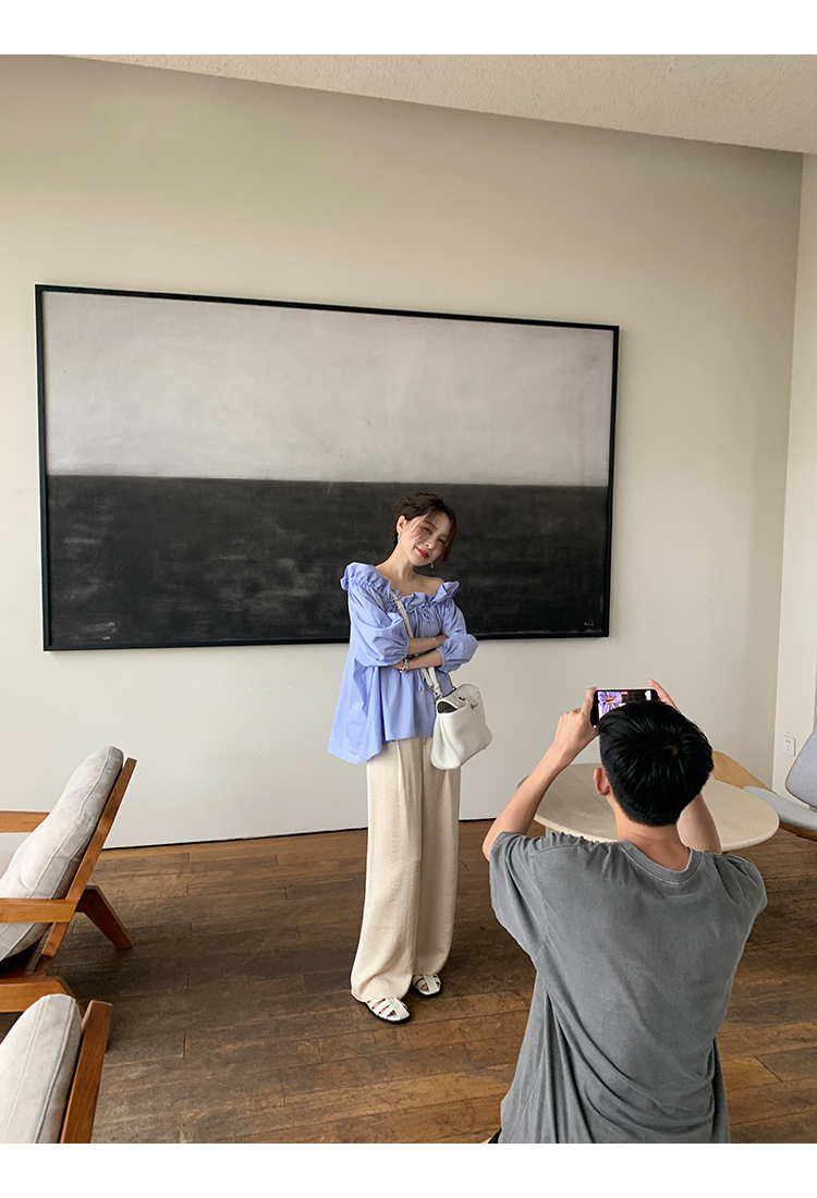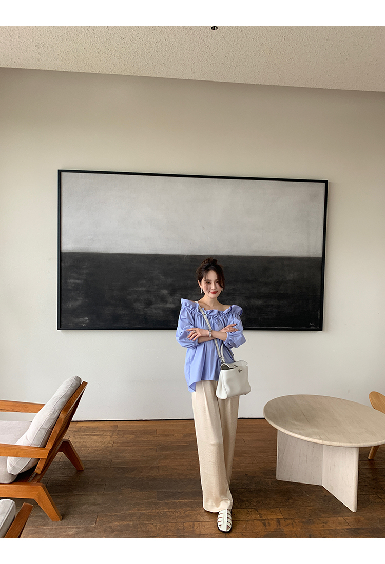 *o-ha-you*【FMQC2042033】白島之境高密高織彈性棉多季實穿法式溫柔風荷葉邊一字肩上衣-3色
