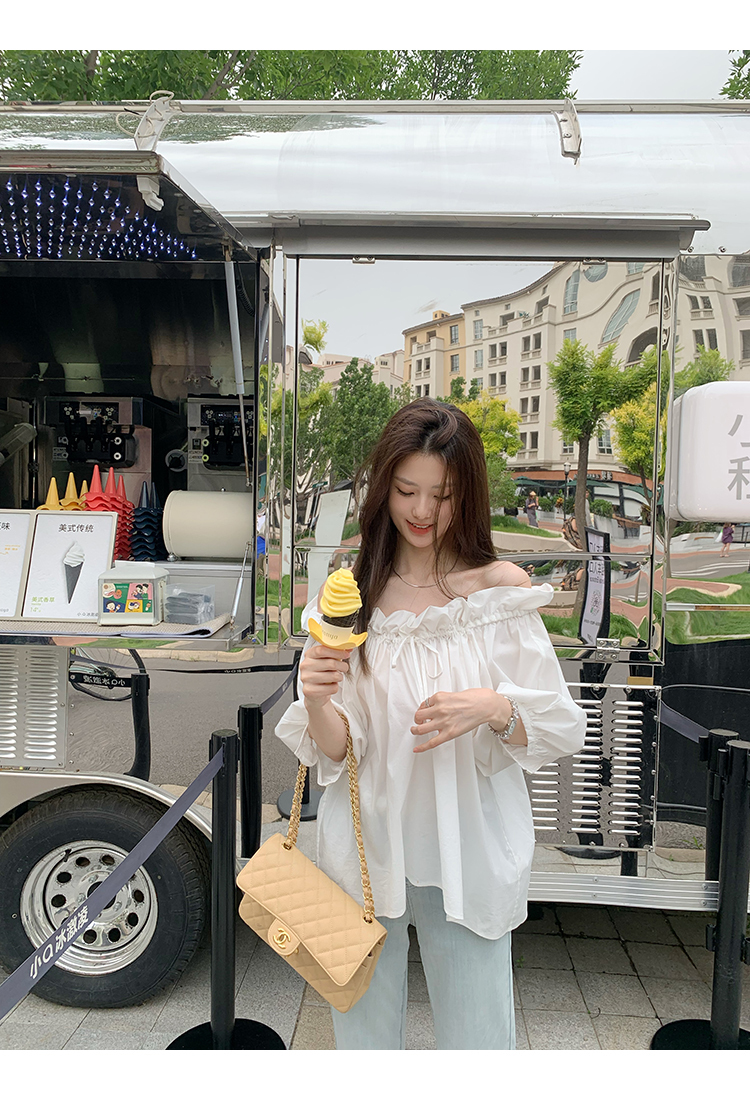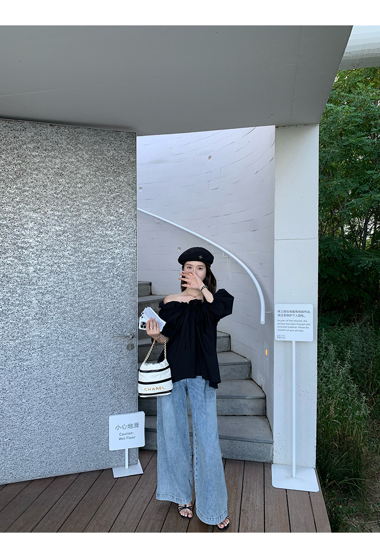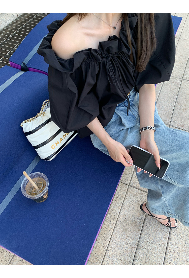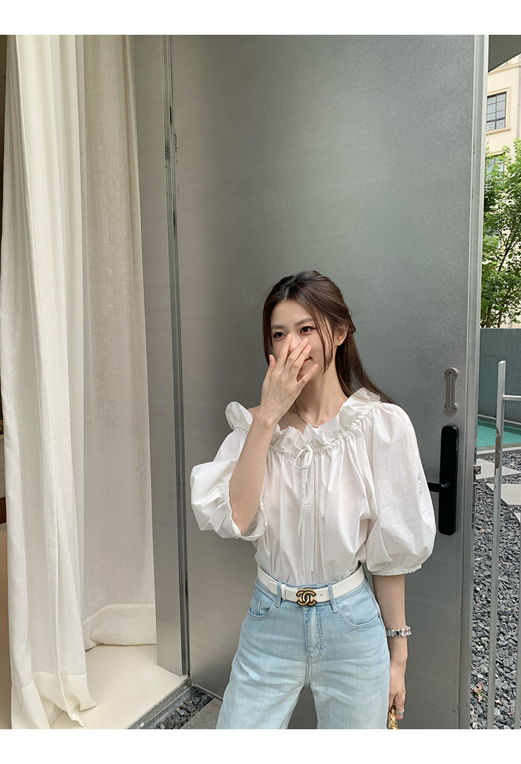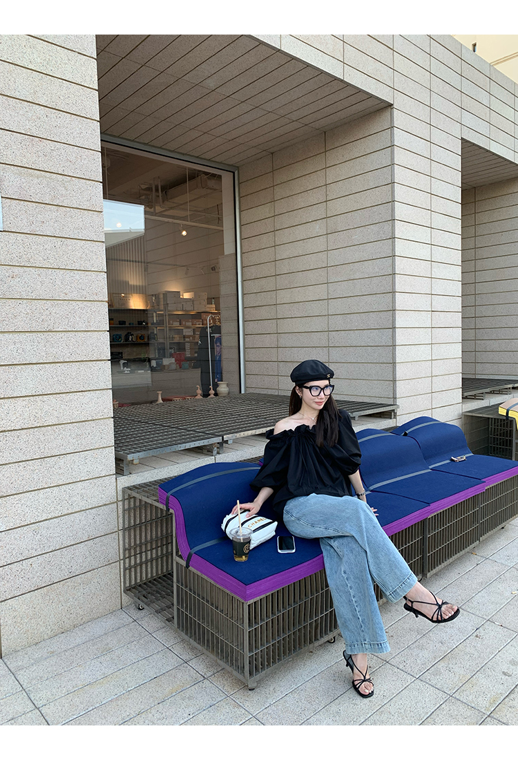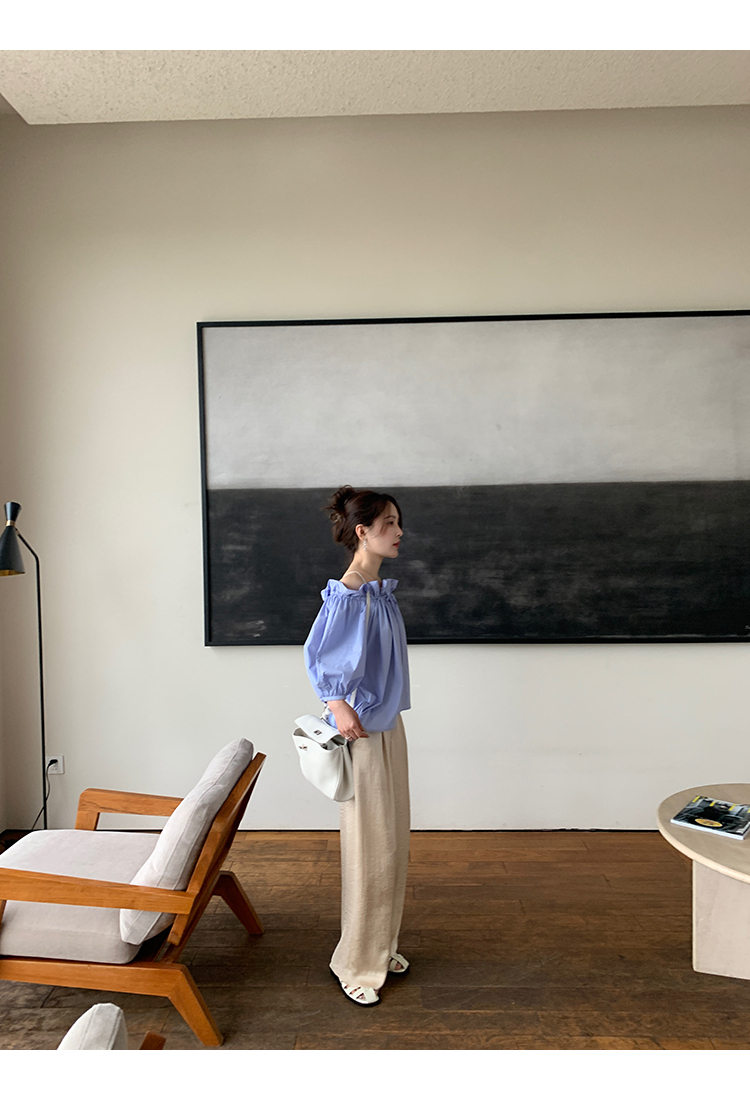 *o-ha-you*【FMQC2042033】白島之境高密高織彈性棉多季實穿法式溫柔風荷葉邊一字肩上衣-3色