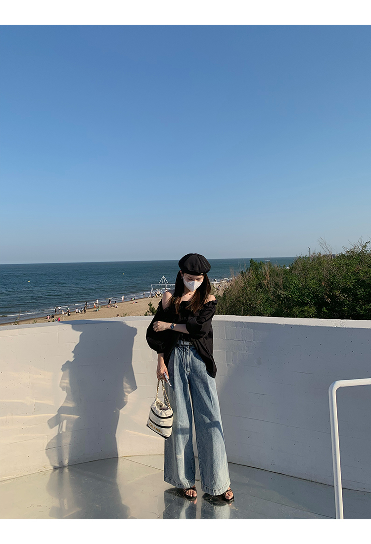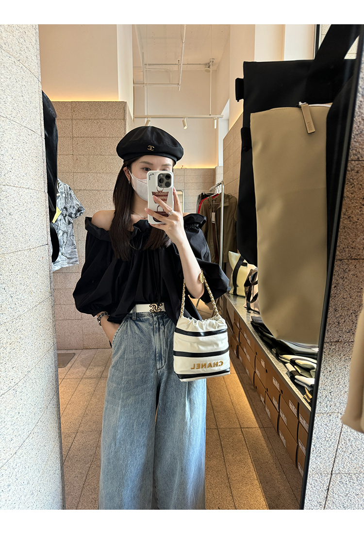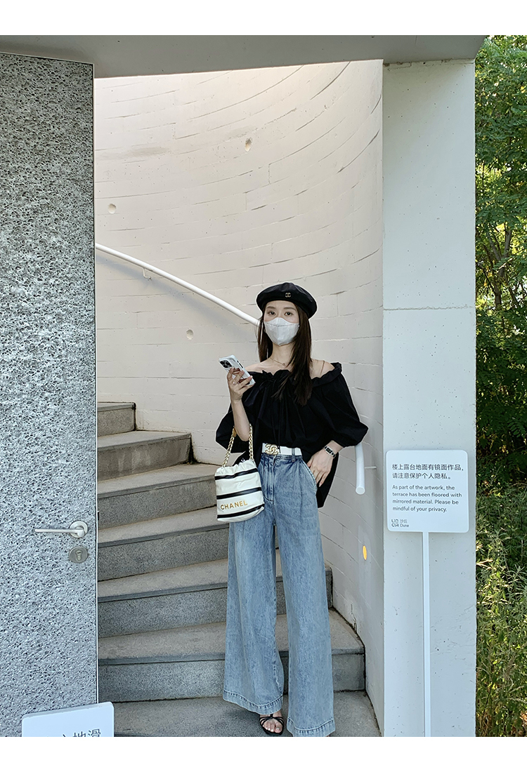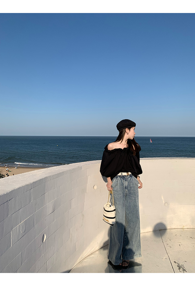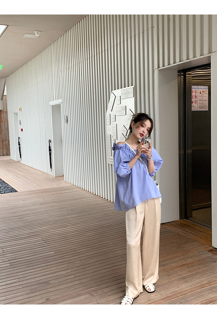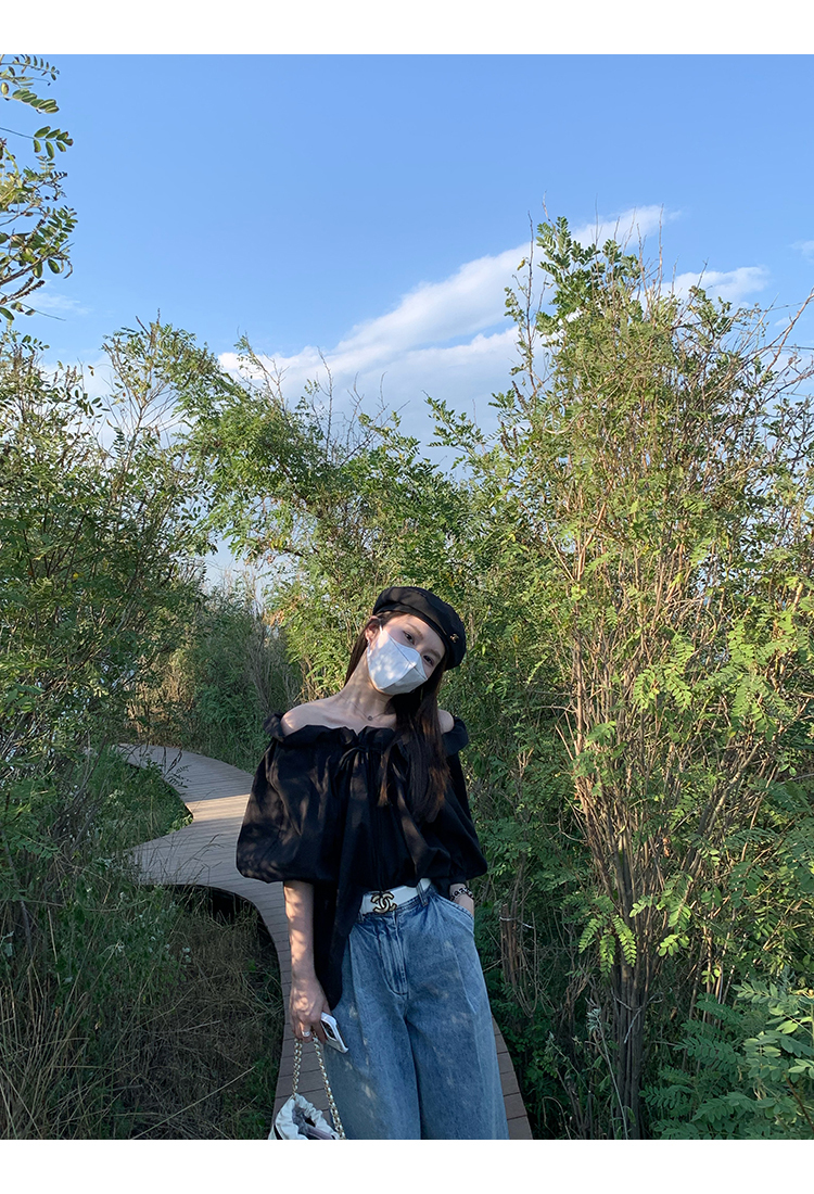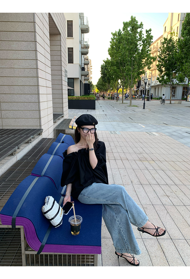 *o-ha-you*【FMQC2042033】白島之境高密高織彈性棉多季實穿法式溫柔風荷葉邊一字肩上衣-3色