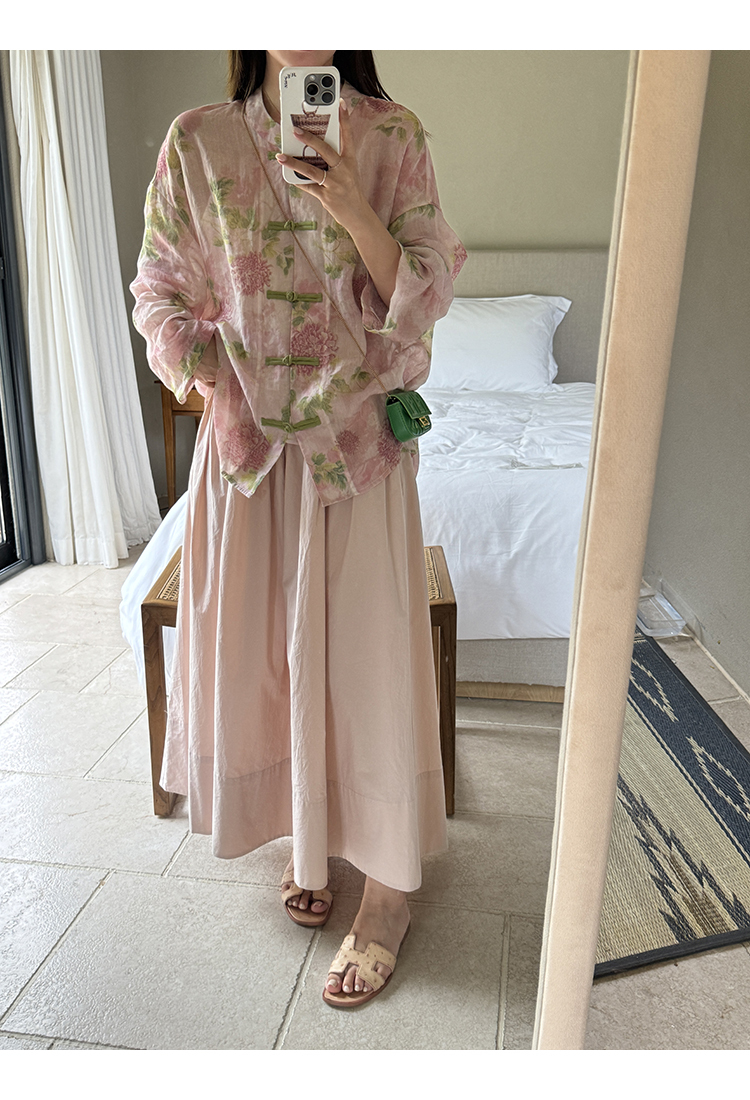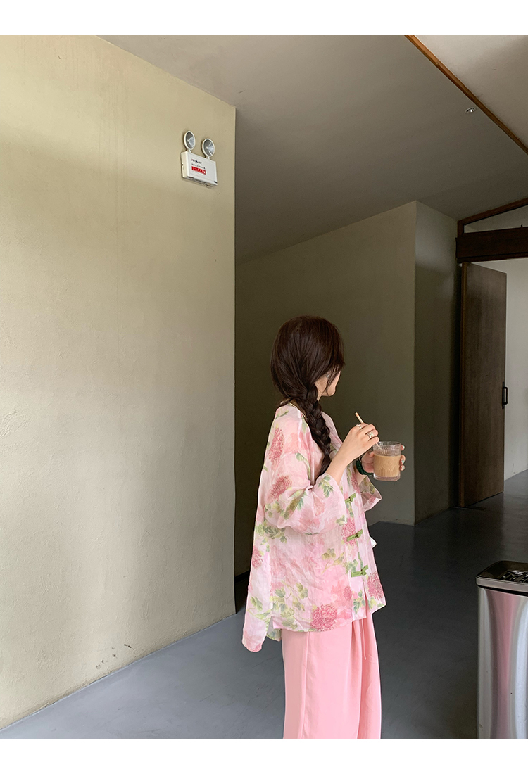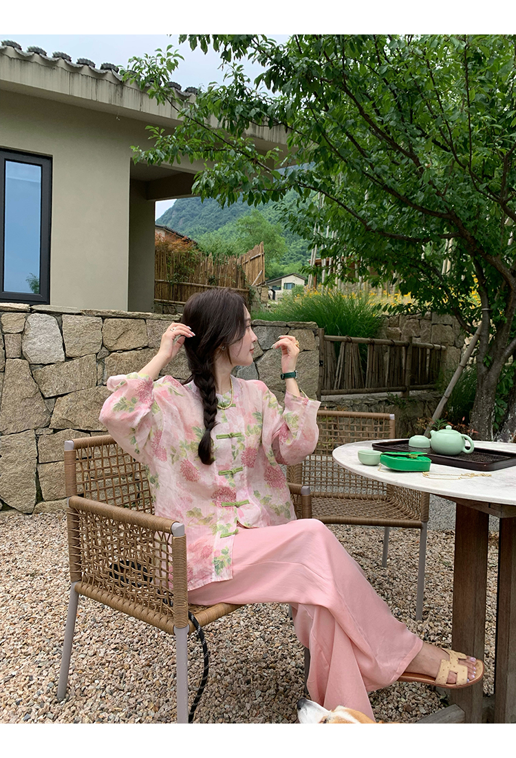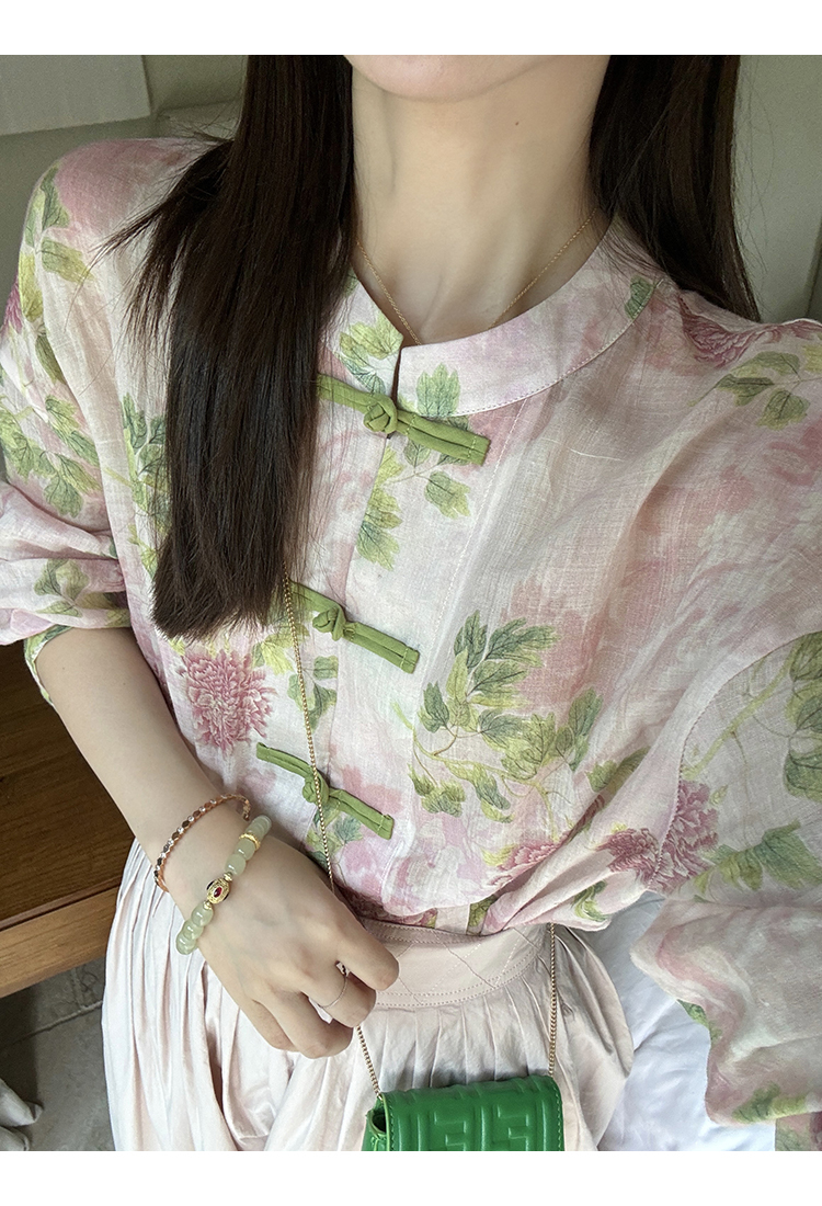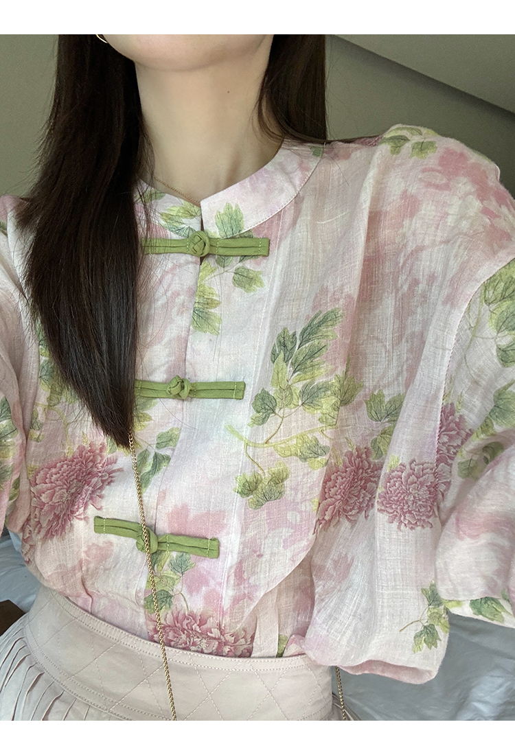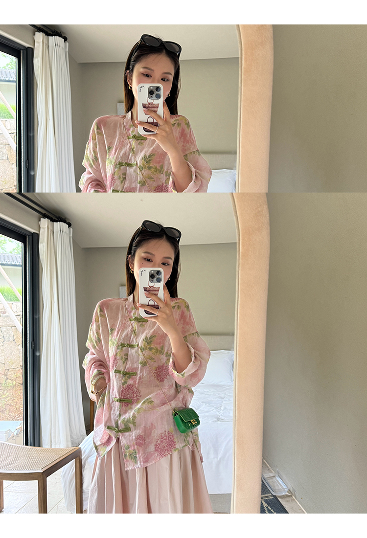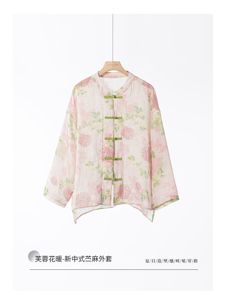 *o-ha-you*【FMQC2042056】芙蓉花暖-新中式苧麻外套100苧麻植物暈染印花盤扣開襟衫