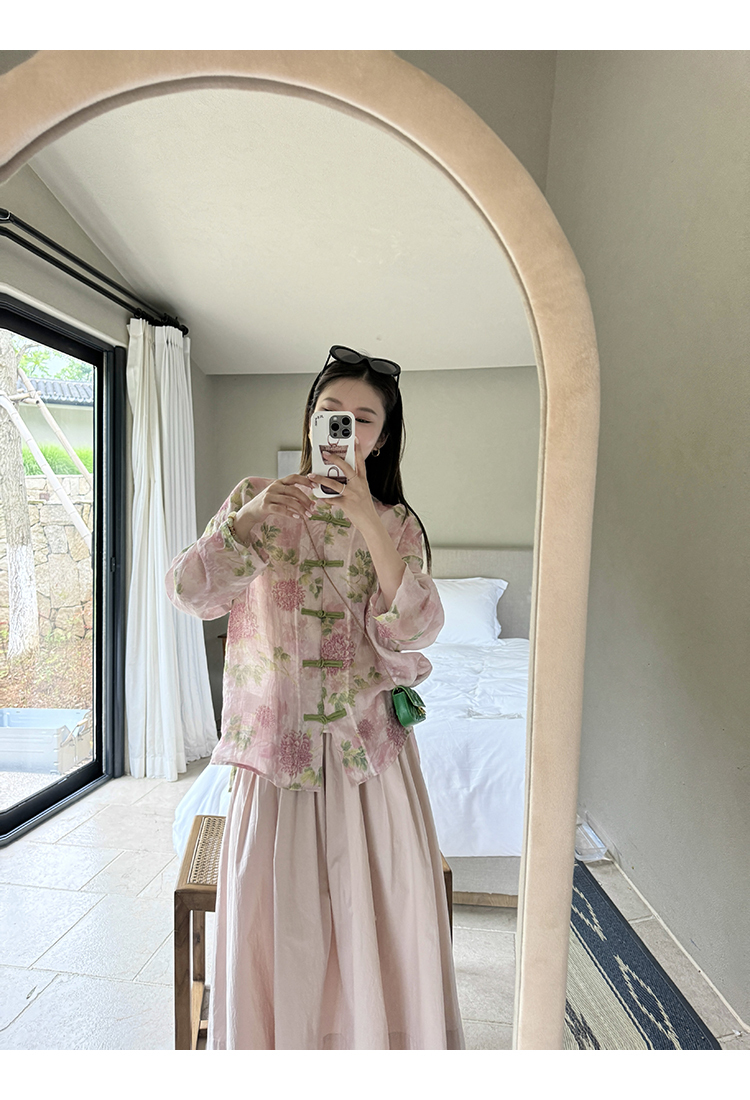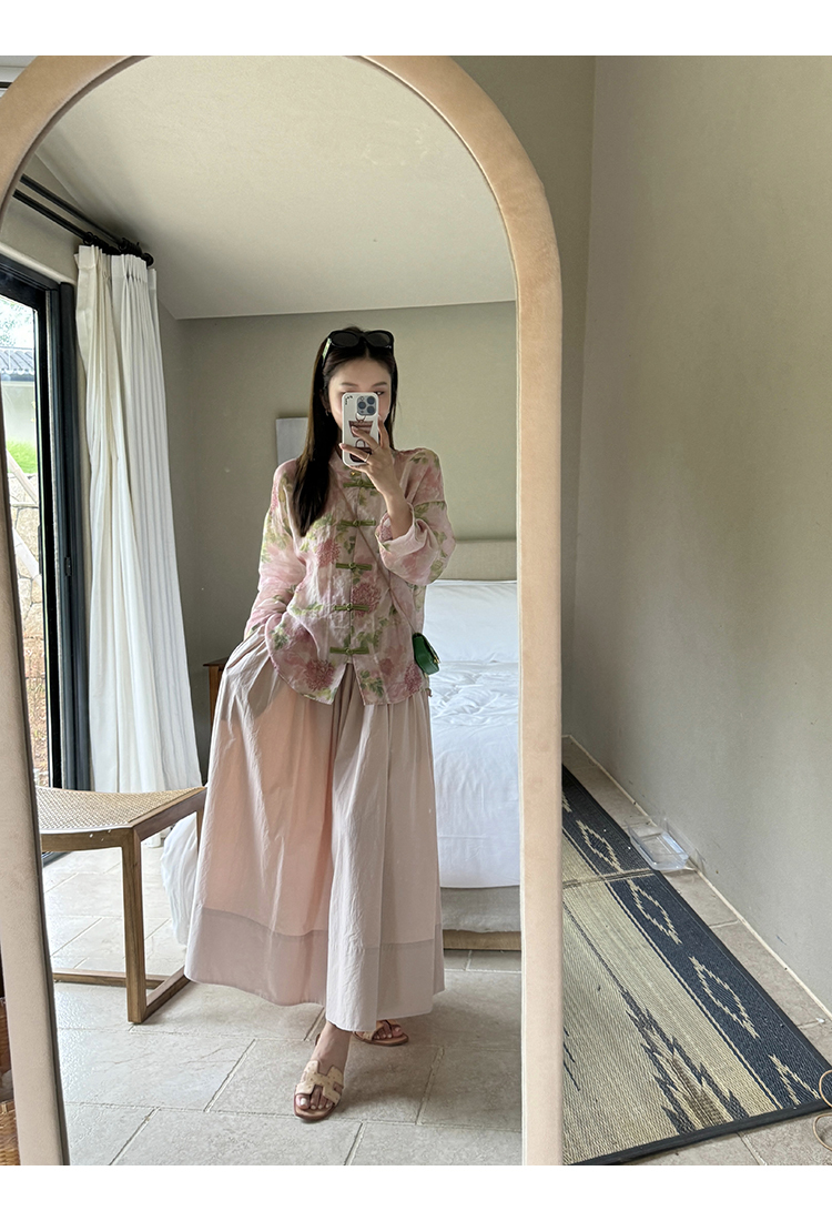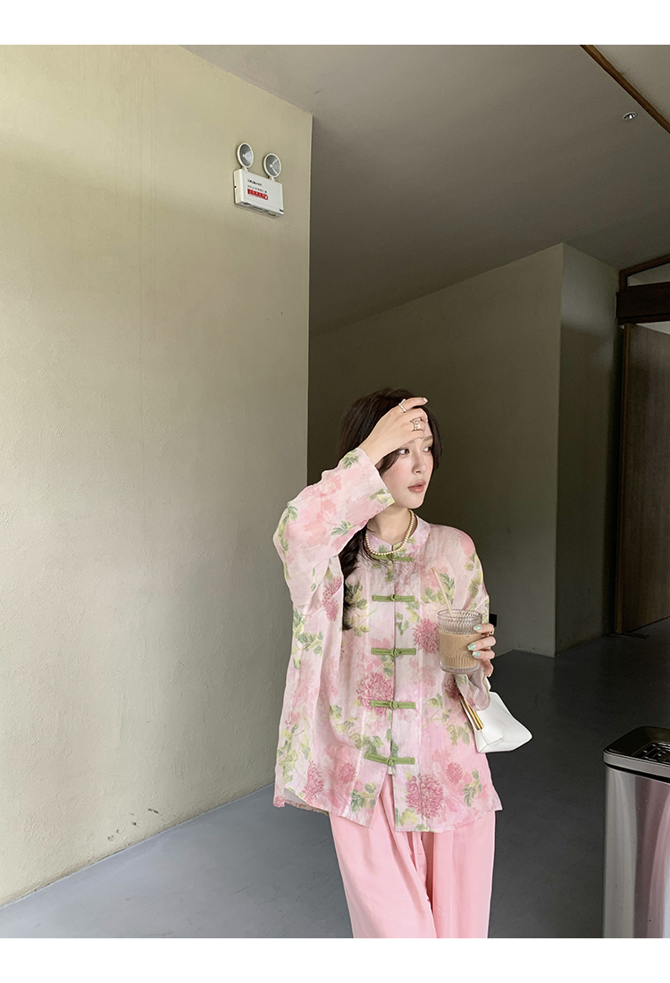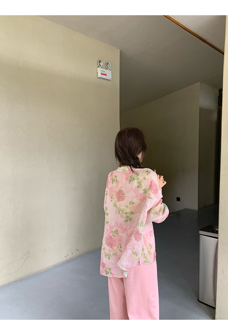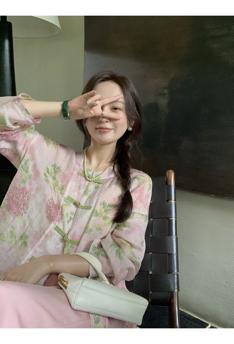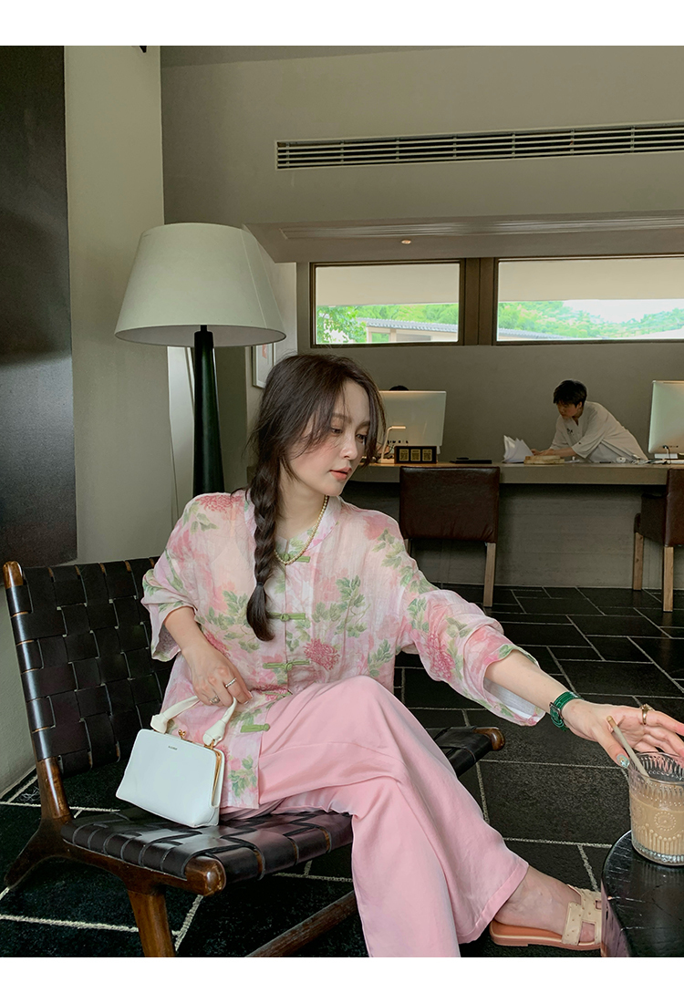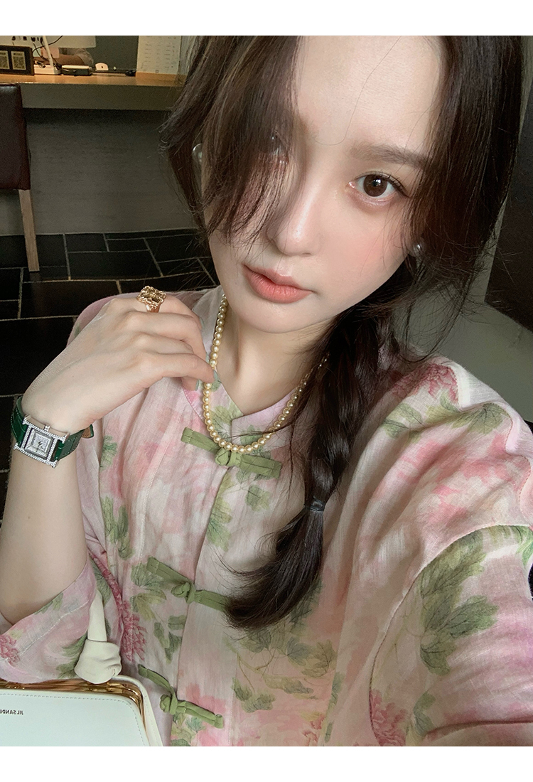 *o-ha-you*【FMQC2042056】芙蓉花暖-新中式苧麻外套100苧麻植物暈染印花盤扣開襟衫