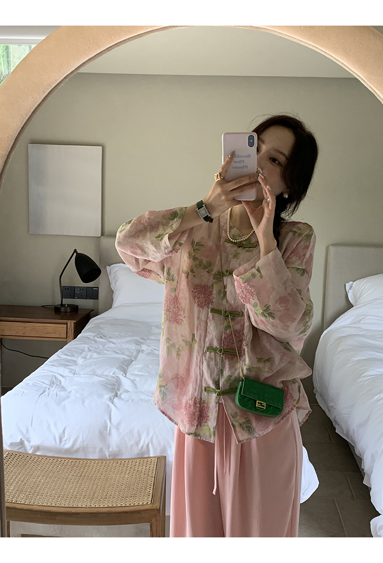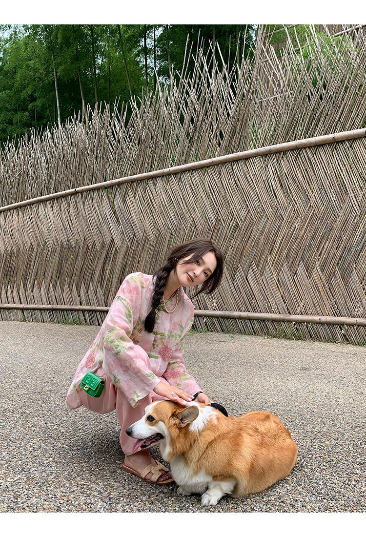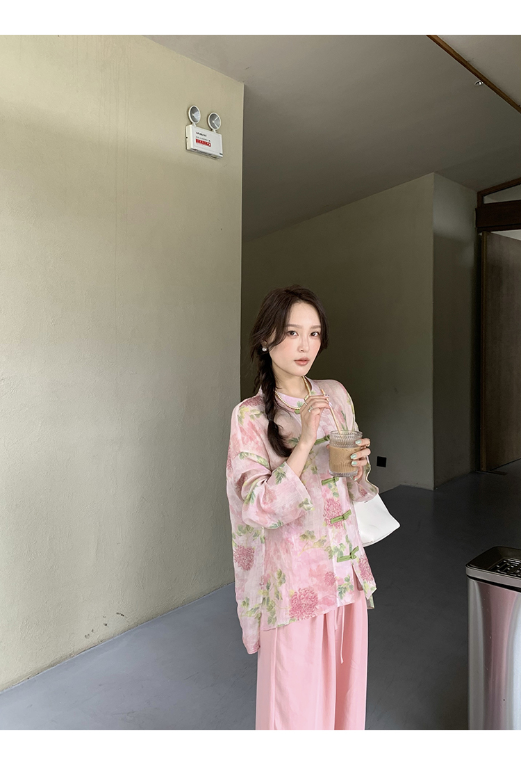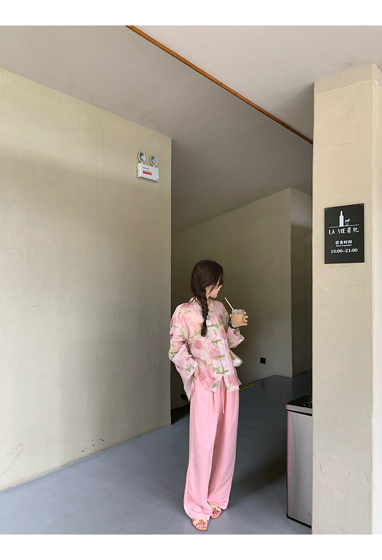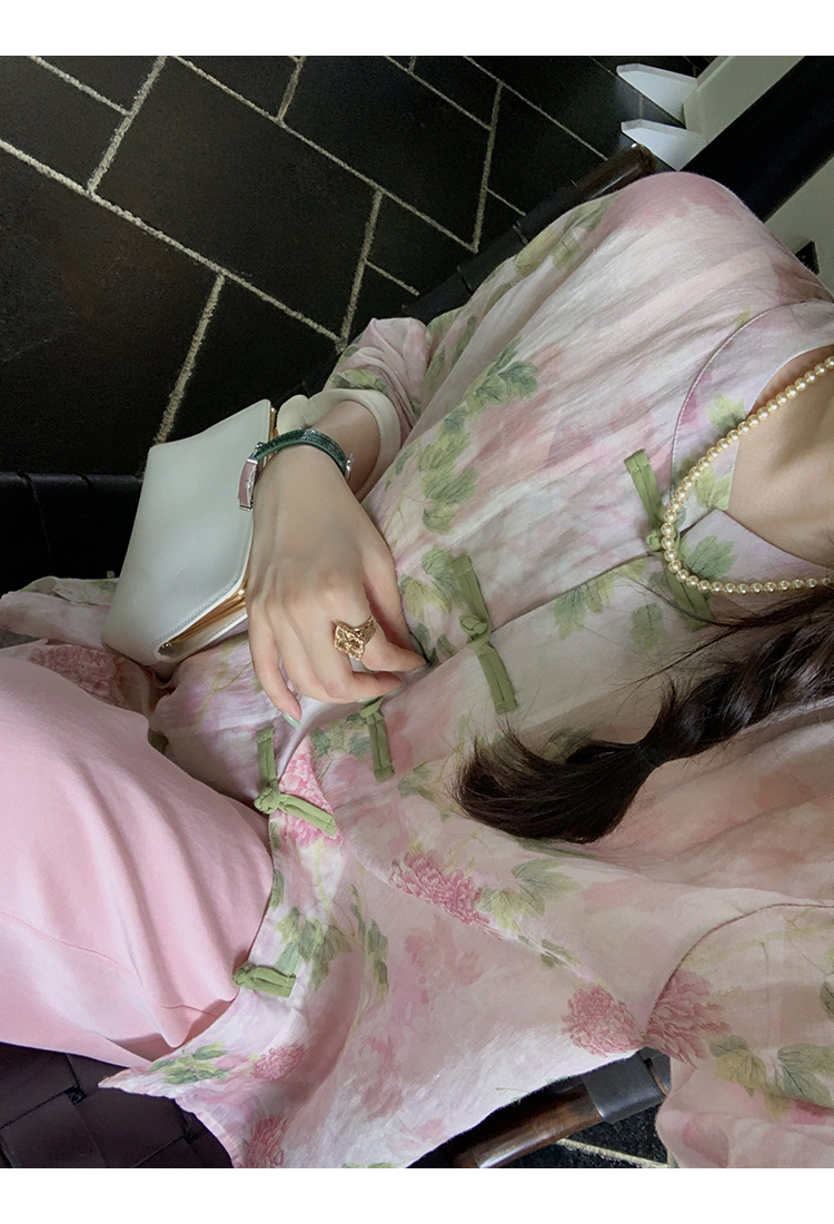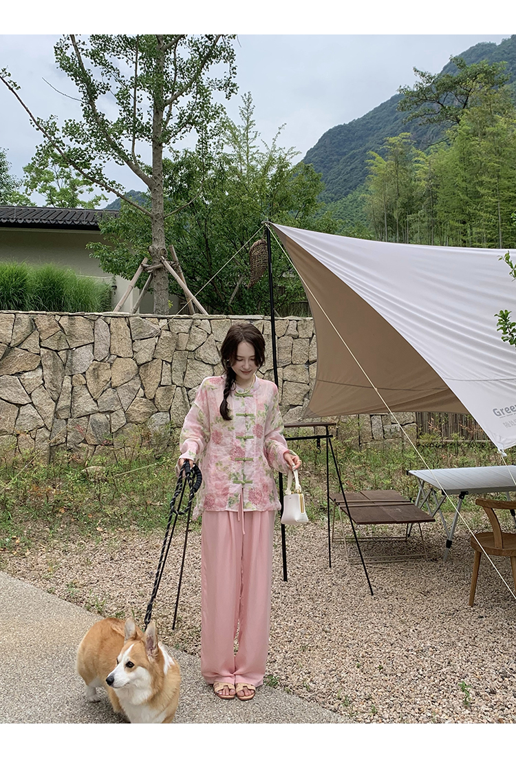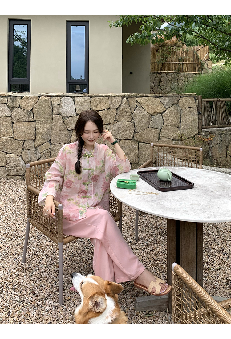 *o-ha-you*【FMQC2042056】芙蓉花暖-新中式苧麻外套100苧麻植物暈染印花盤扣開襟衫