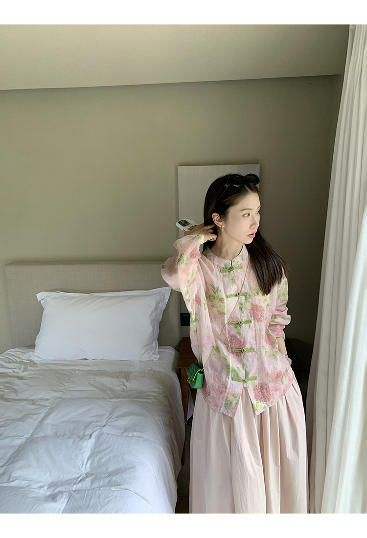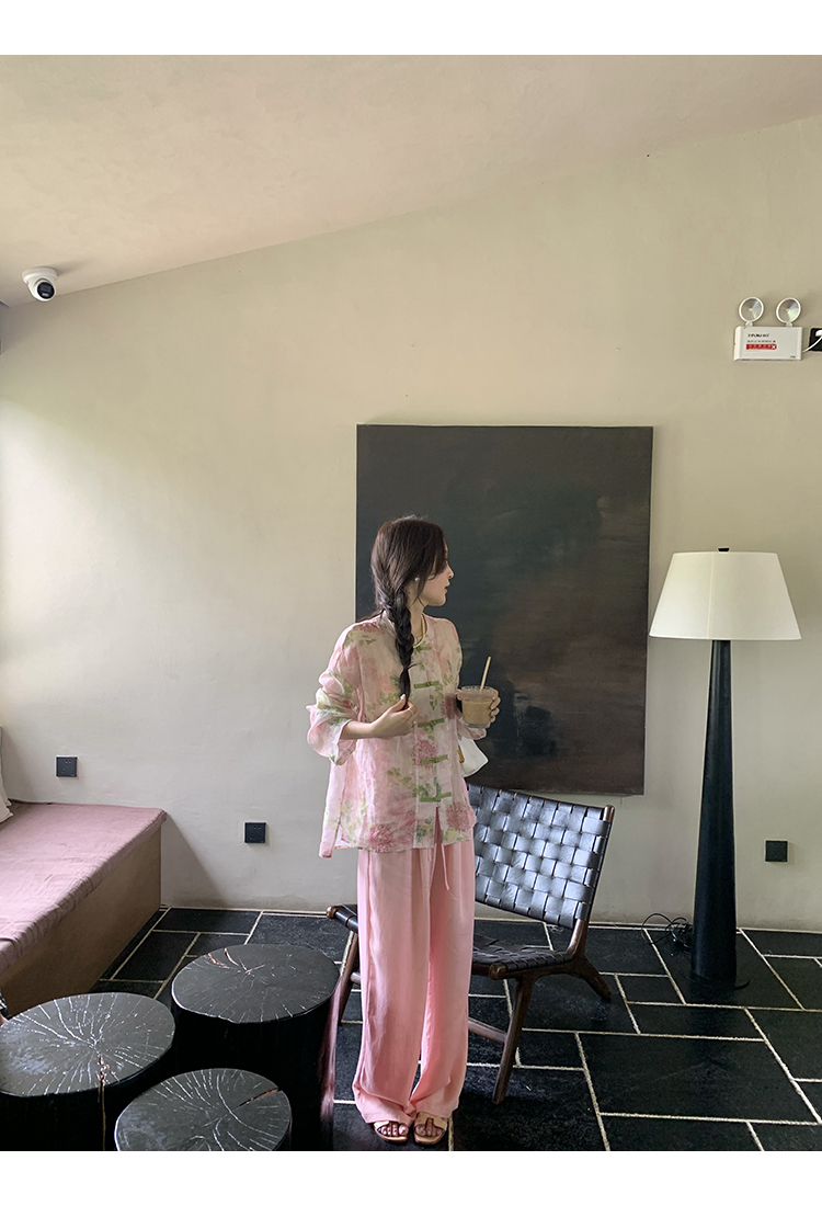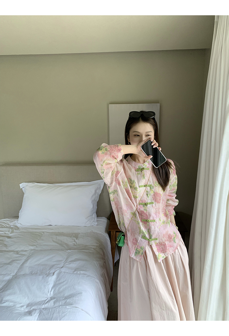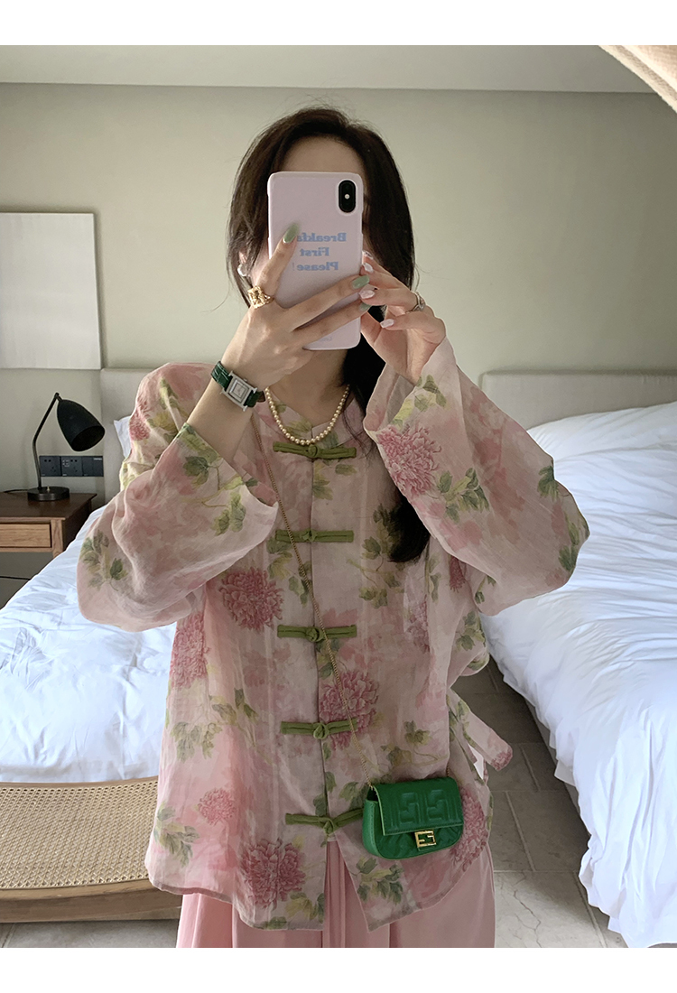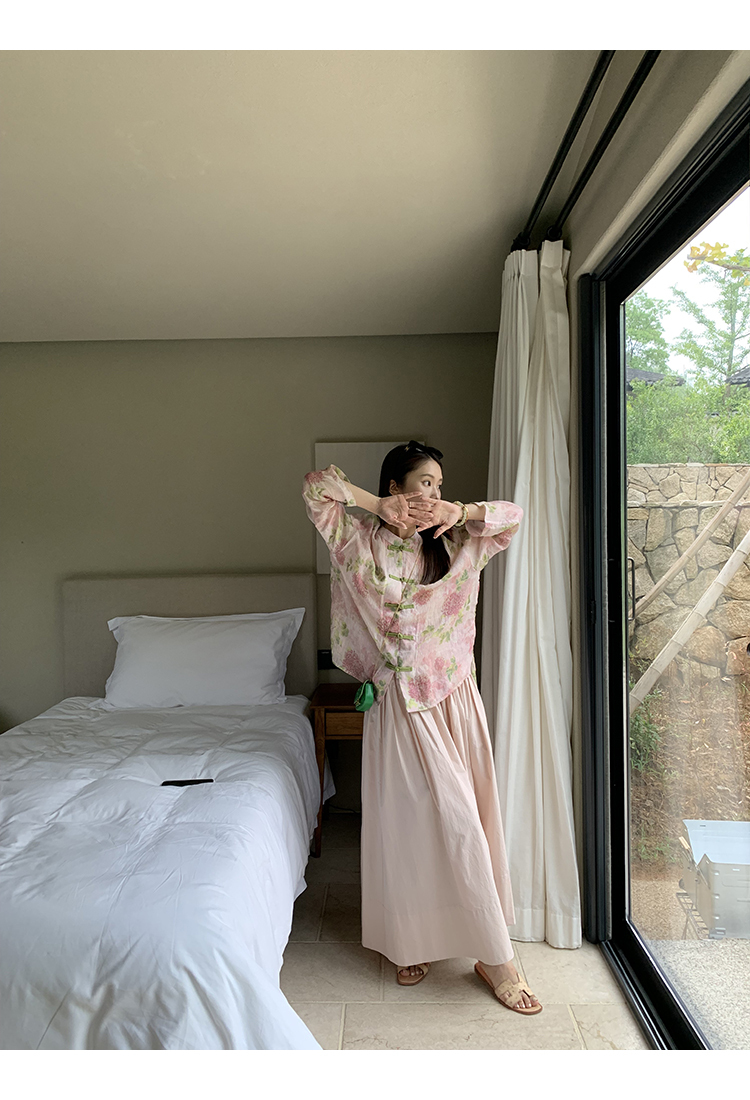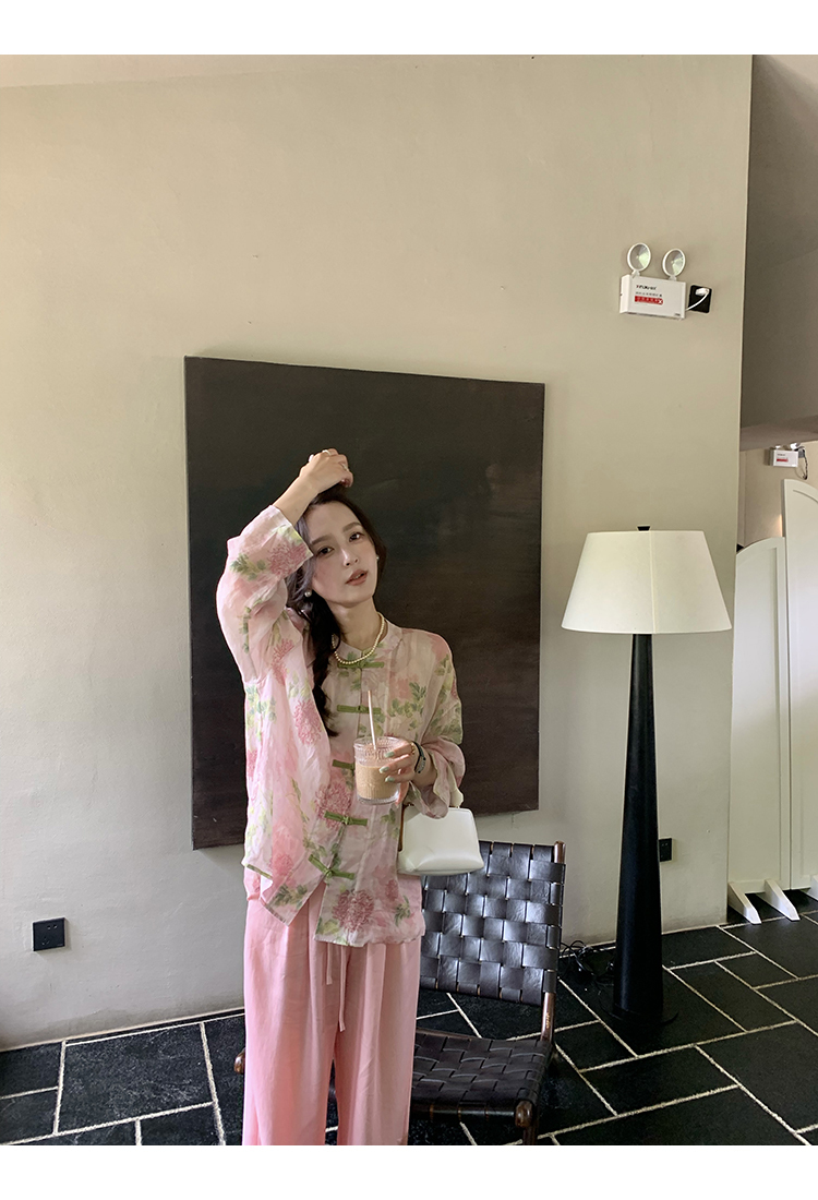 *o-ha-you*【FMQC2042056】芙蓉花暖-新中式苧麻外套100苧麻植物暈染印花盤扣開襟衫