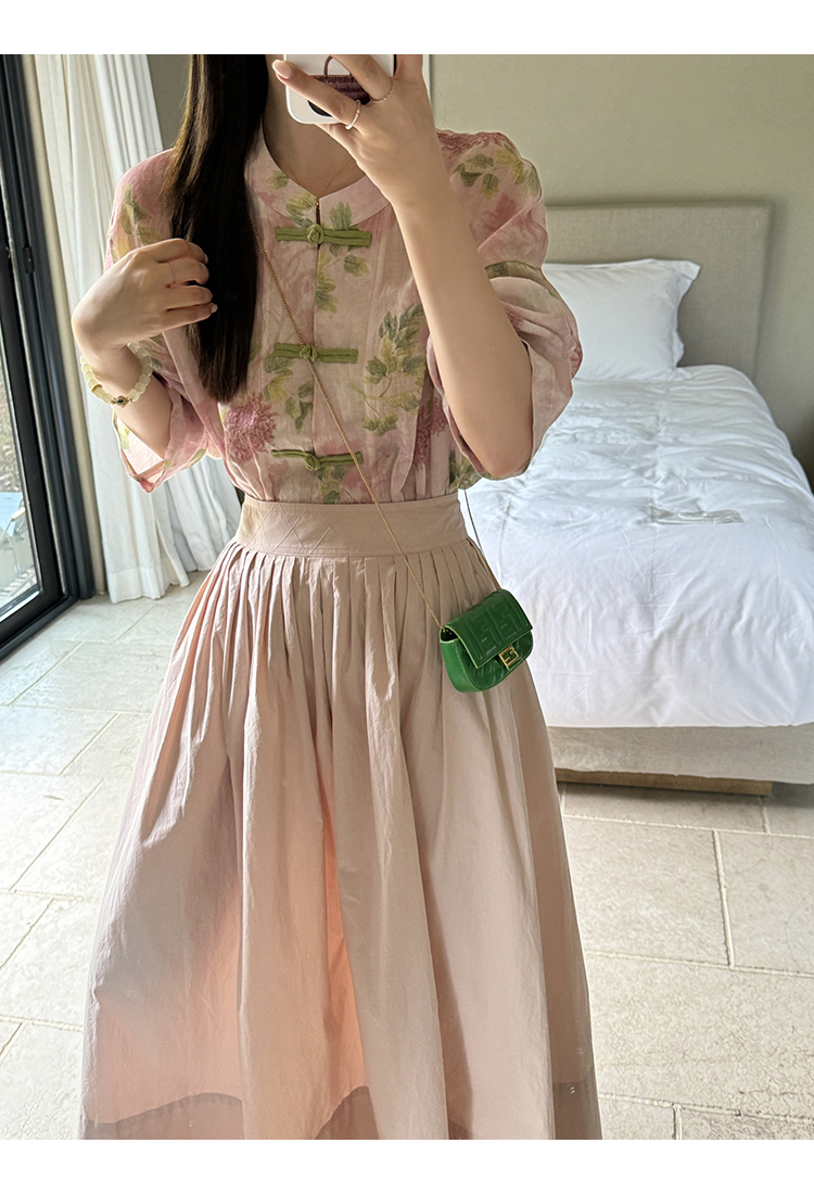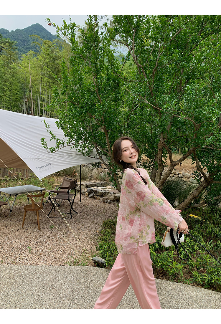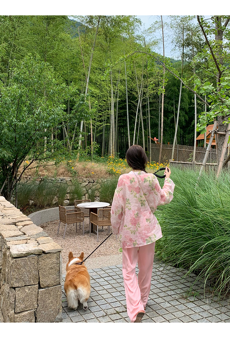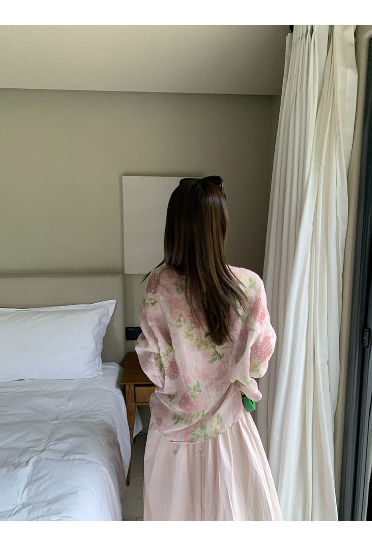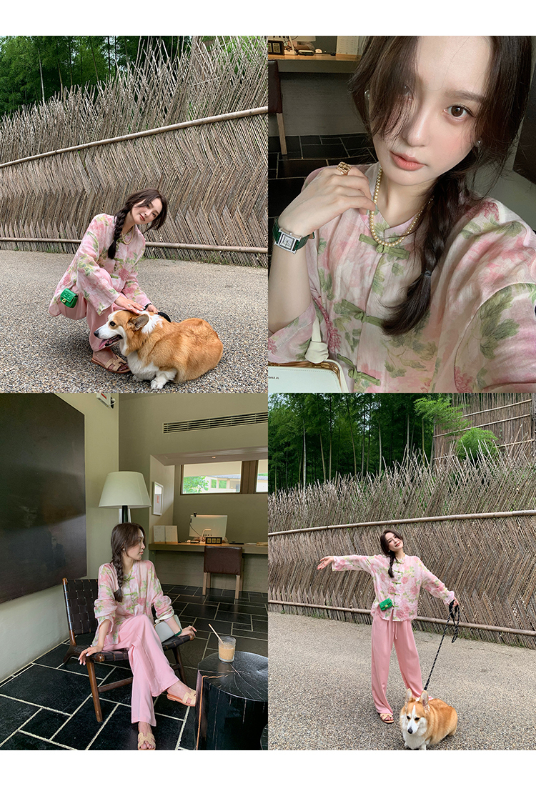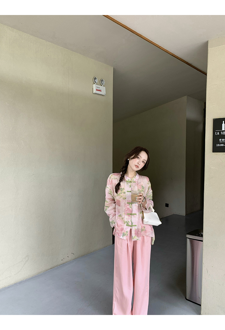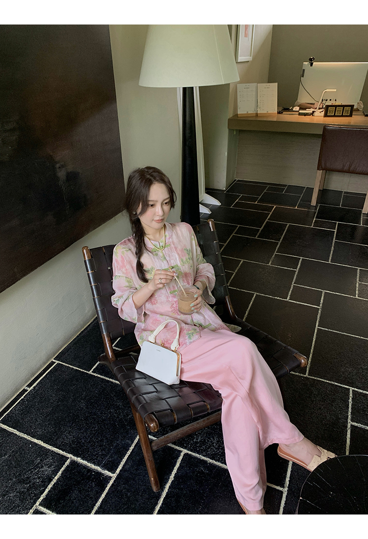 *o-ha-you*【FMQC2042056】芙蓉花暖-新中式苧麻外套100苧麻植物暈染印花盤扣開襟衫