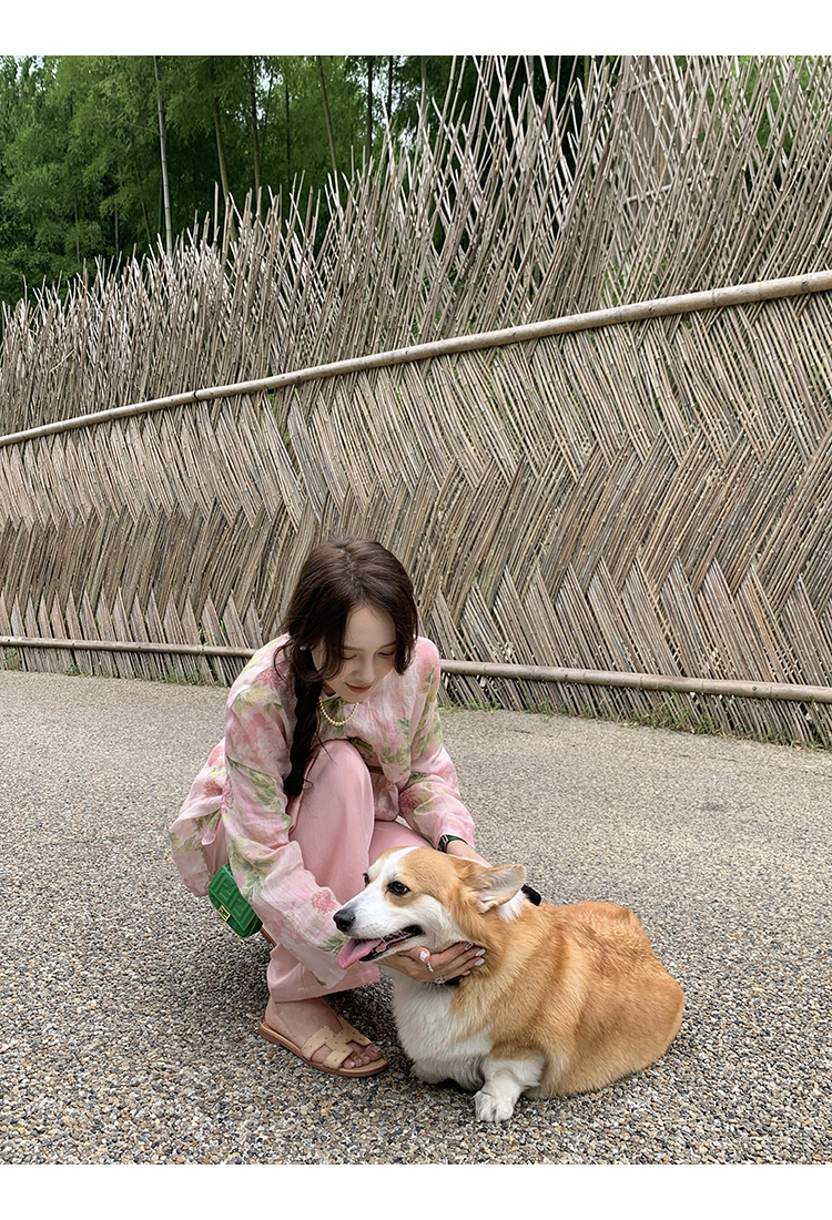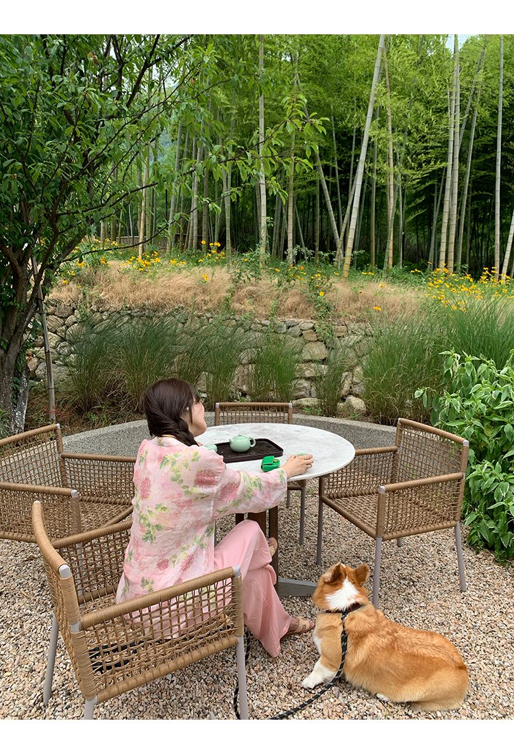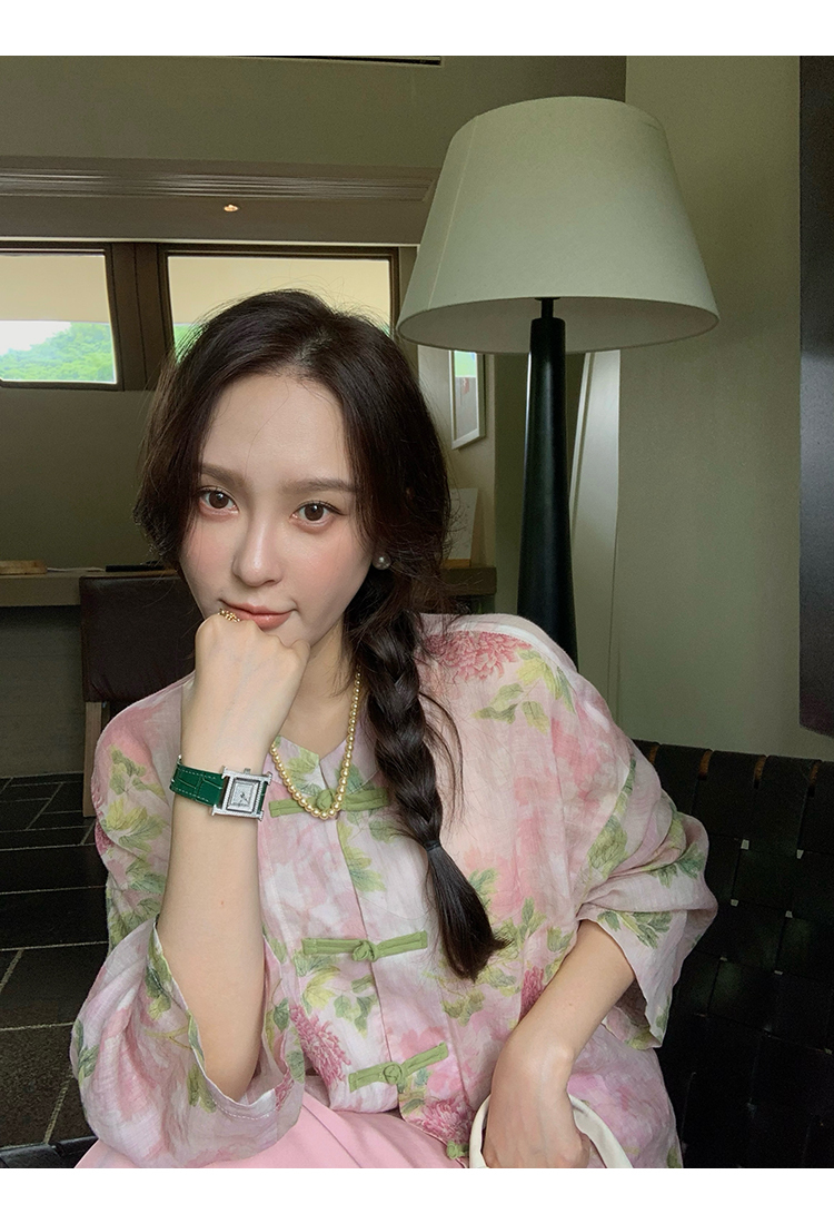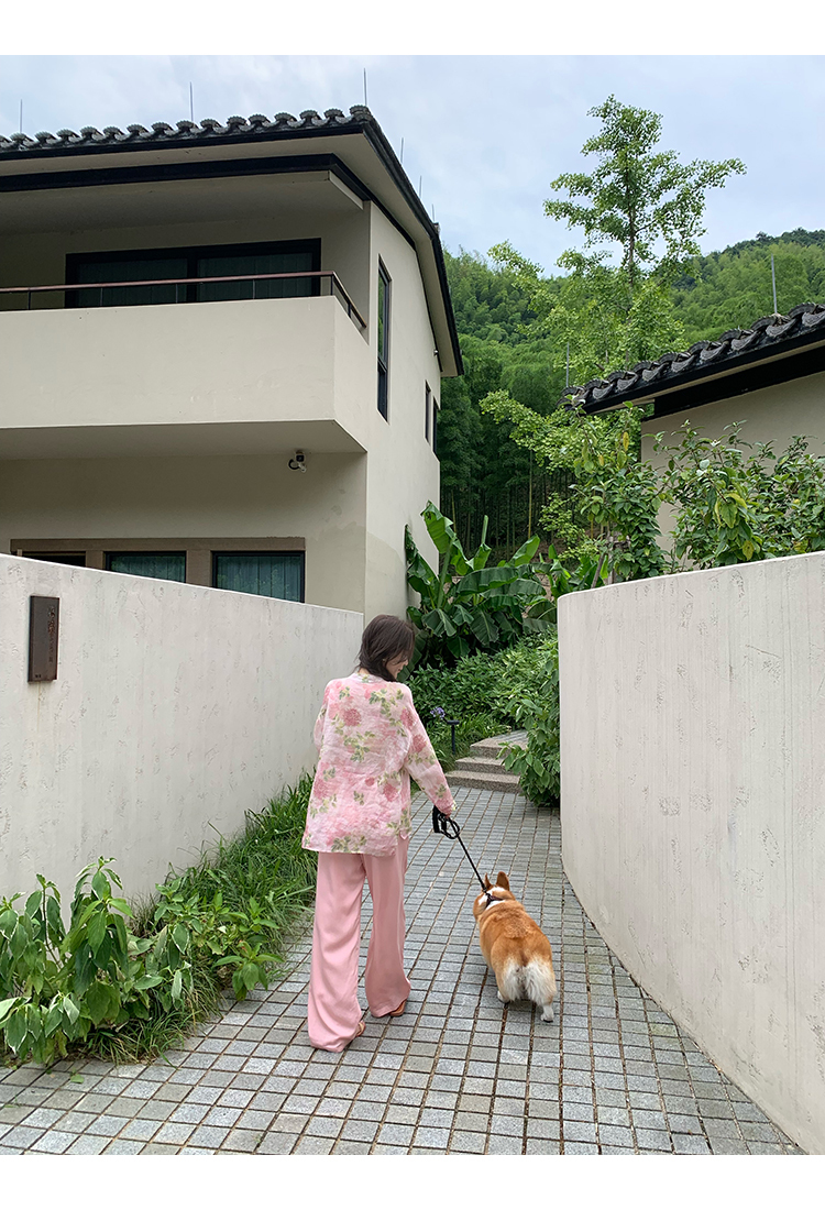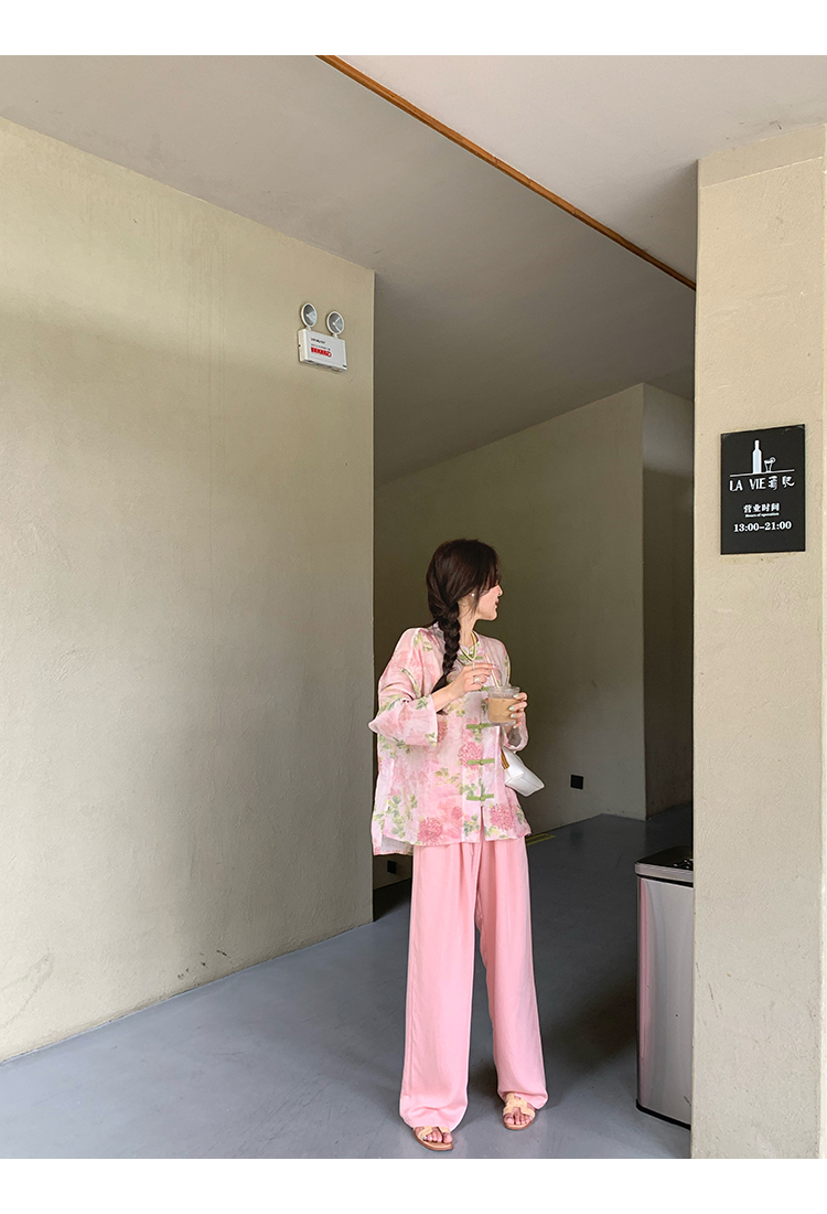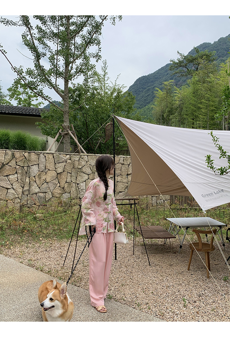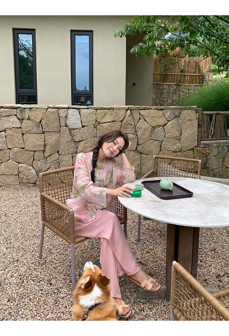 *o-ha-you*【FMQC2042056】芙蓉花暖-新中式苧麻外套100苧麻植物暈染印花盤扣開襟衫