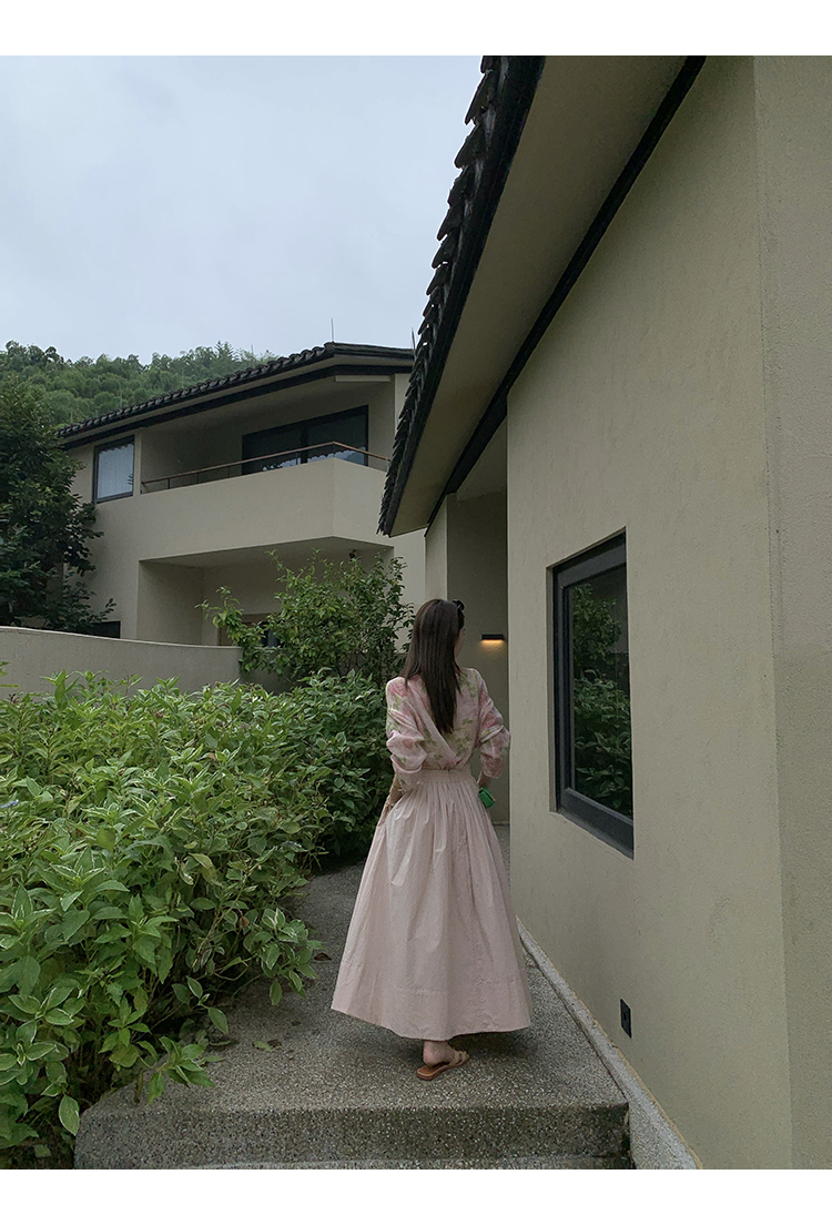 花型採用直噴印花工藝,柔和的淡粉紅色為底色,