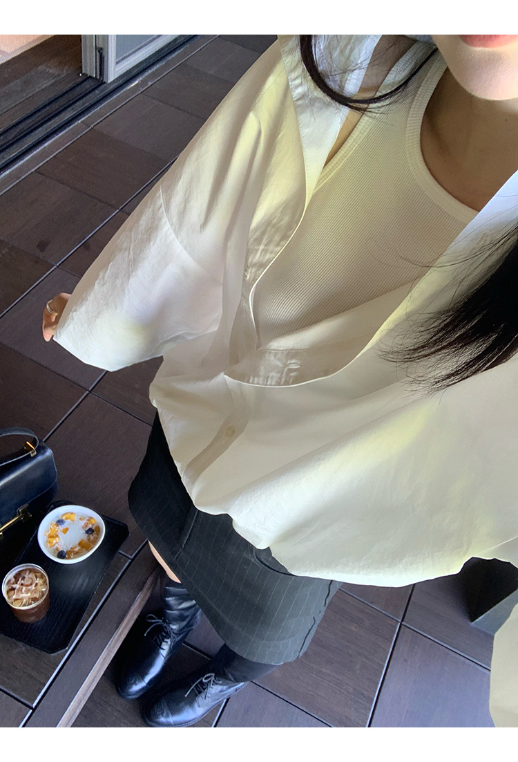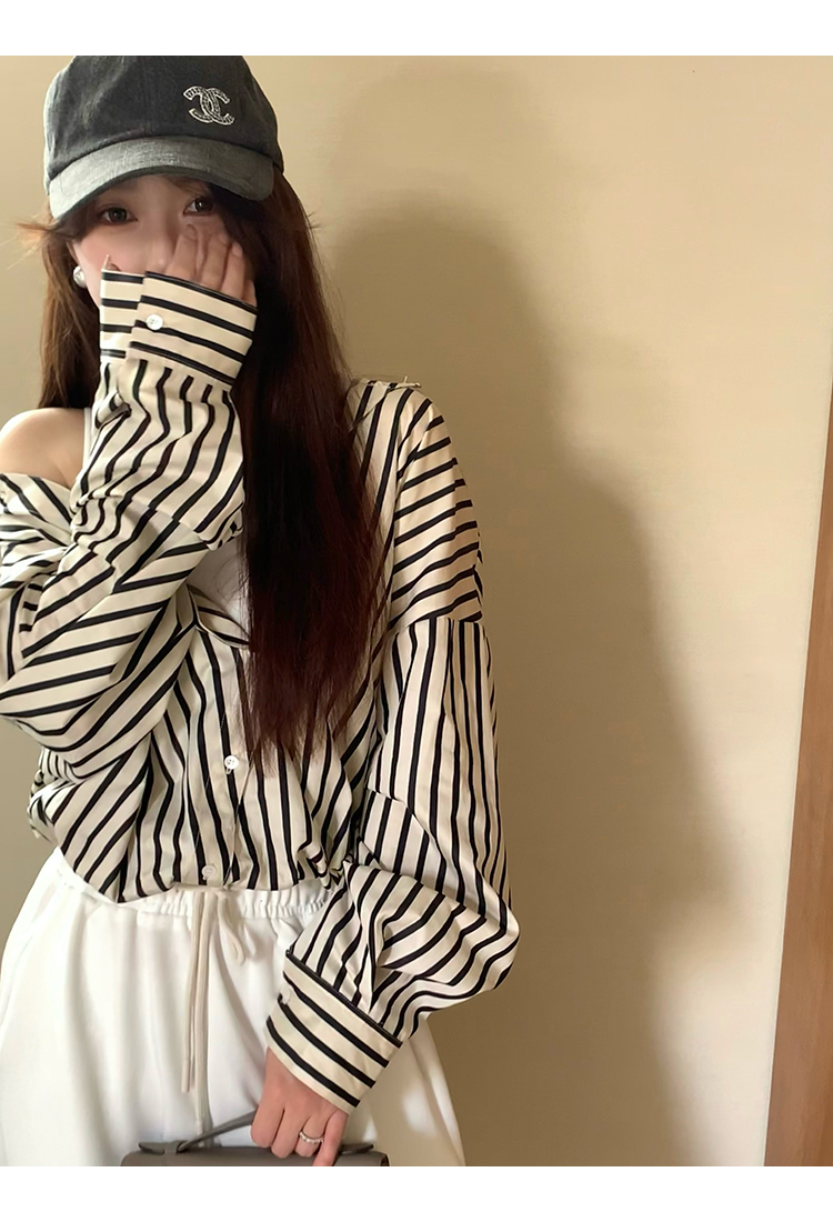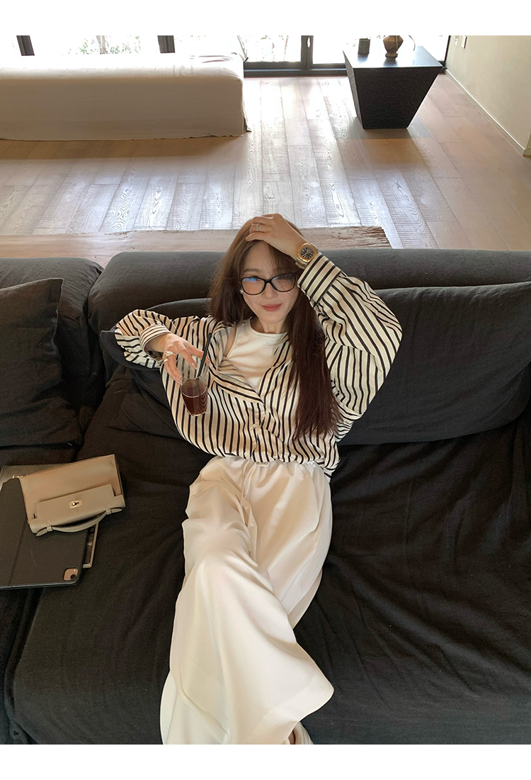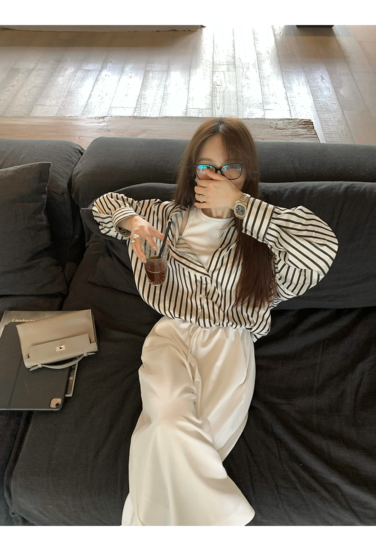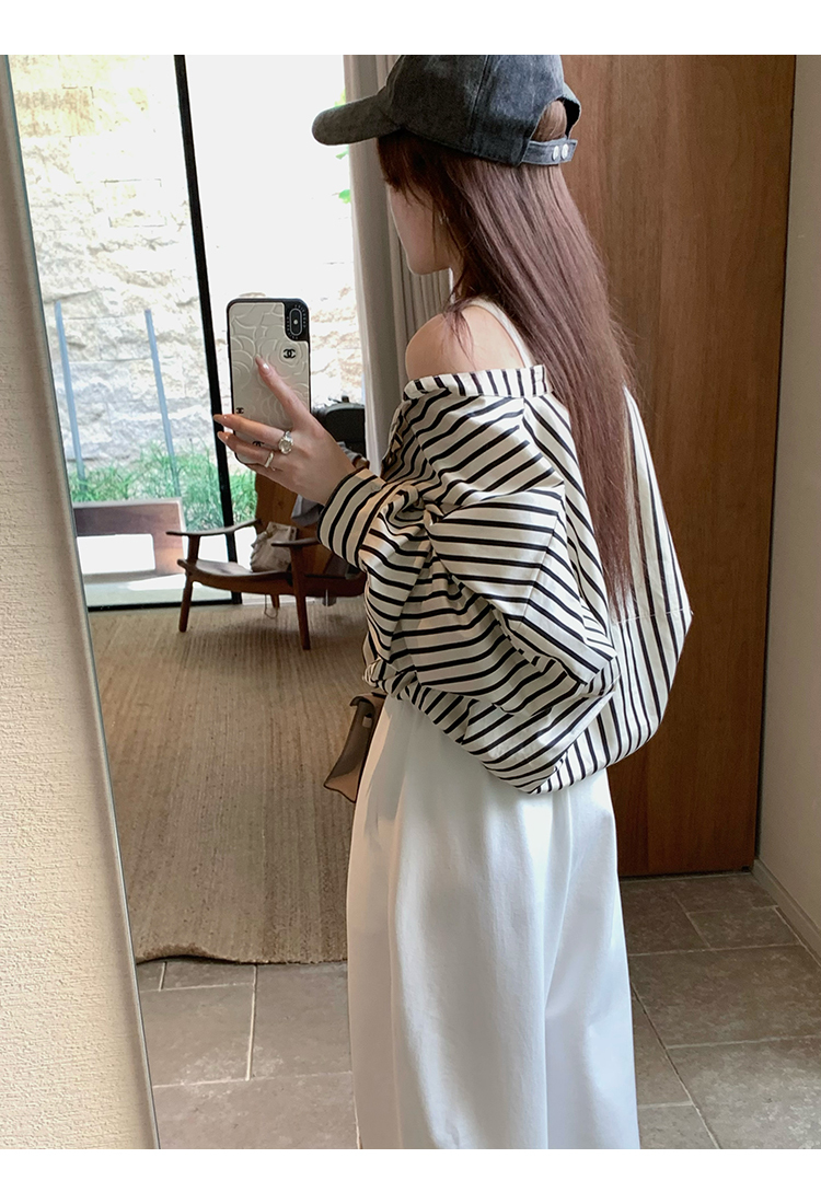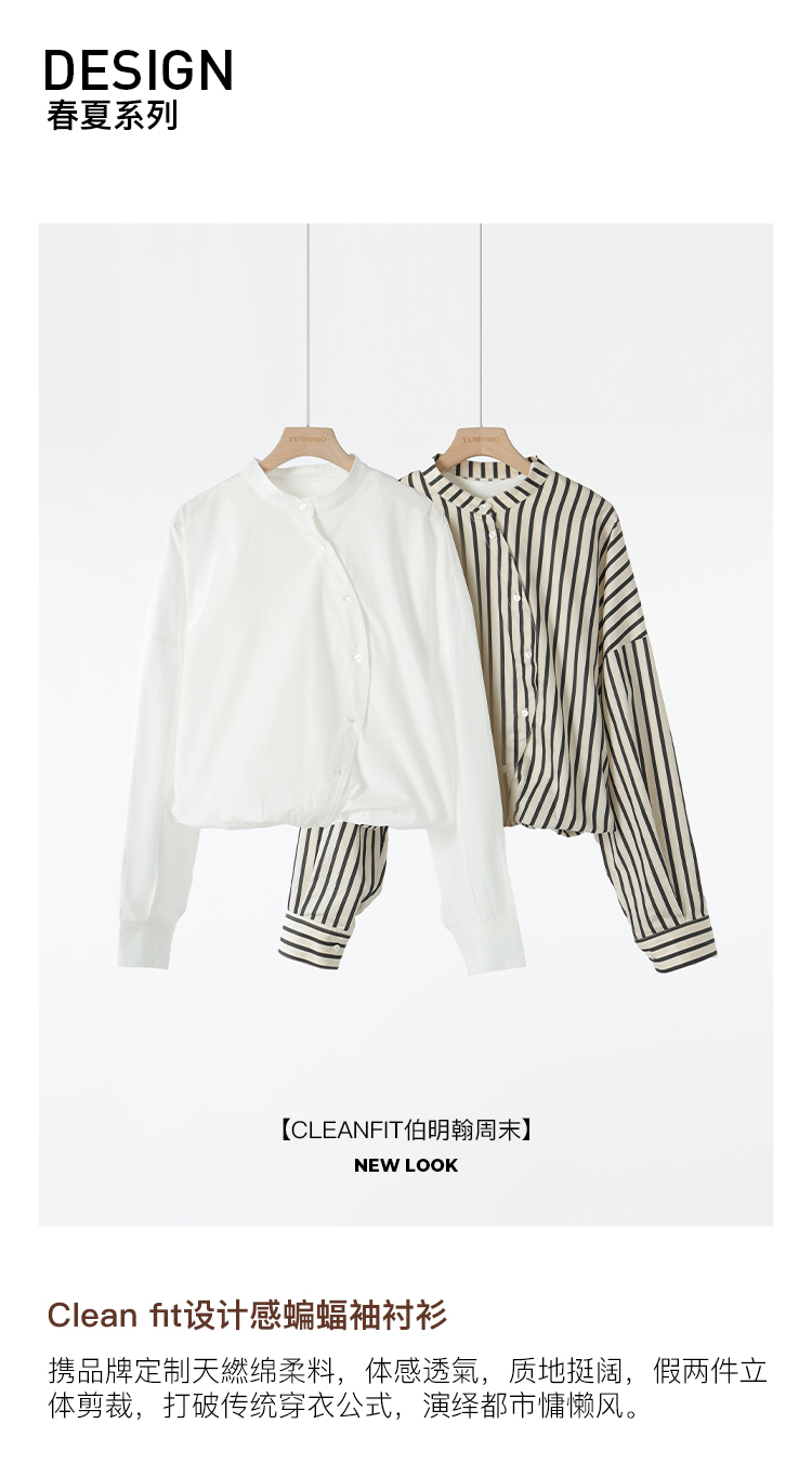 *o-ha-you*【FMQCA10005】cleanfit伯明罕週末 品牌訂製色織條紋純棉 寬鬆假兩件蝙蝠袖襯衫-2色