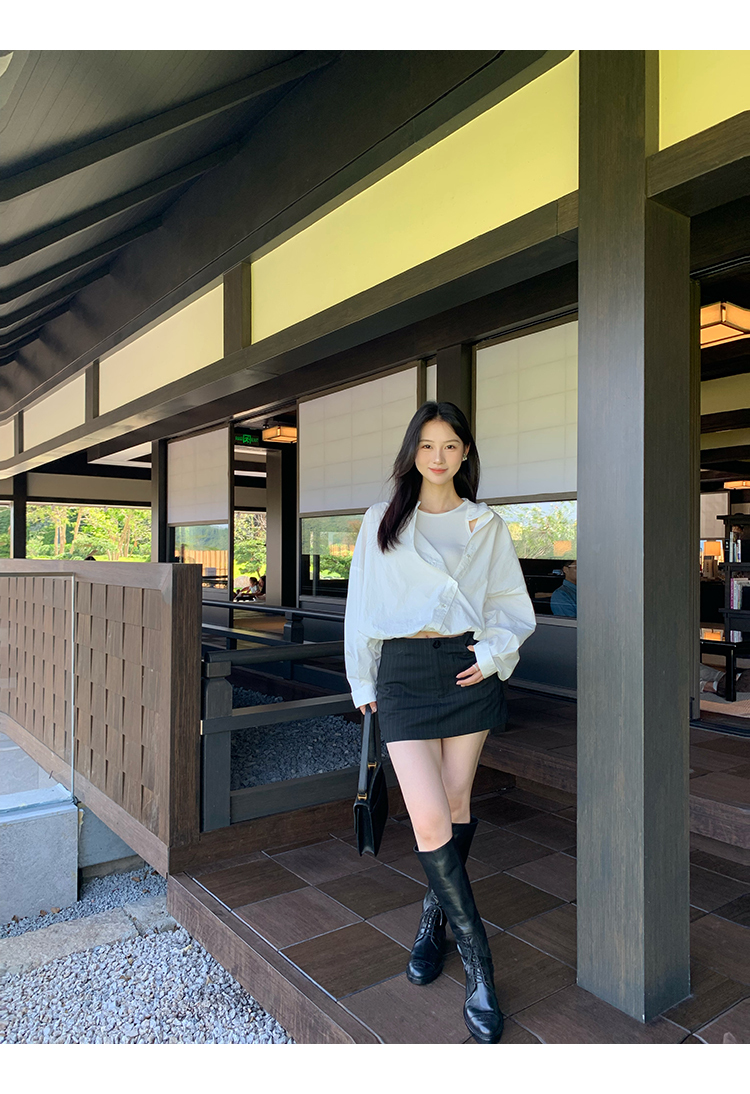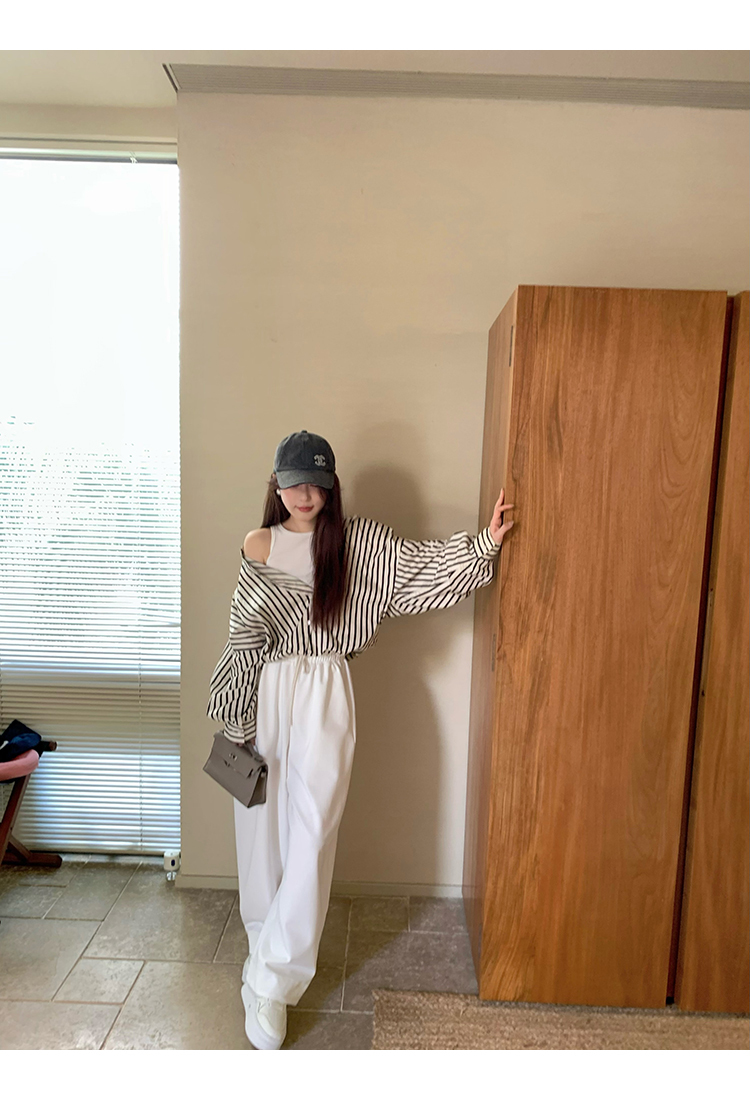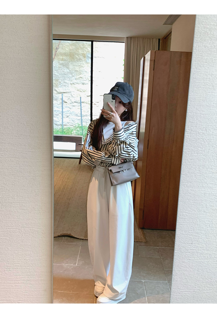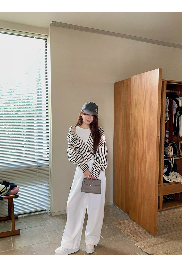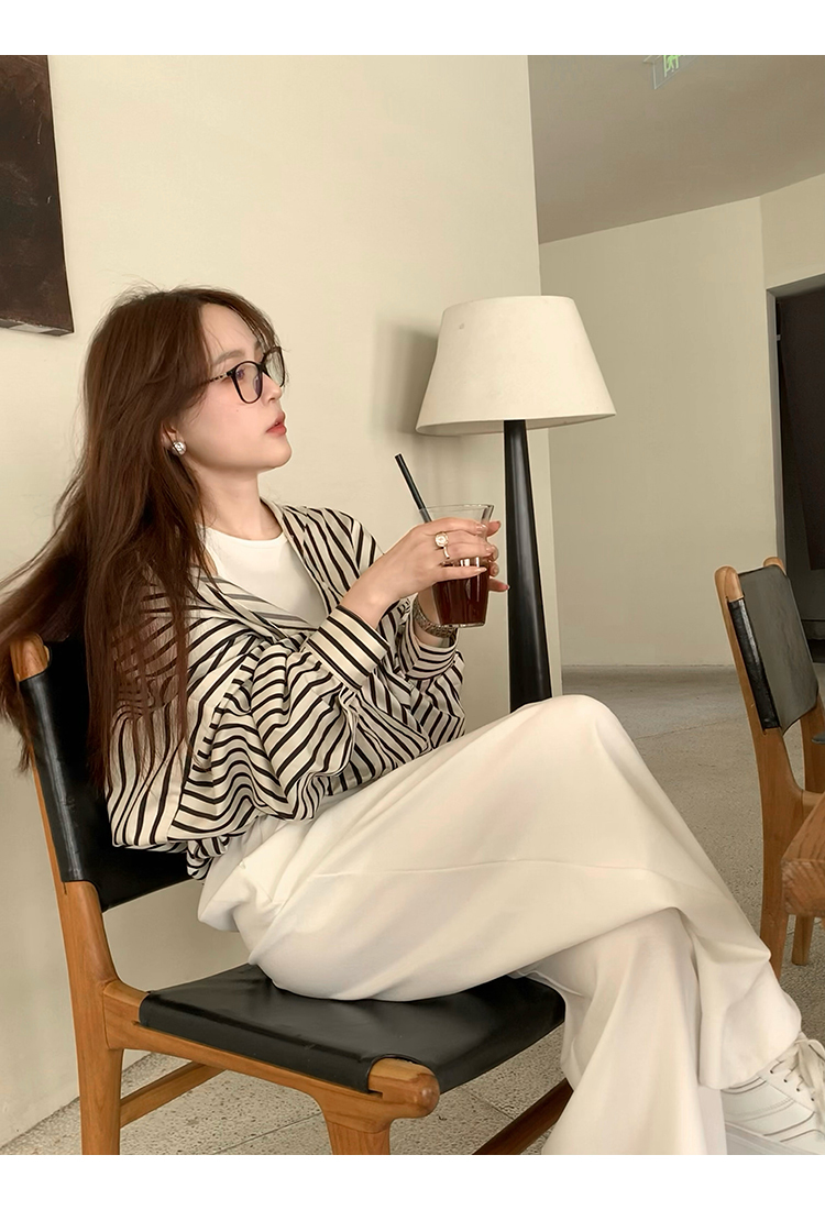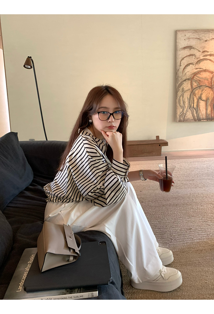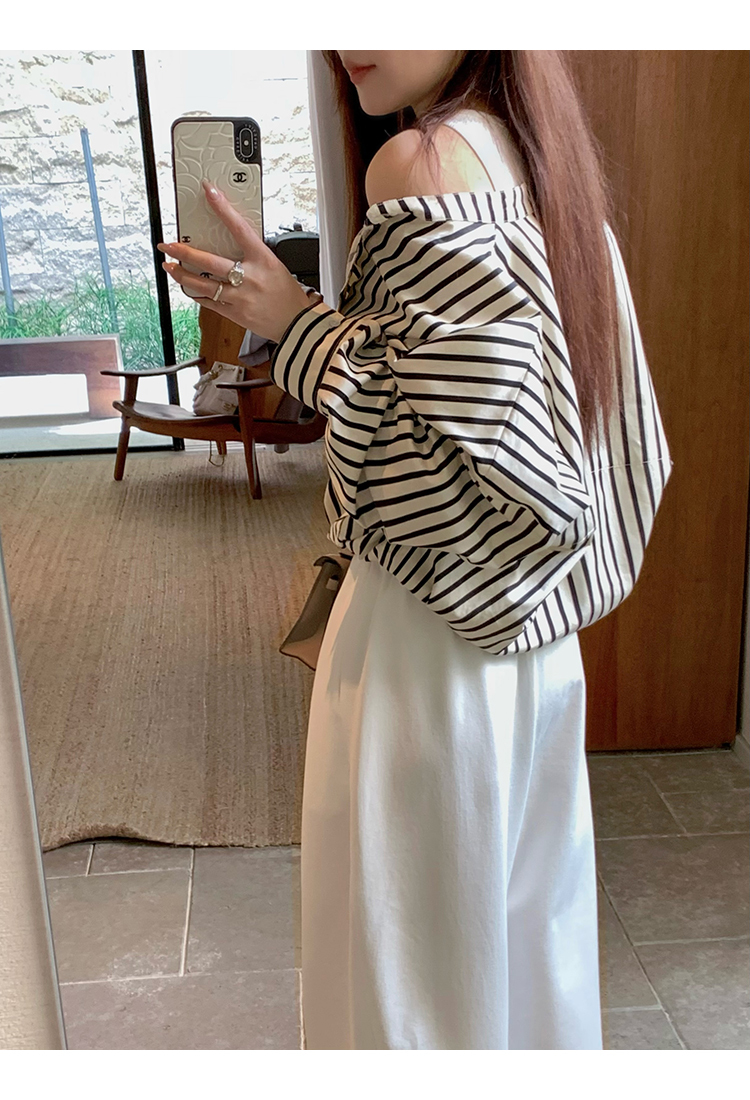 *o-ha-you*【FMQCA10005】cleanfit伯明罕週末 品牌訂製色織條紋純棉 寬鬆假兩件蝙蝠袖襯衫-2色