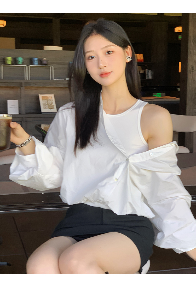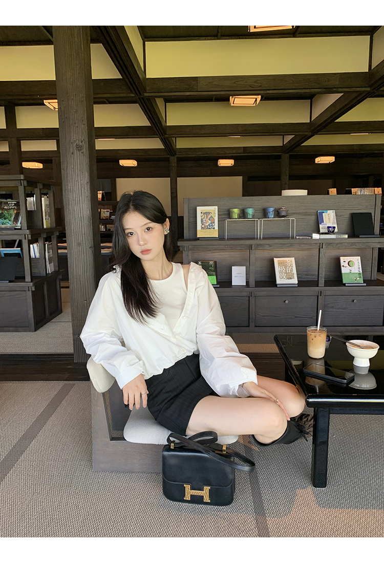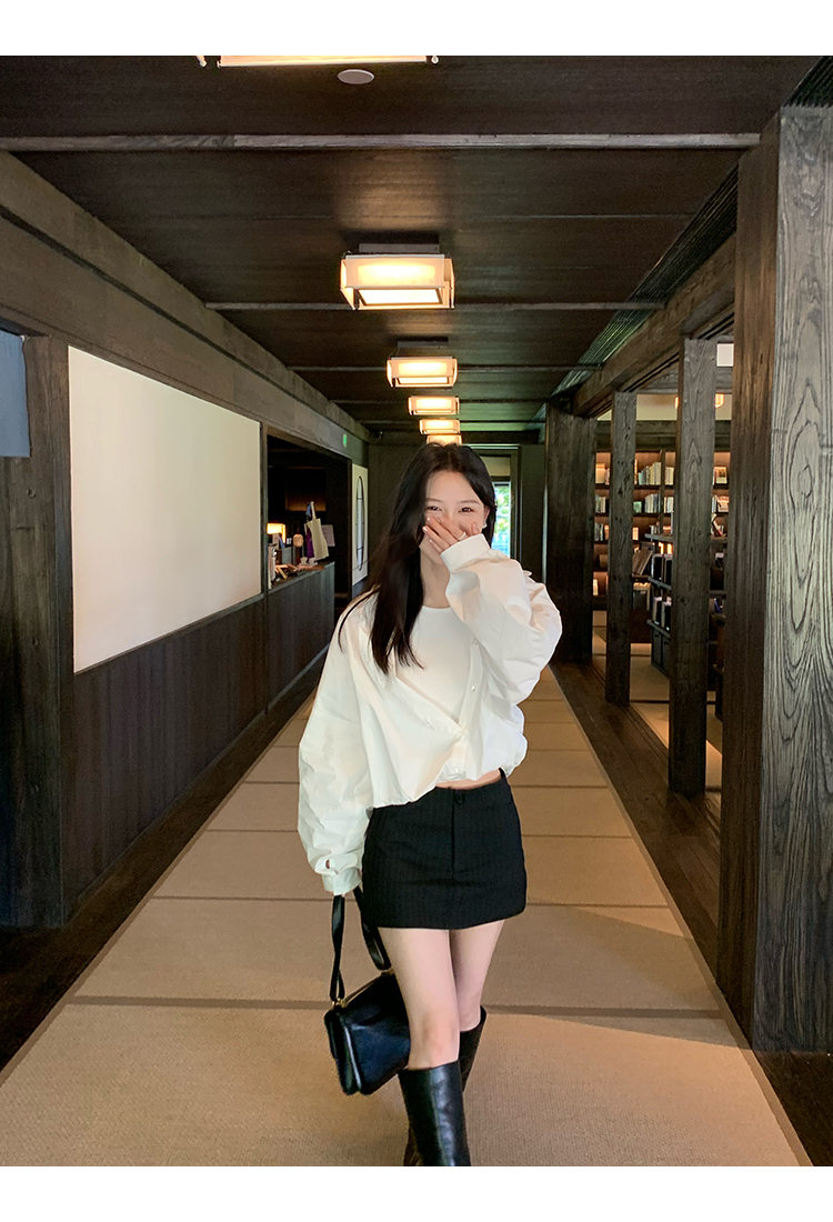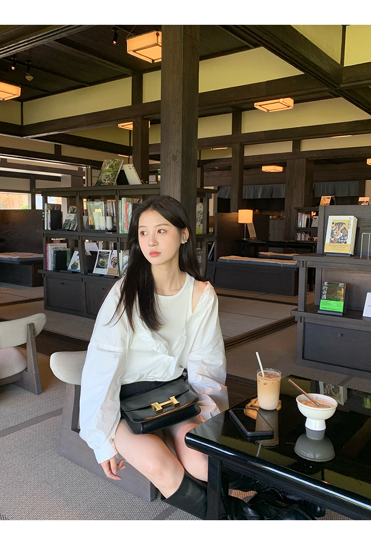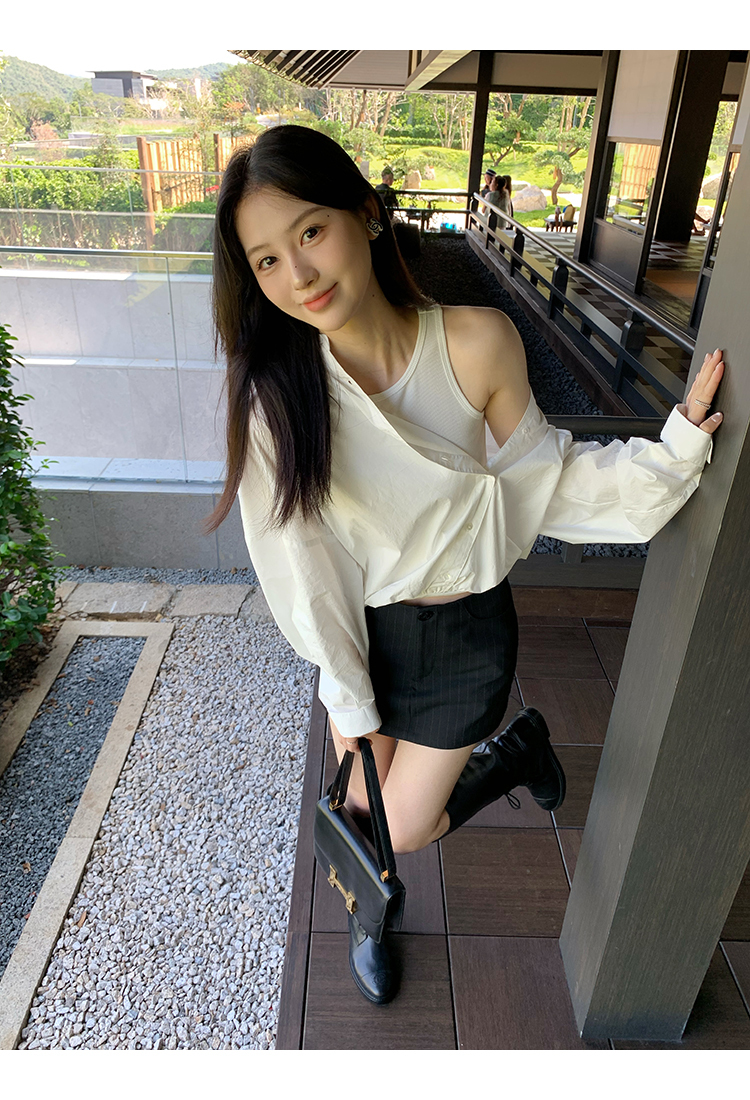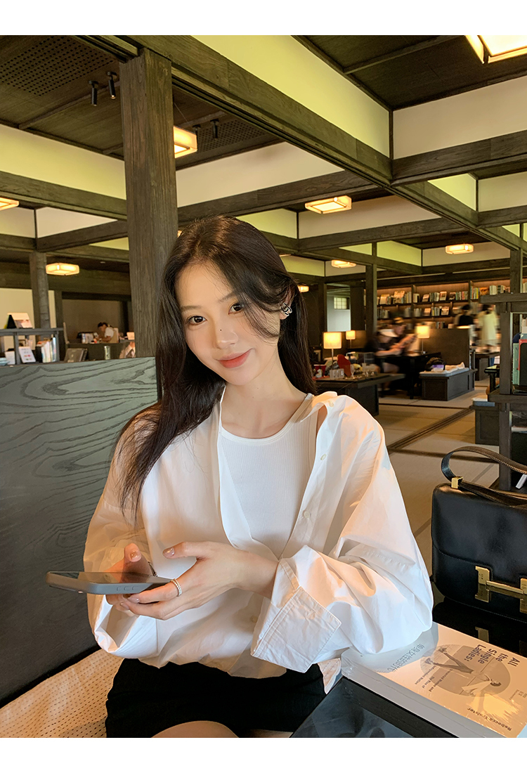 *o-ha-you*【FMQCA10005】cleanfit伯明罕週末 品牌訂製色織條紋純棉 寬鬆假兩件蝙蝠袖襯衫-2色