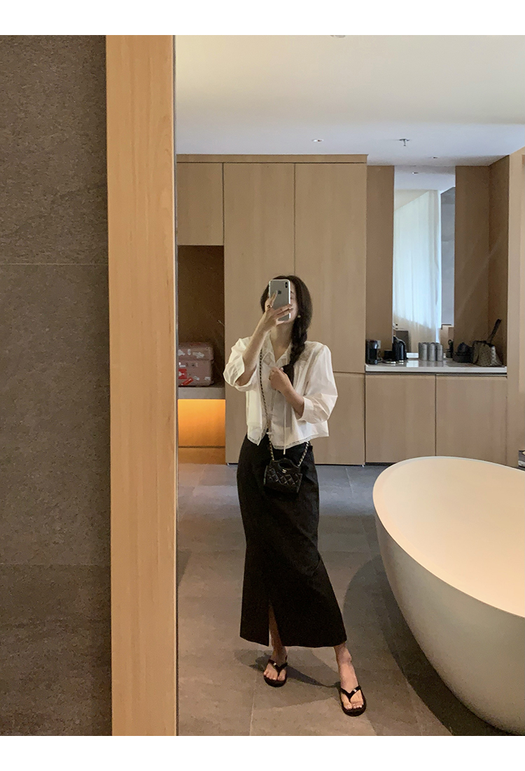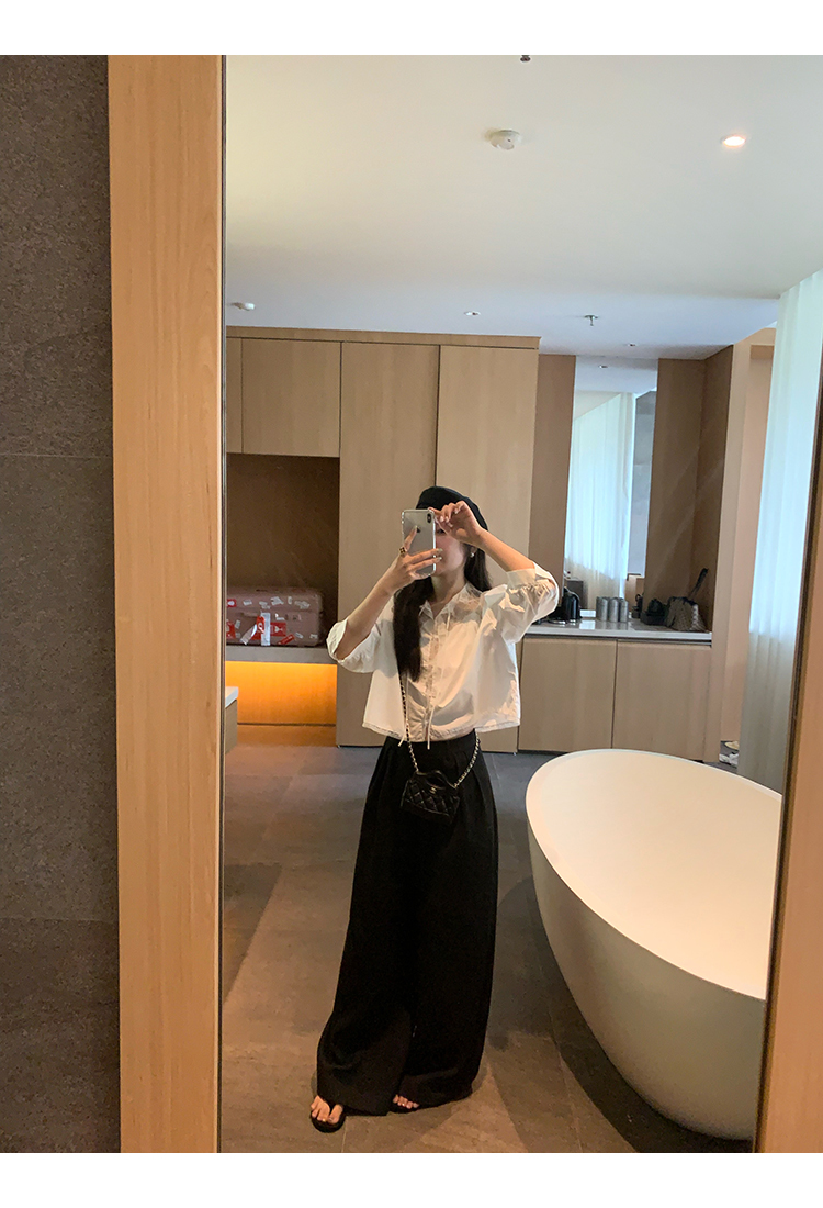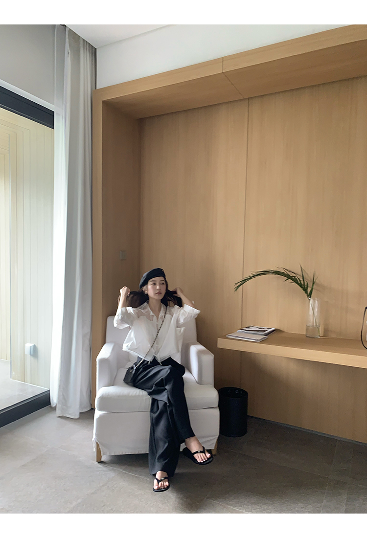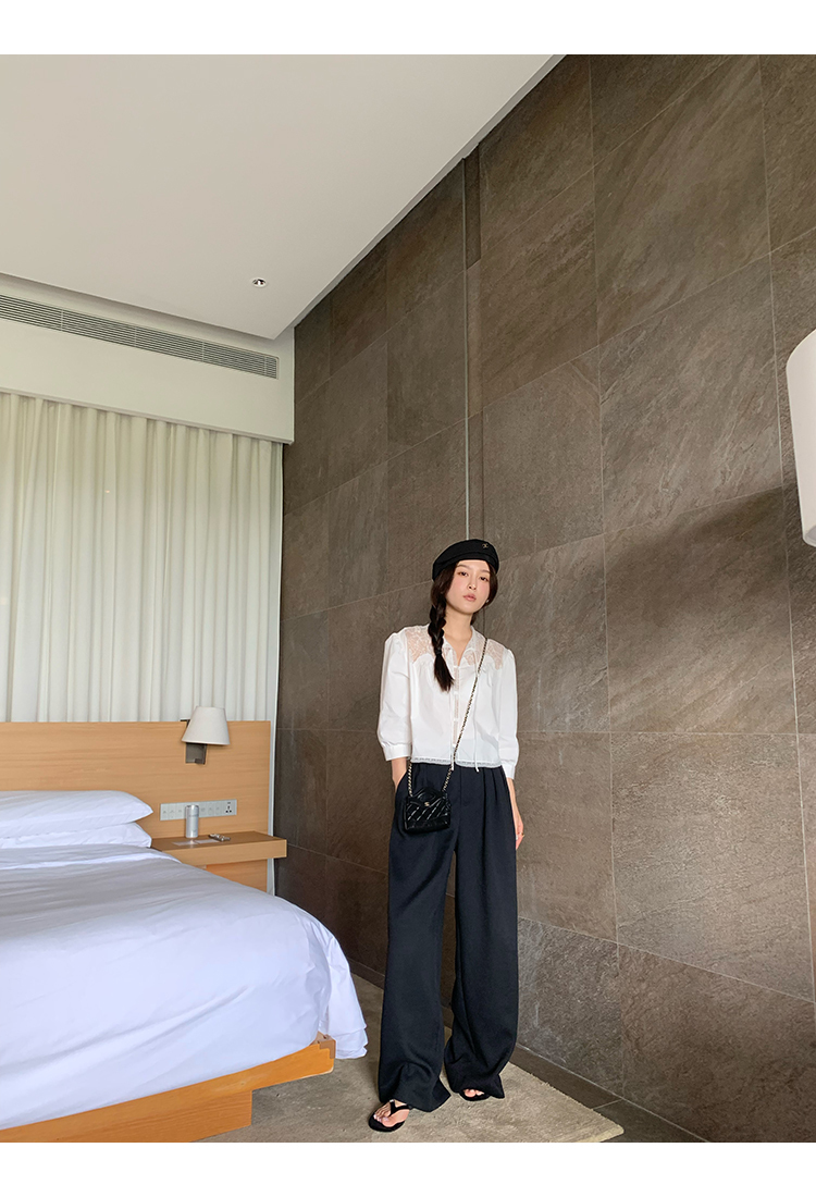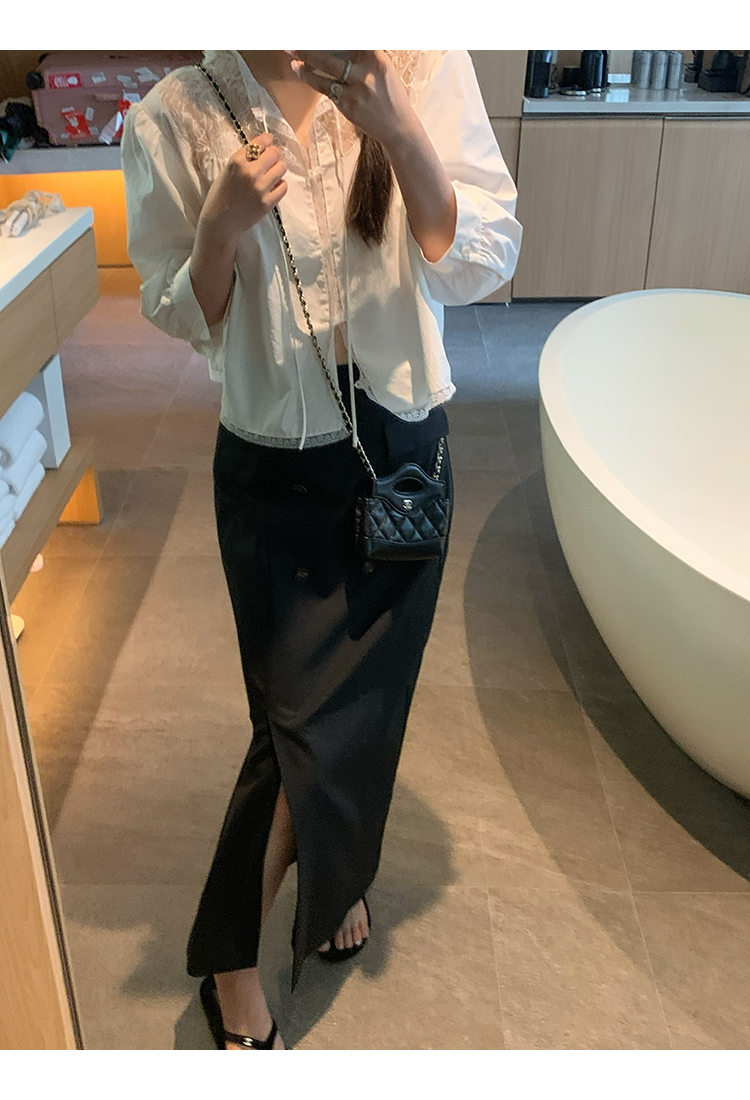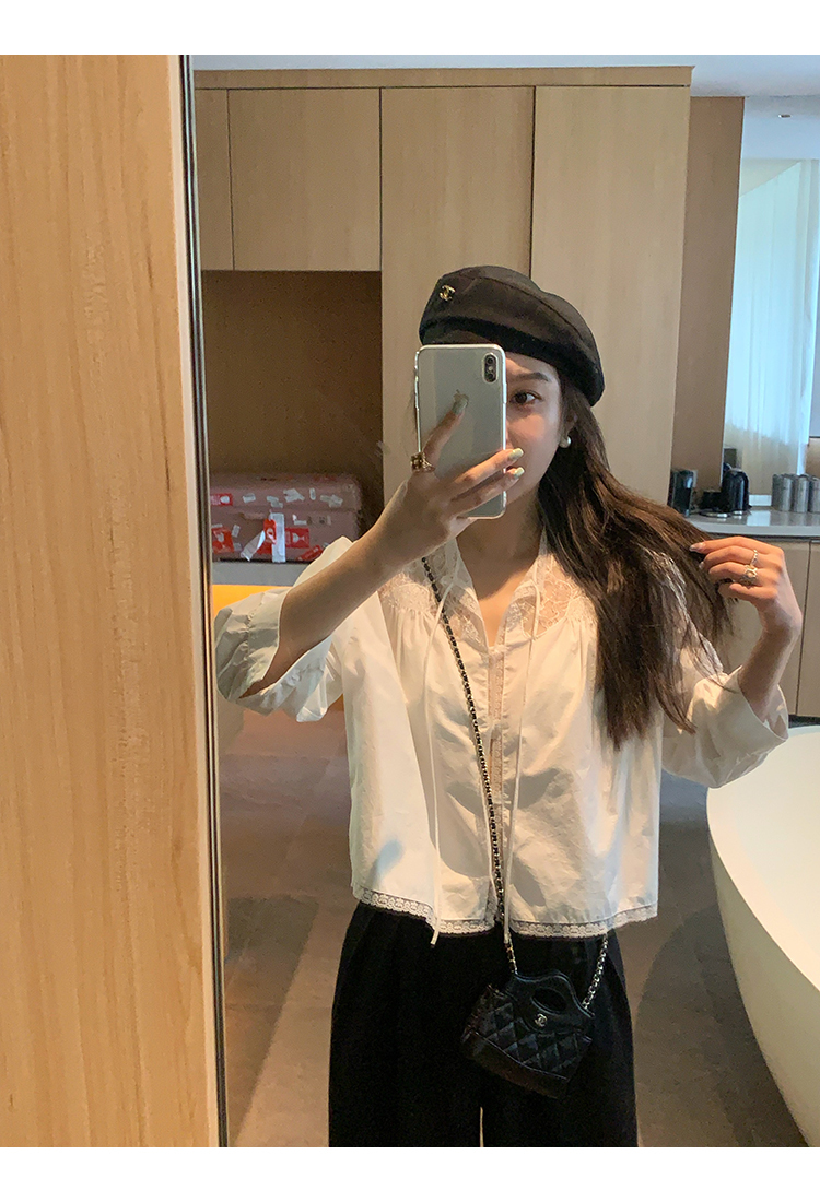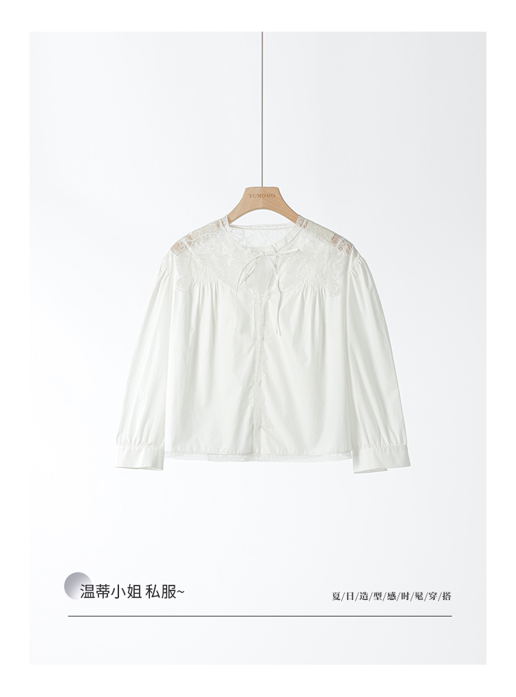 *o-ha-you*【FMQD2032036】溫蒂小姐骨感精梳棉法式少女感睫毛蕾絲泡泡袖襯衫+吊帶