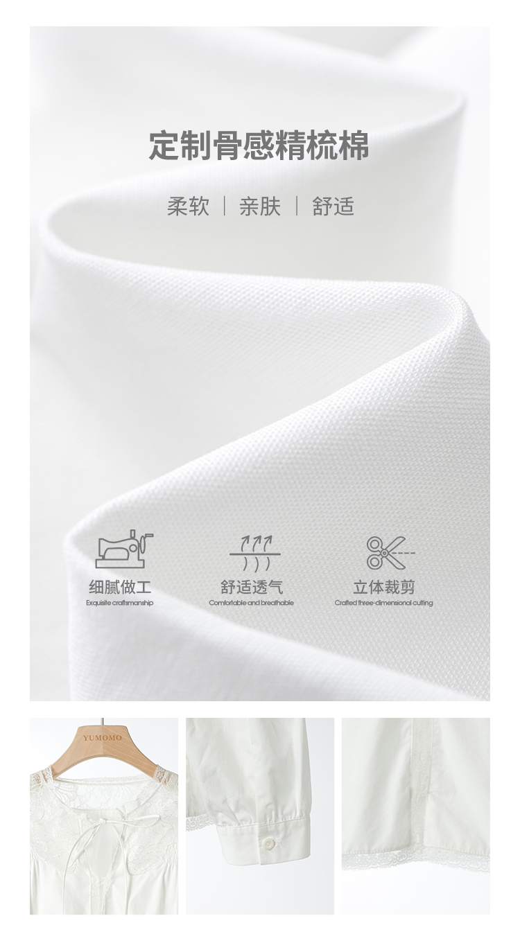 領型設計圓領設計,繡花蕾絲拼接設計,菁致顯質感