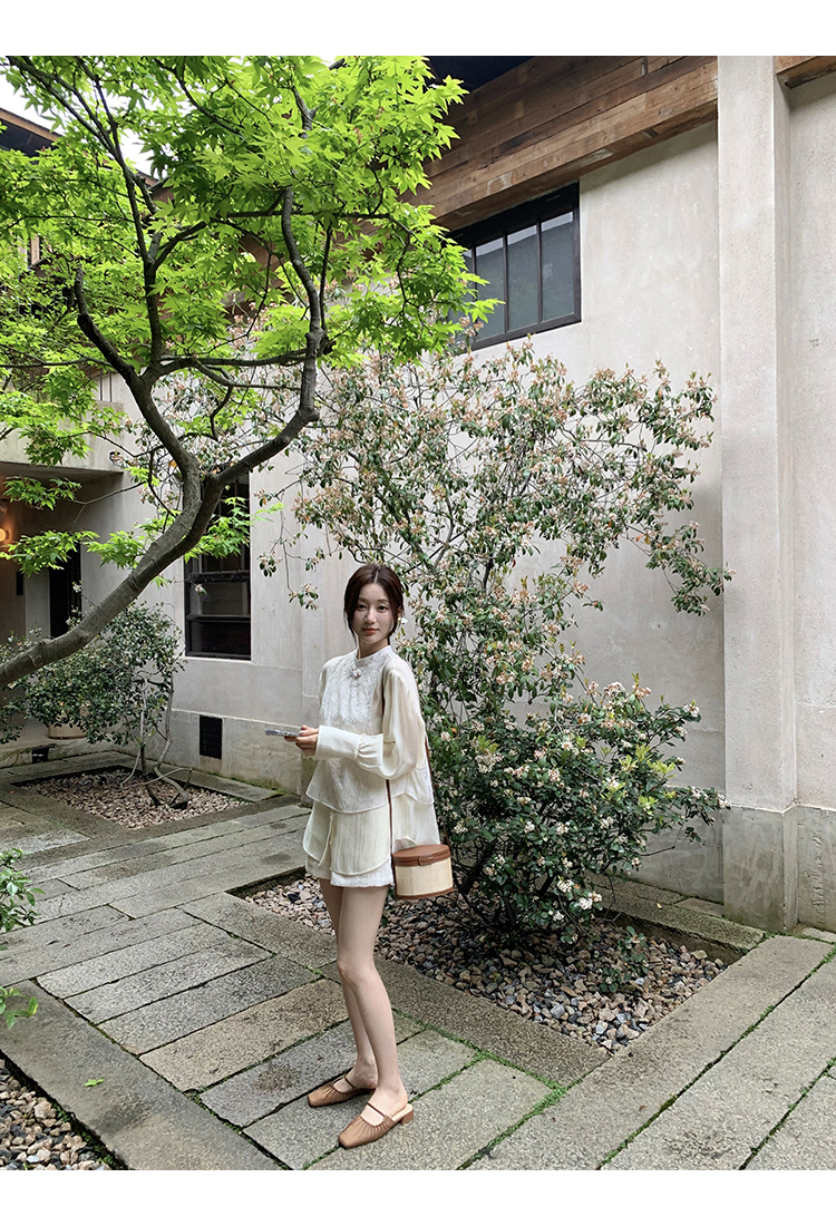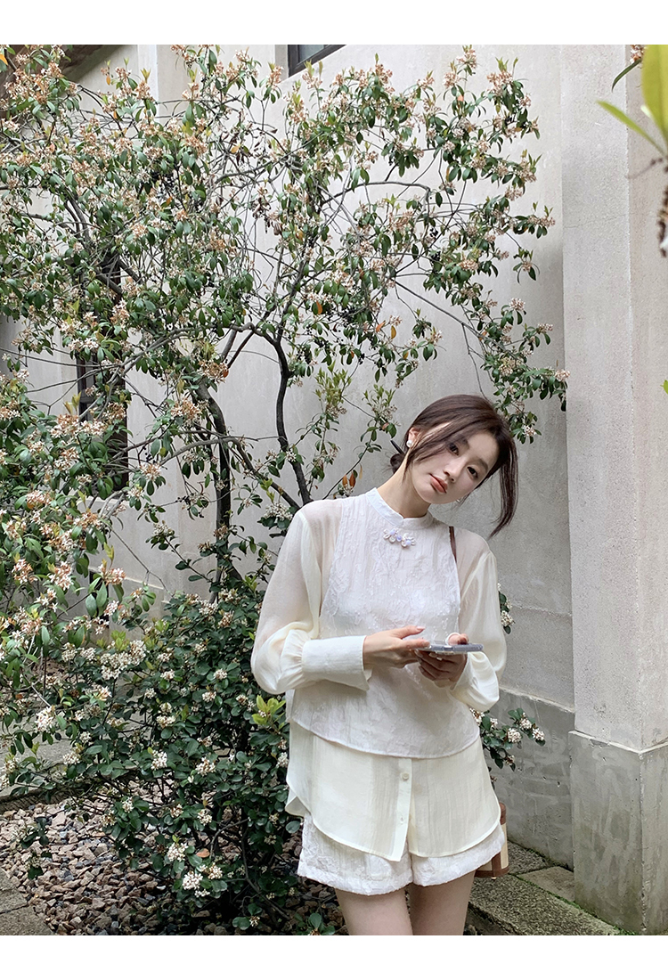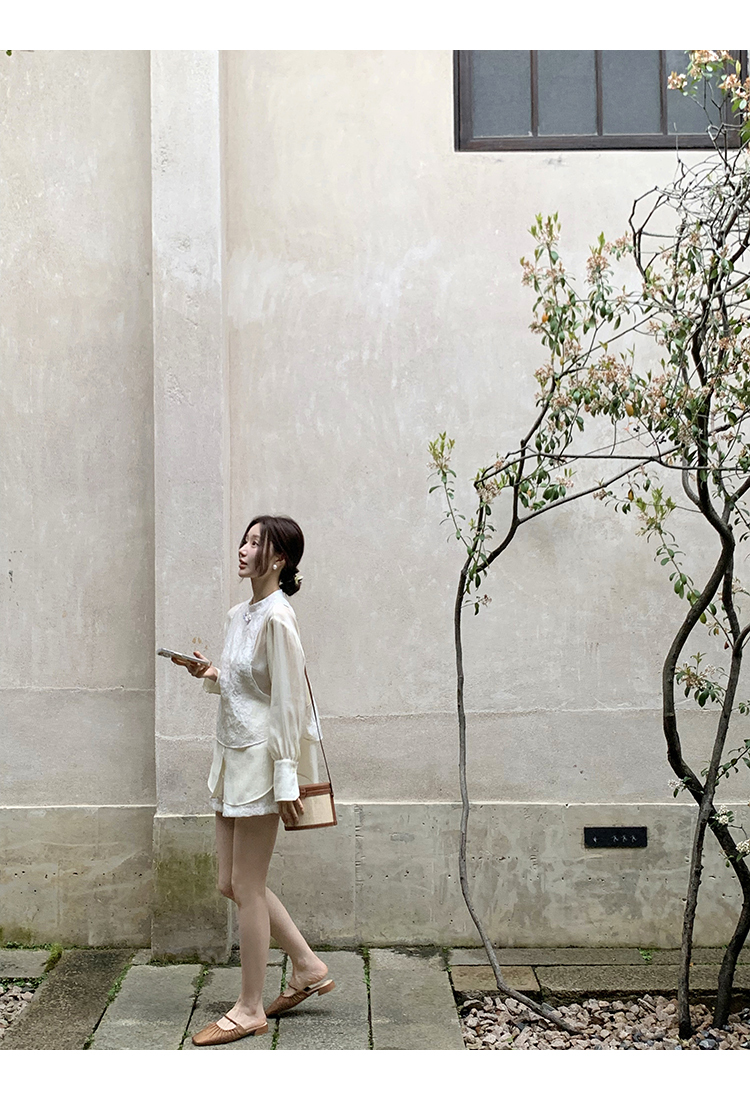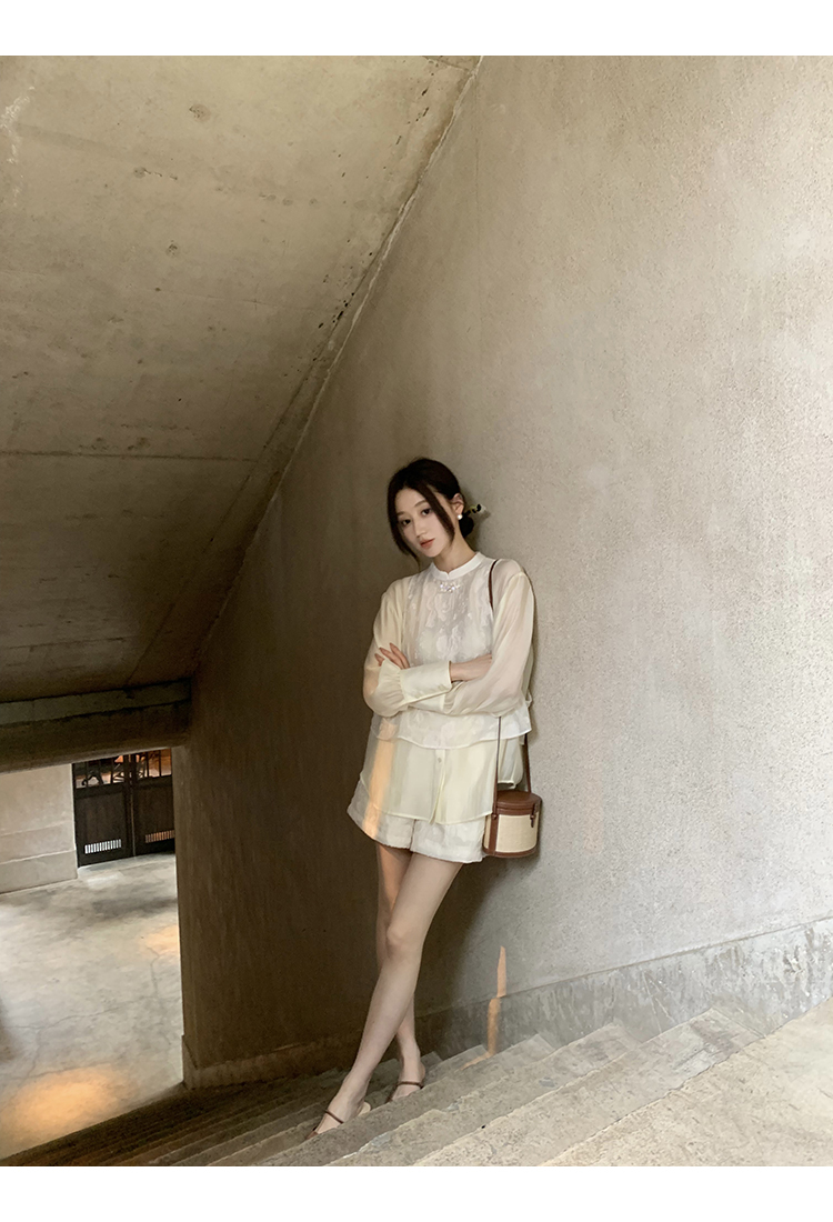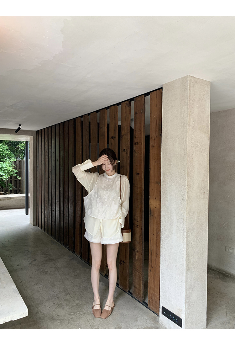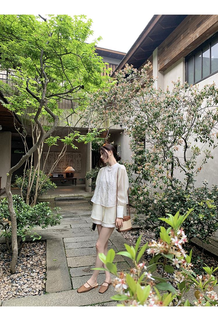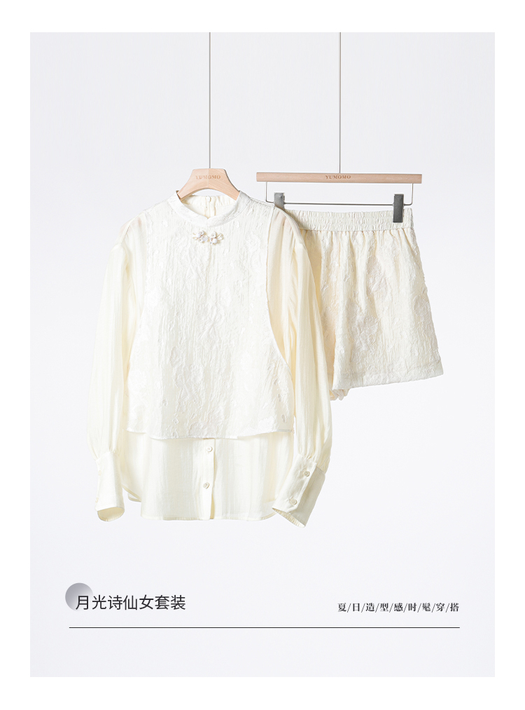 *o-ha-you*【FMQD2041012】月光詩仙女套裝立體剪花|清涼輕盈新中式旗袍領假兩件上衣/短褲