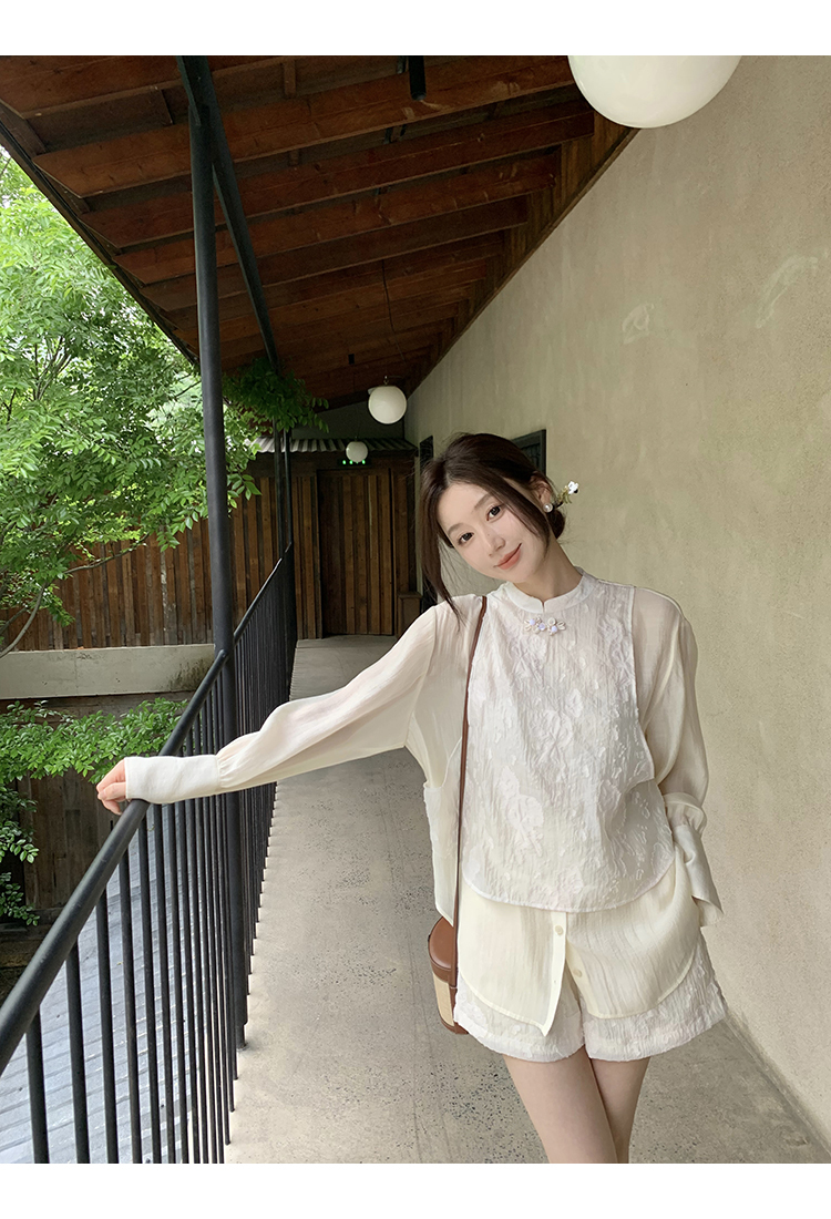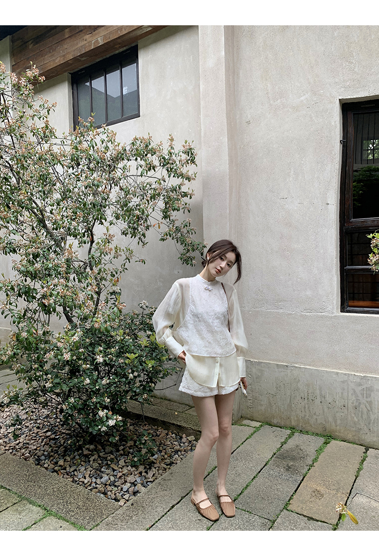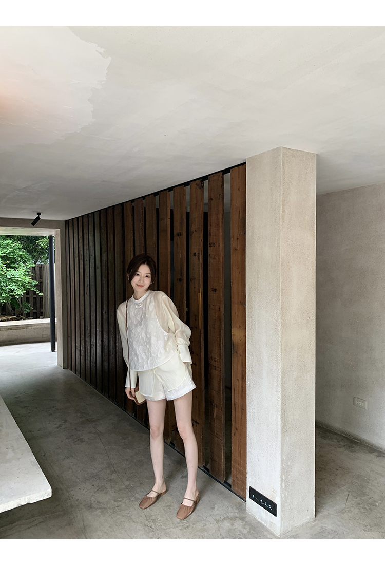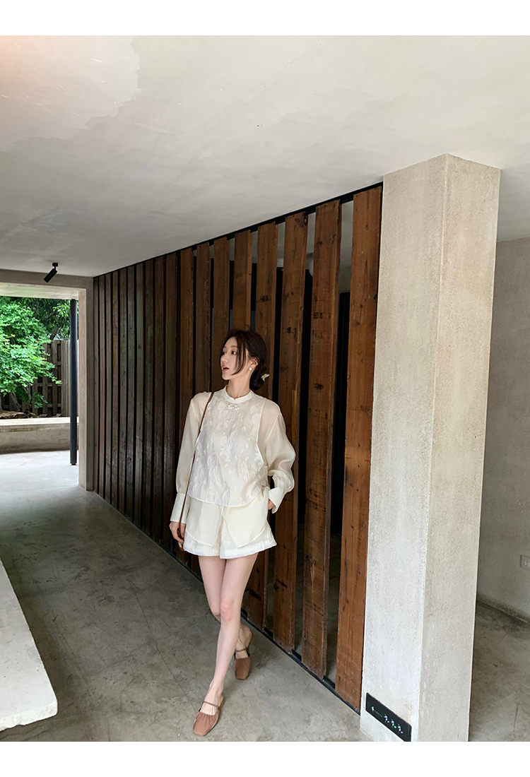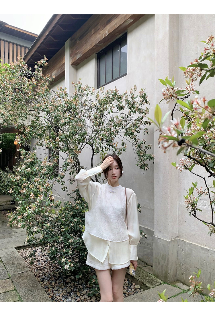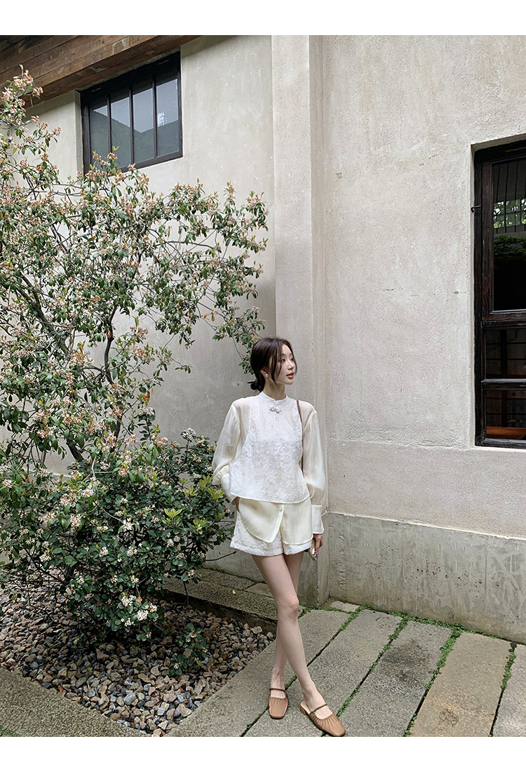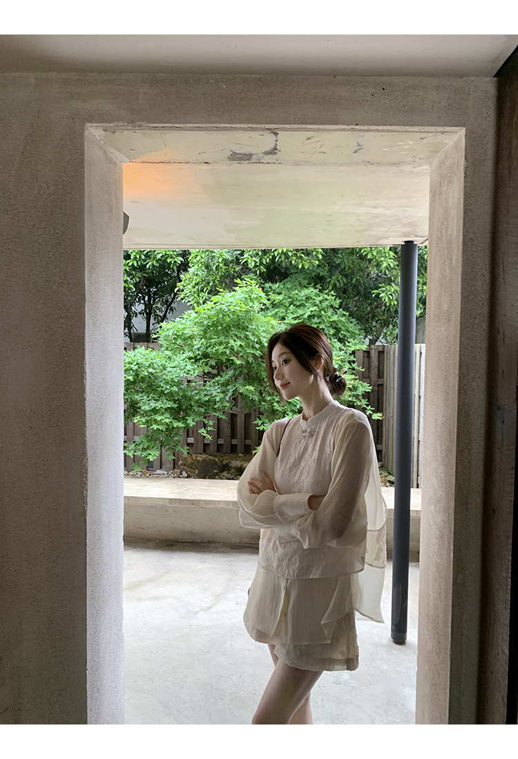 *o-ha-you*【FMQD2041012】月光詩仙女套裝立體剪花|清涼輕盈新中式旗袍領假兩件上衣/短褲
