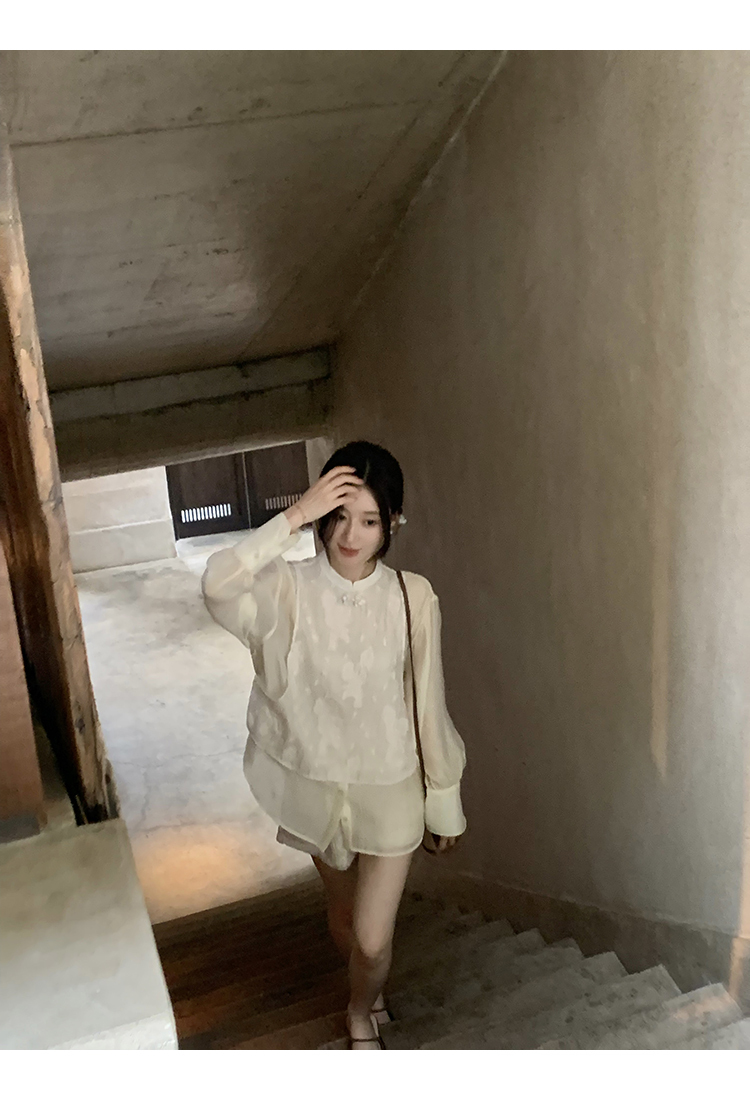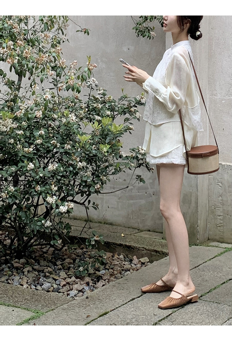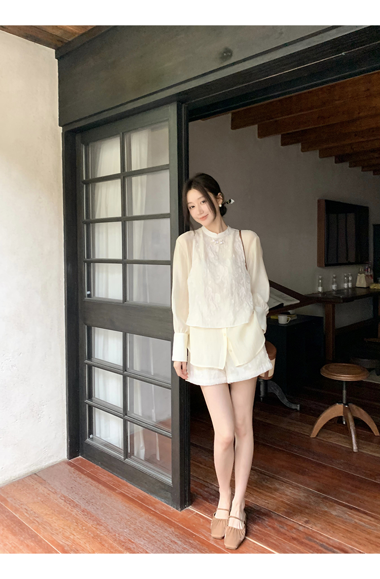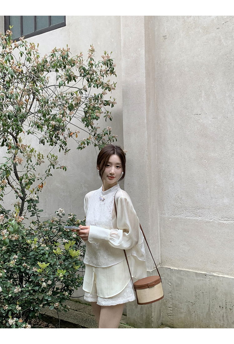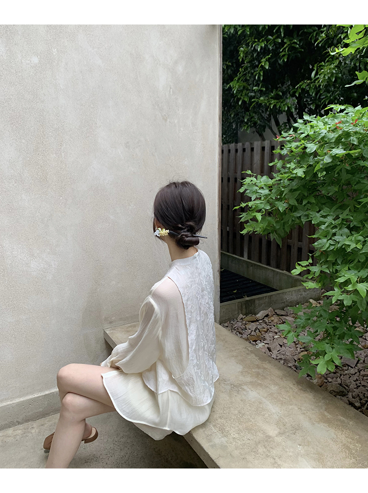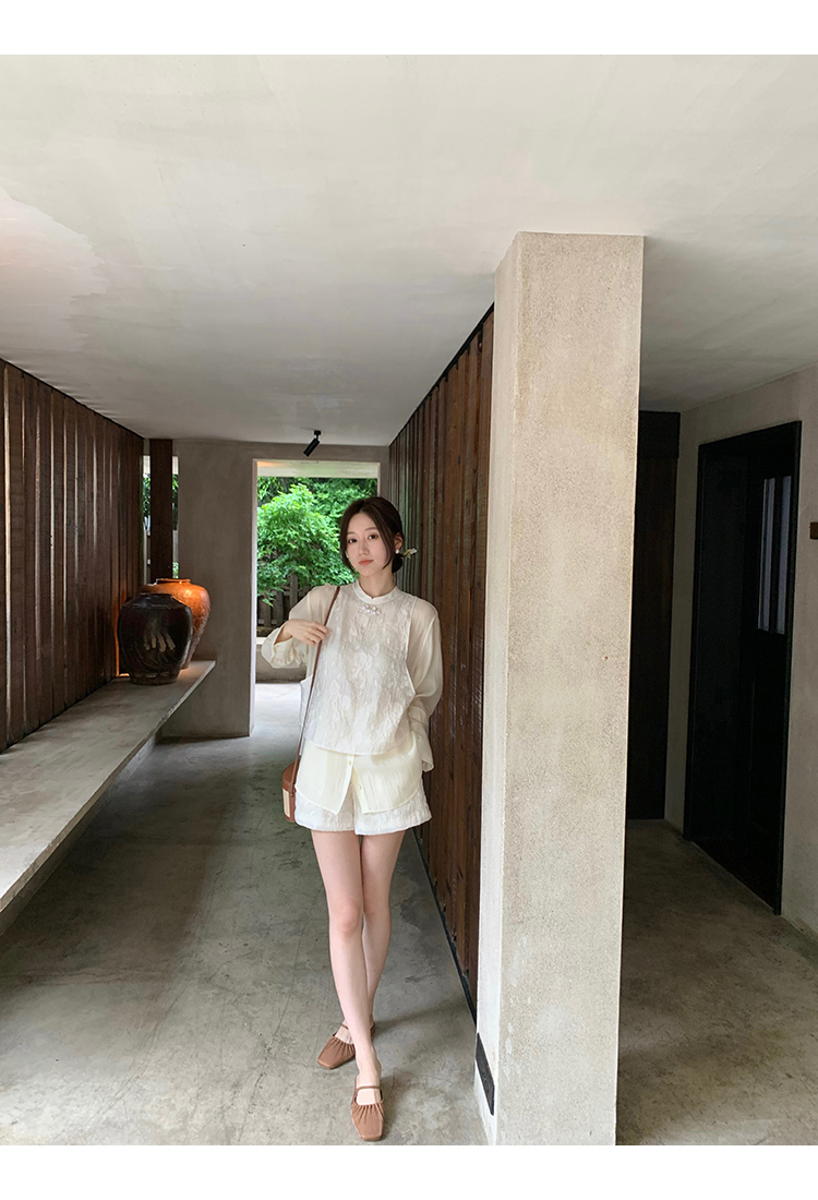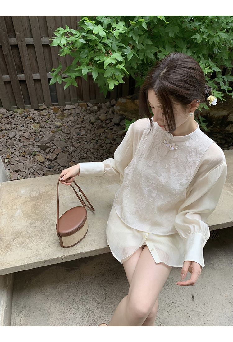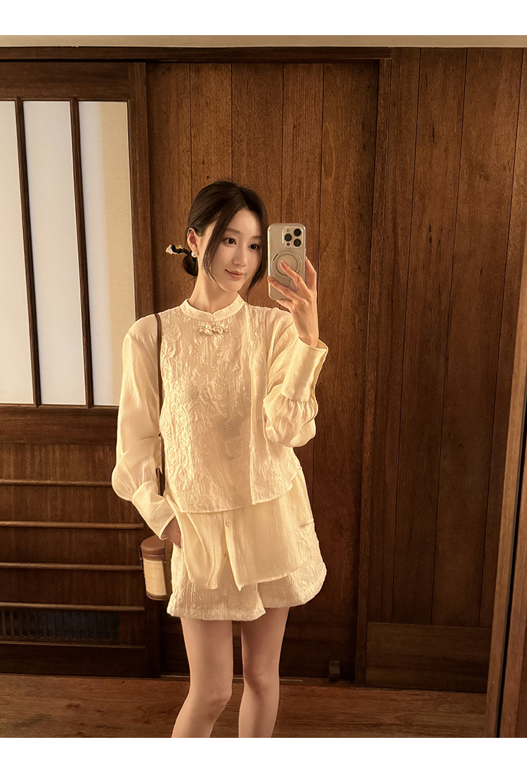 *o-ha-you*【FMQD2041012】月光詩仙女套裝立體剪花|清涼輕盈新中式旗袍領假兩件上衣/短褲