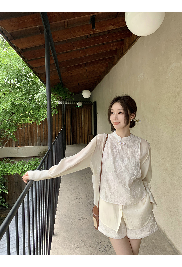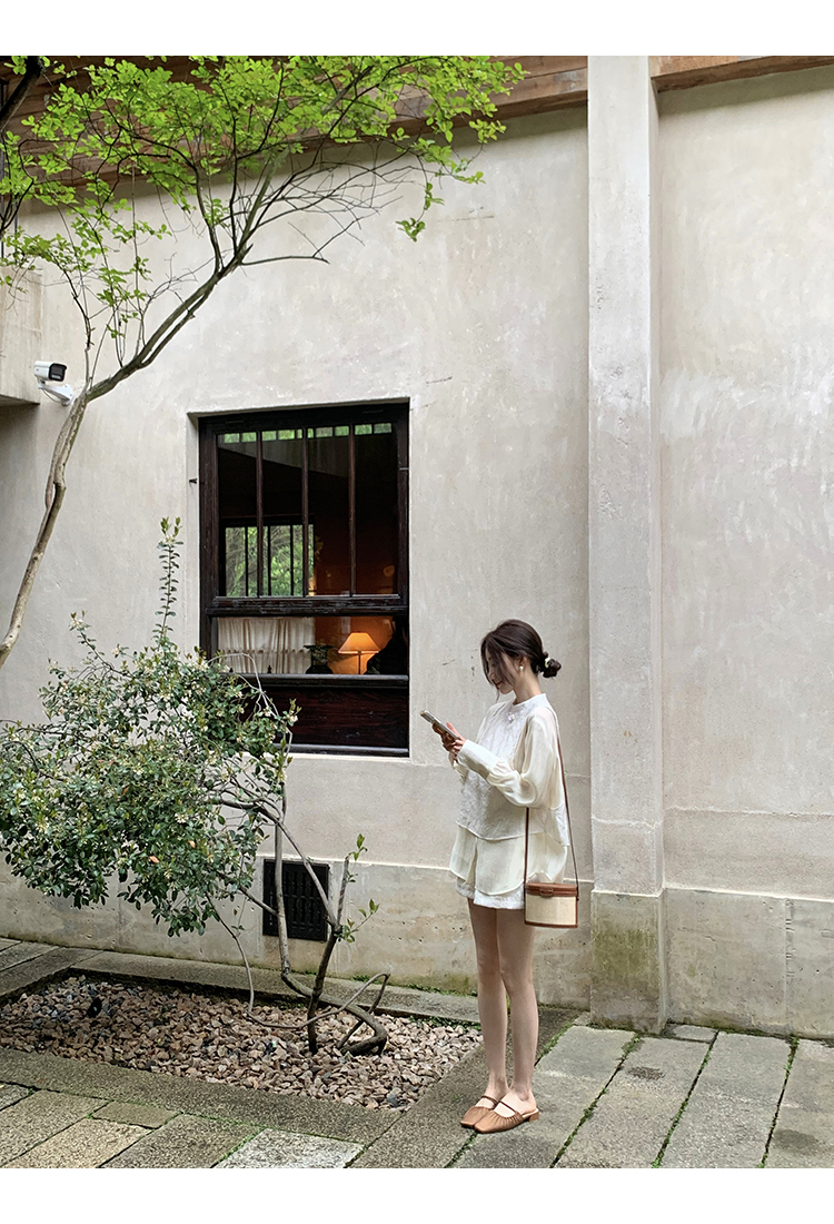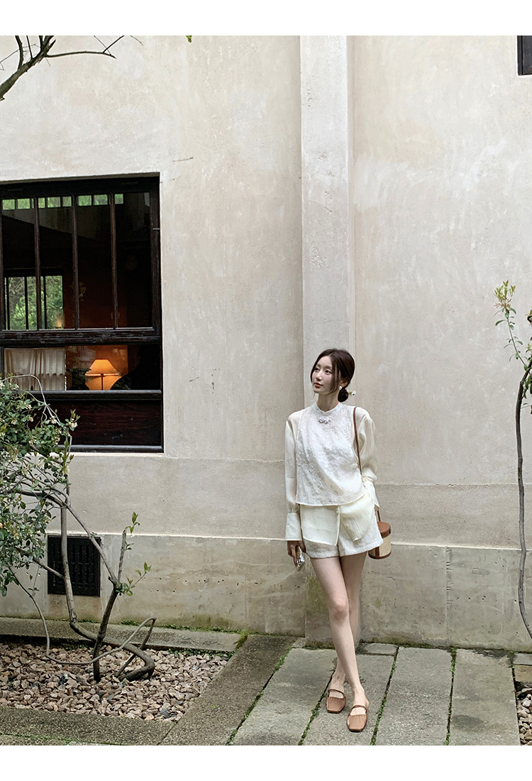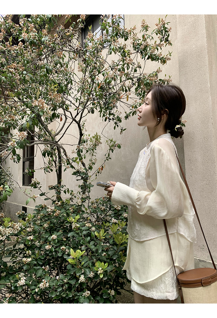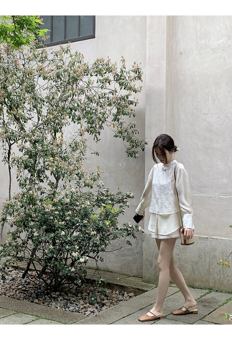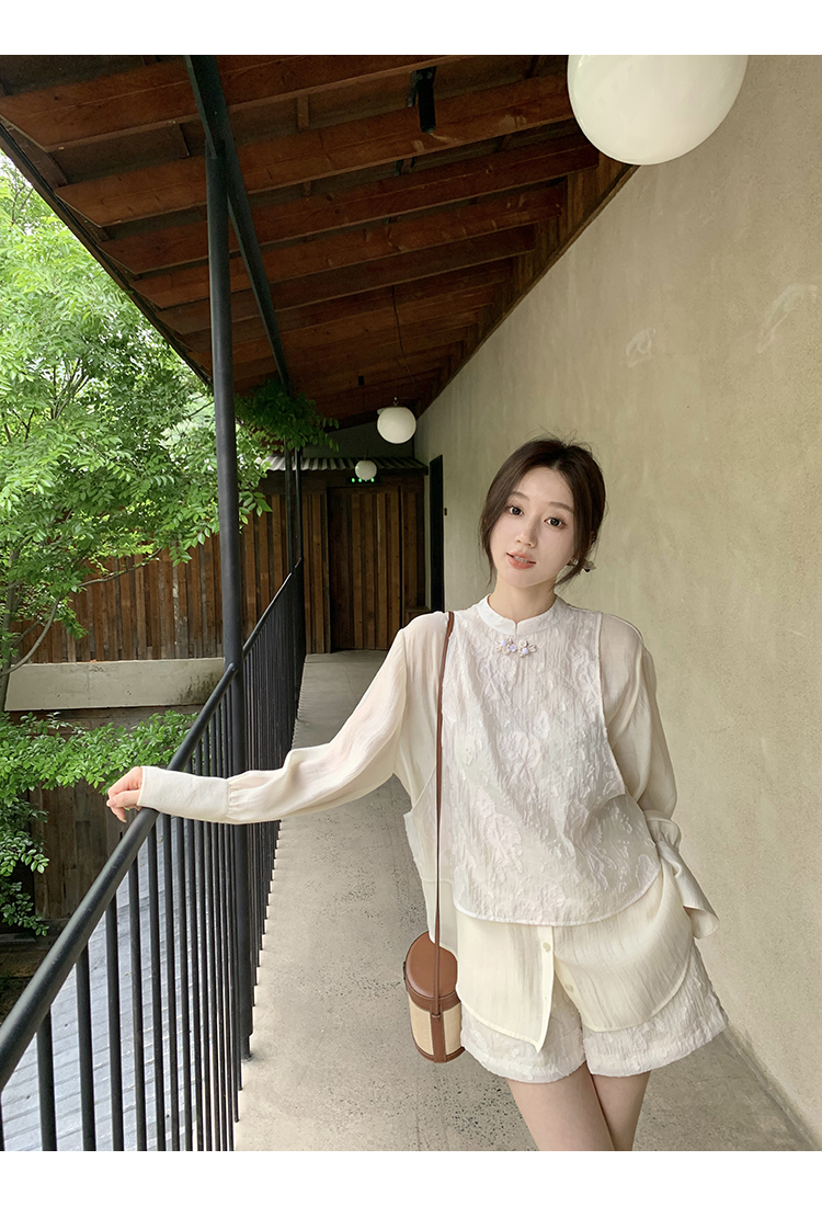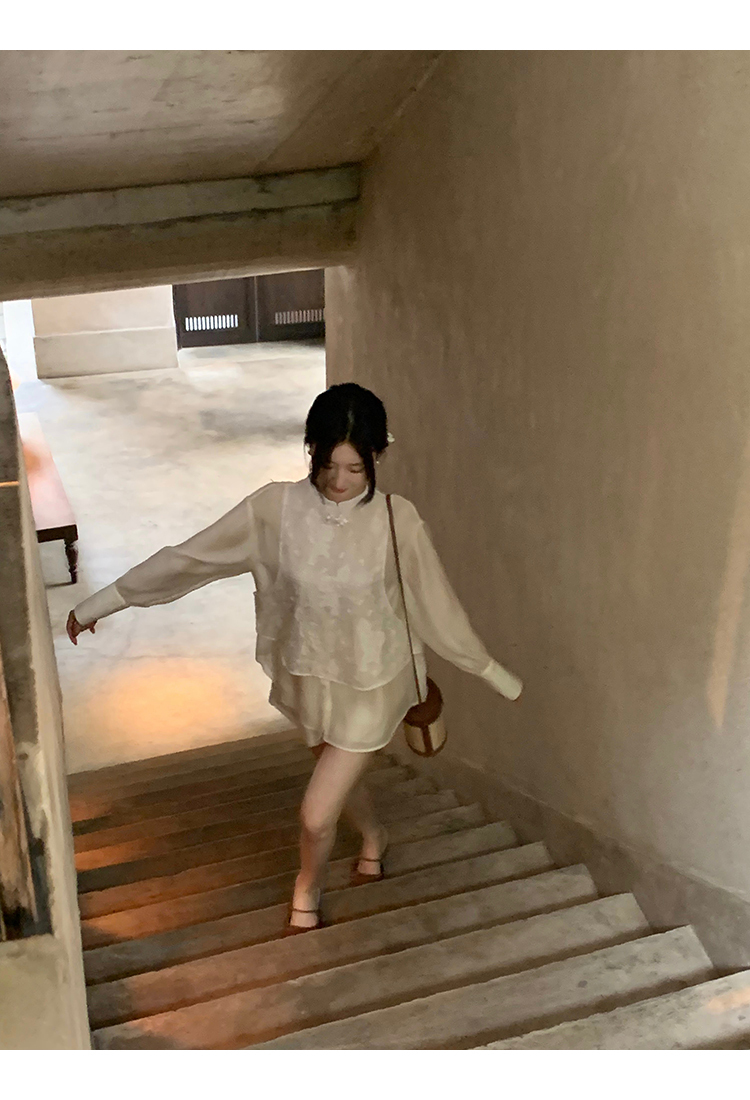 *o-ha-you*【FMQD2041012】月光詩仙女套裝立體剪花|清涼輕盈新中式旗袍領假兩件上衣/短褲