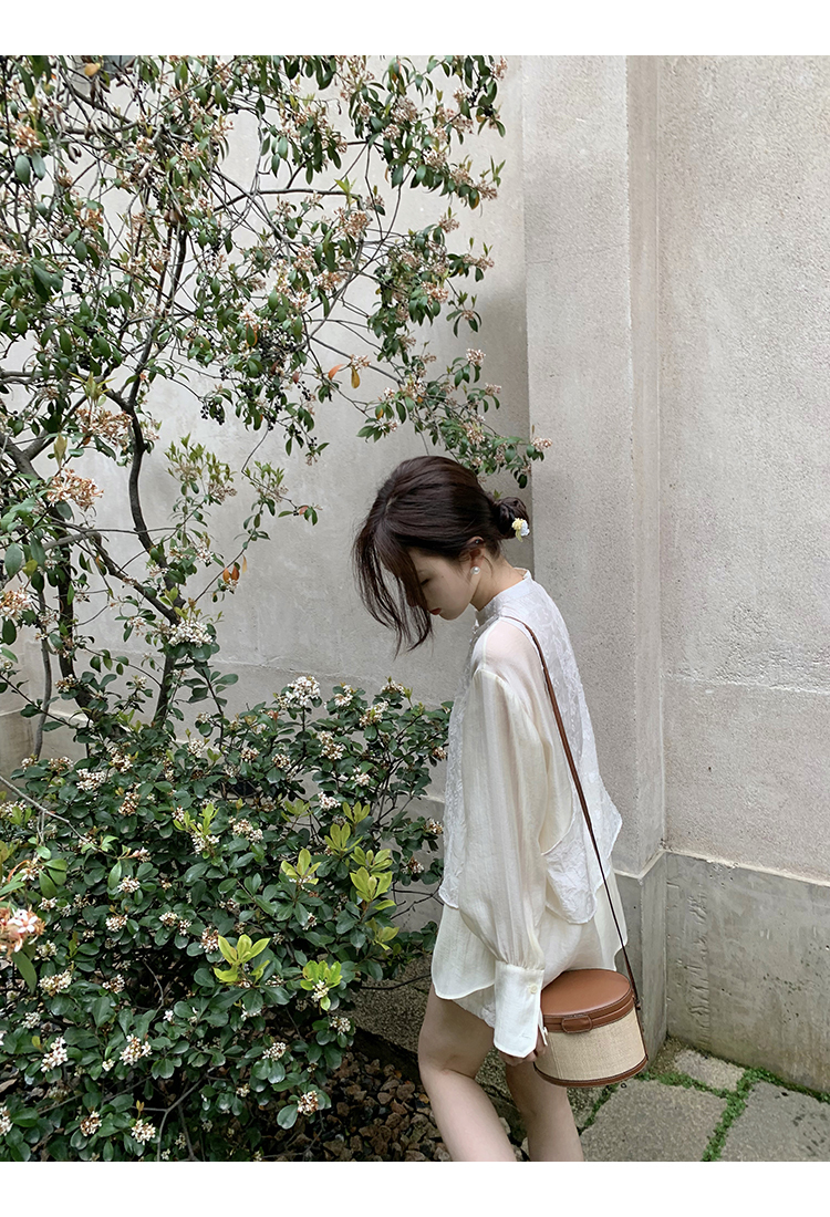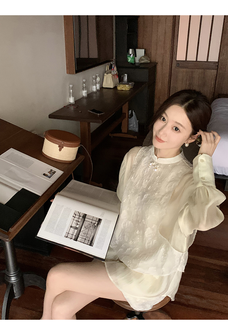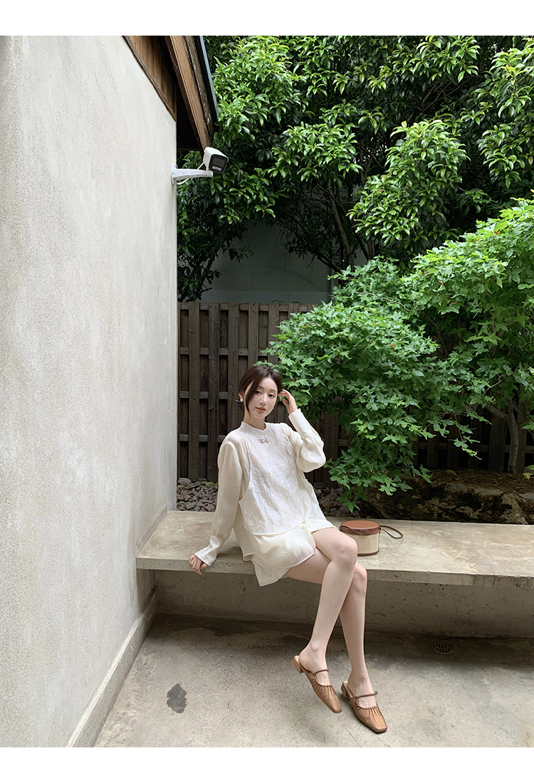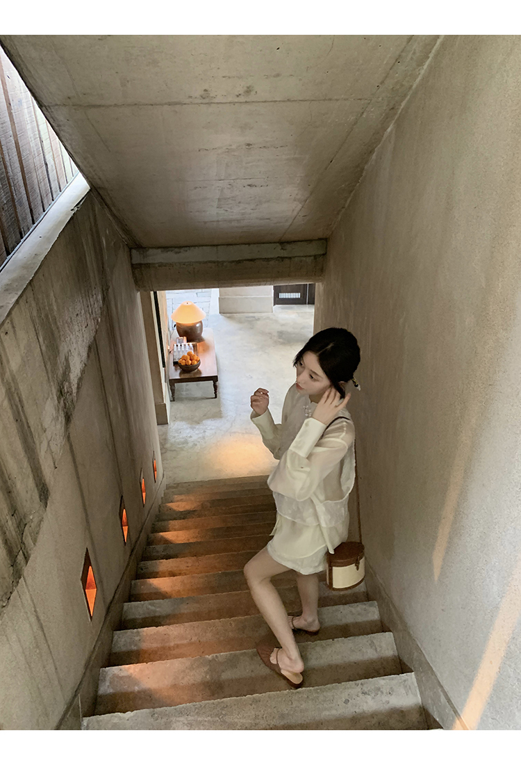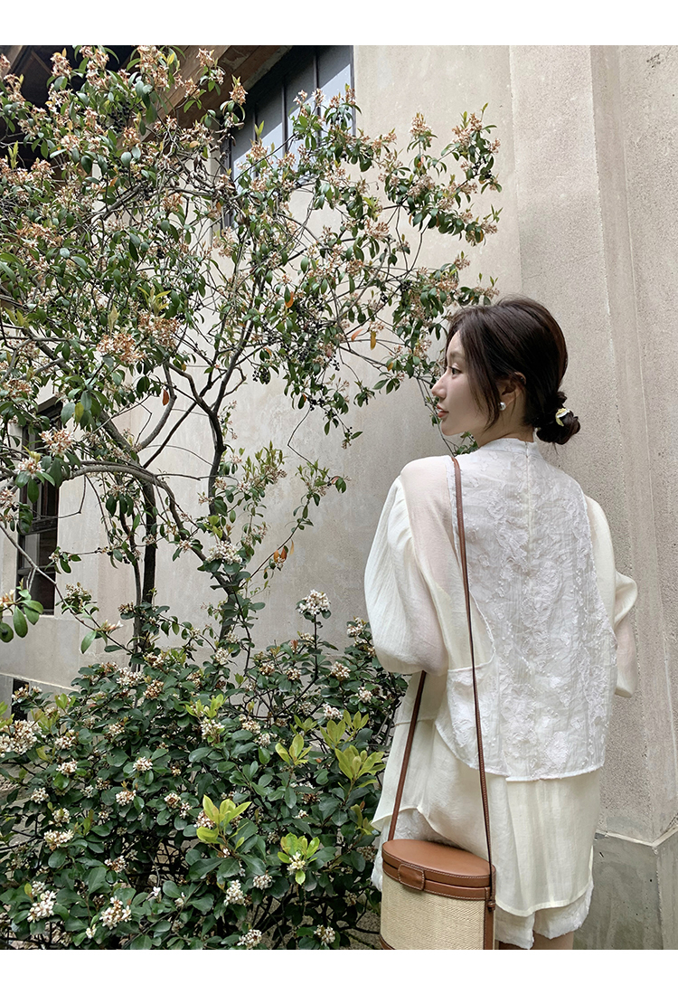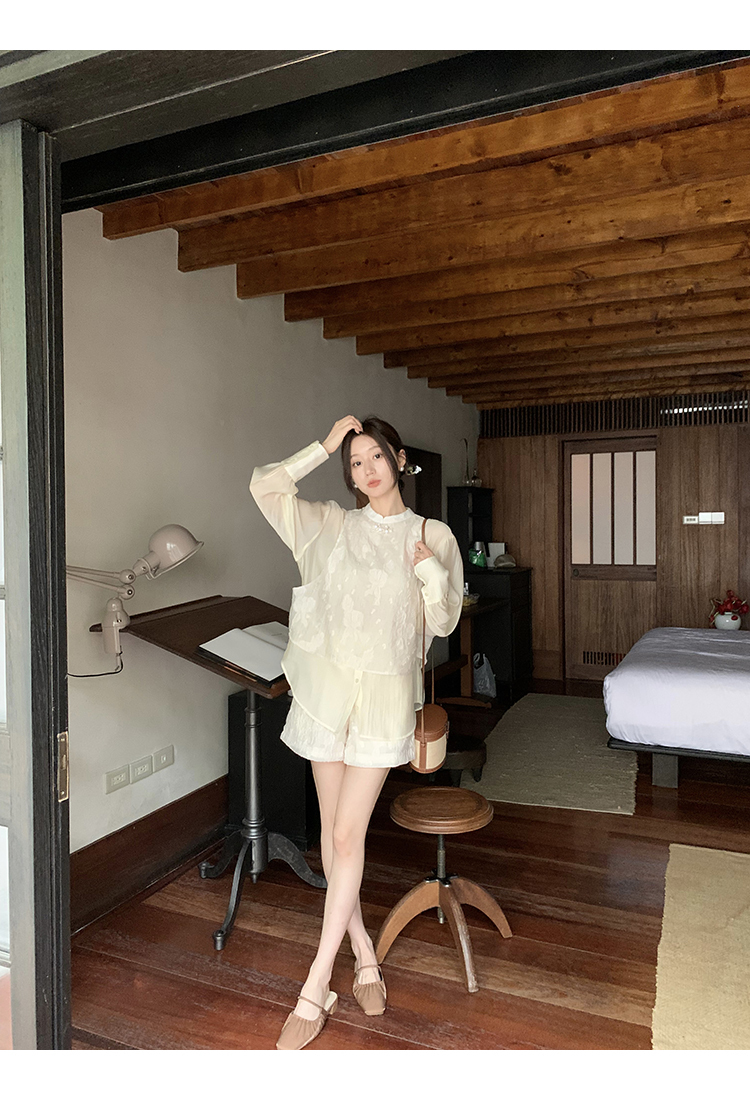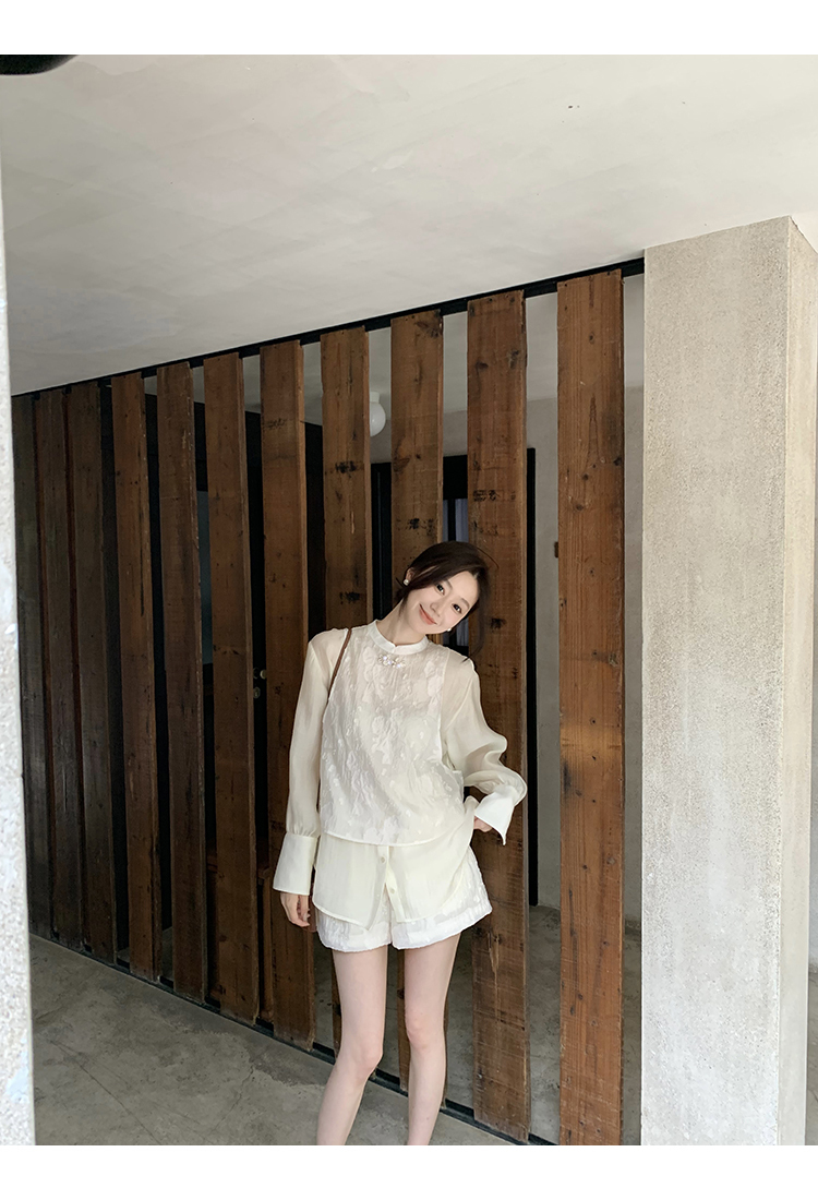 *o-ha-you*【FMQD2041012】月光詩仙女套裝立體剪花|清涼輕盈新中式旗袍領假兩件上衣/短褲
