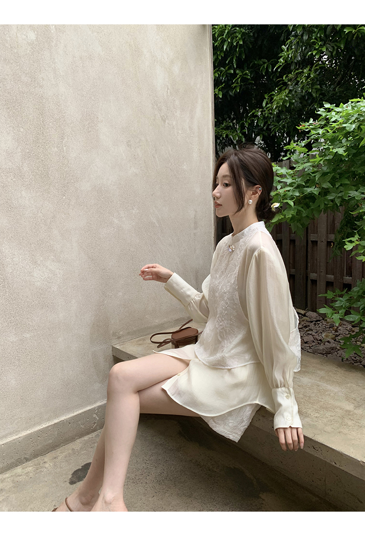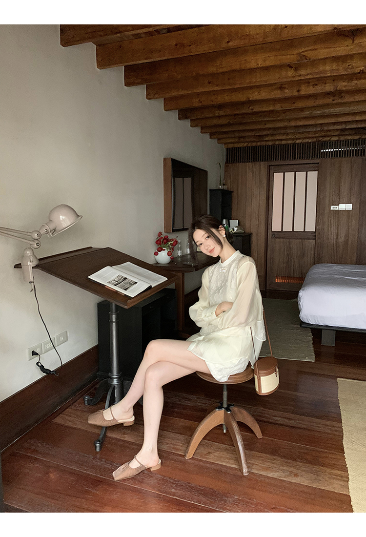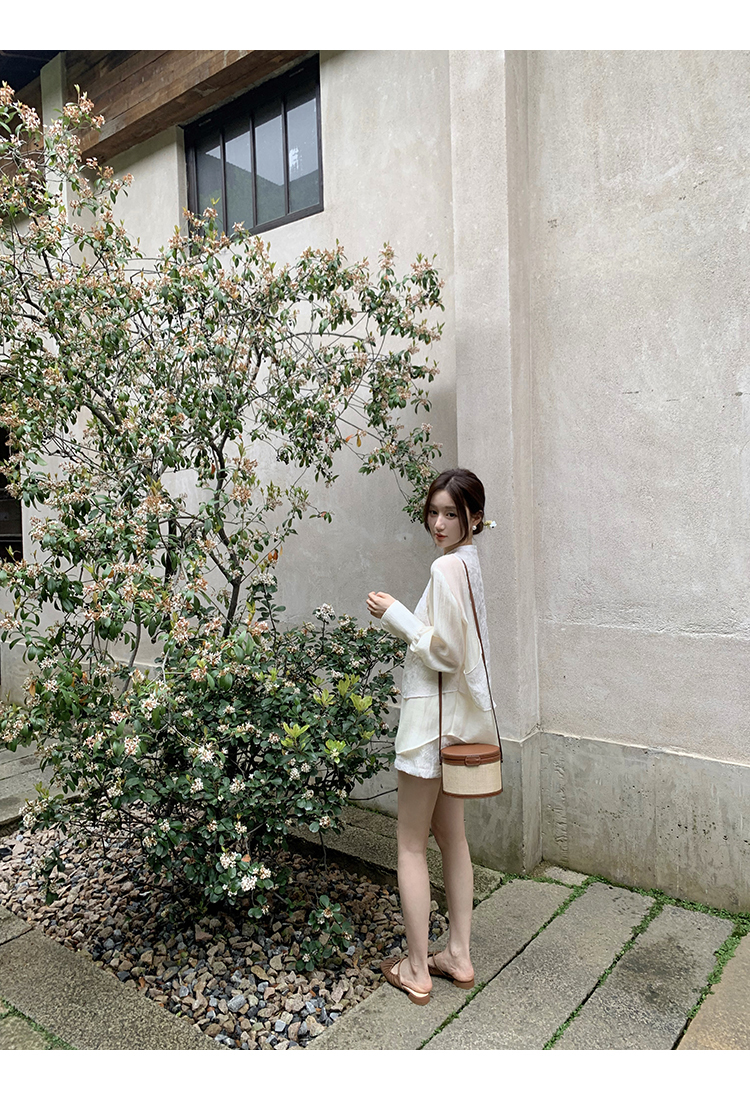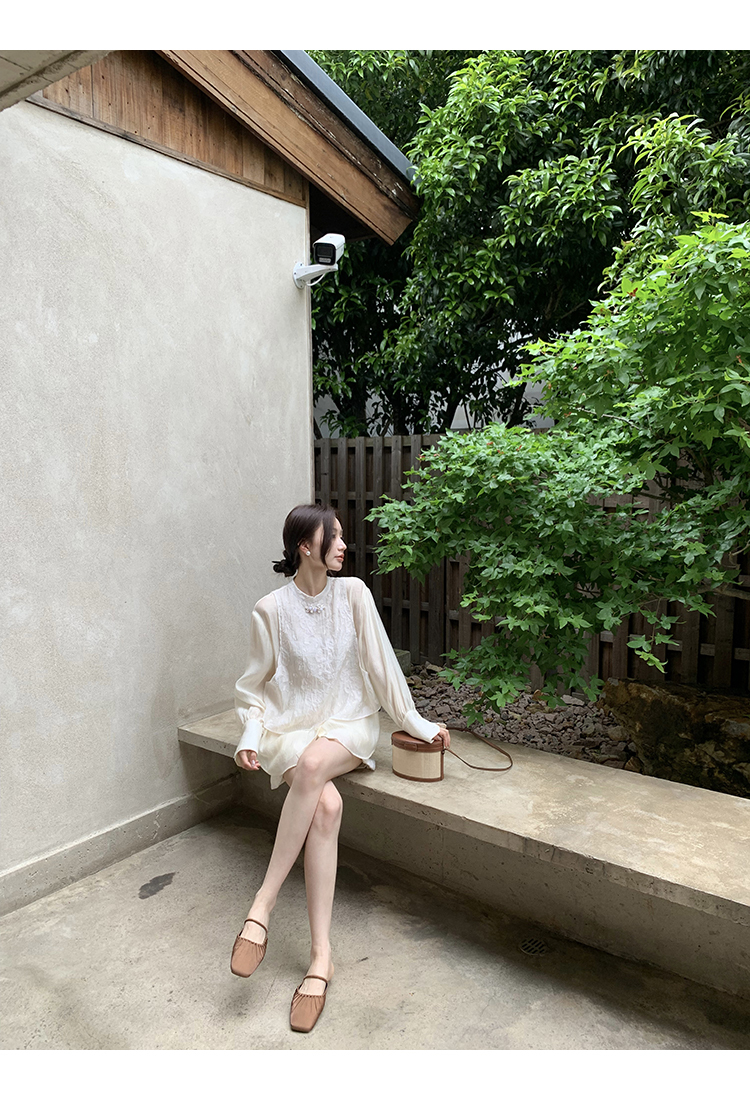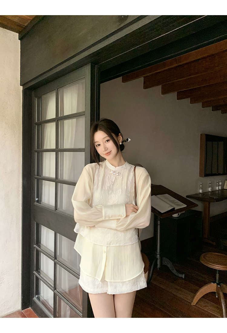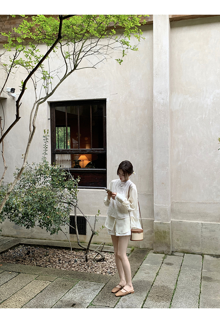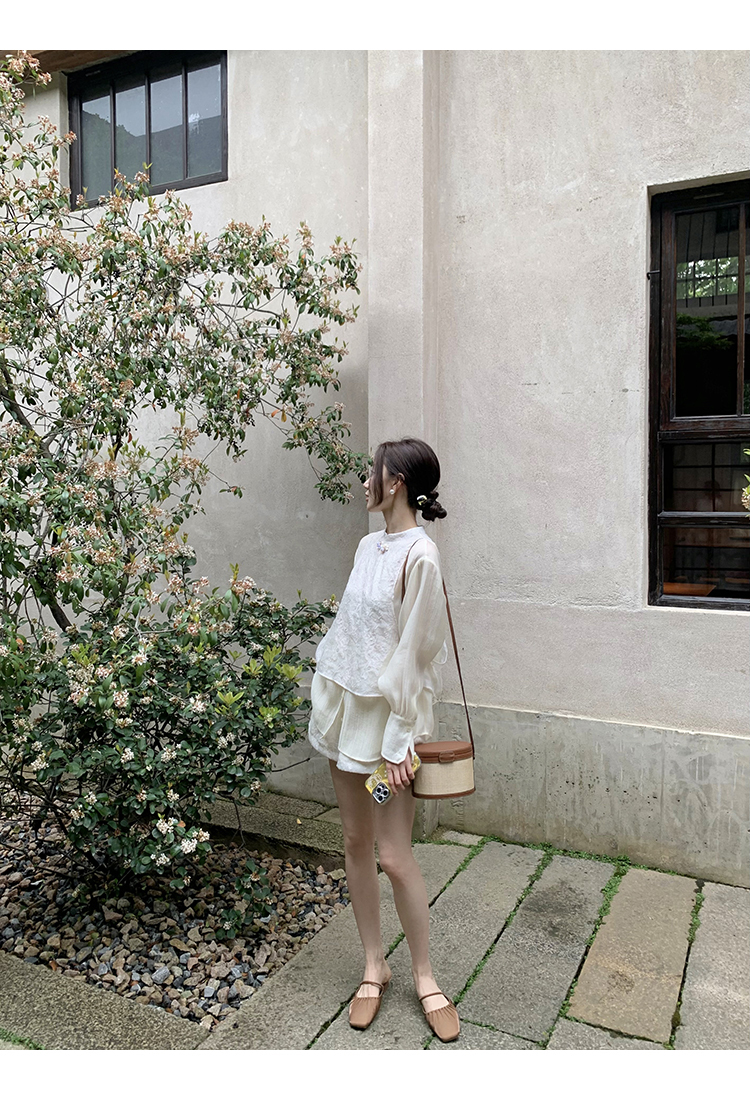 *o-ha-you*【FMQD2041012】月光詩仙女套裝立體剪花|清涼輕盈新中式旗袍領假兩件上衣/短褲