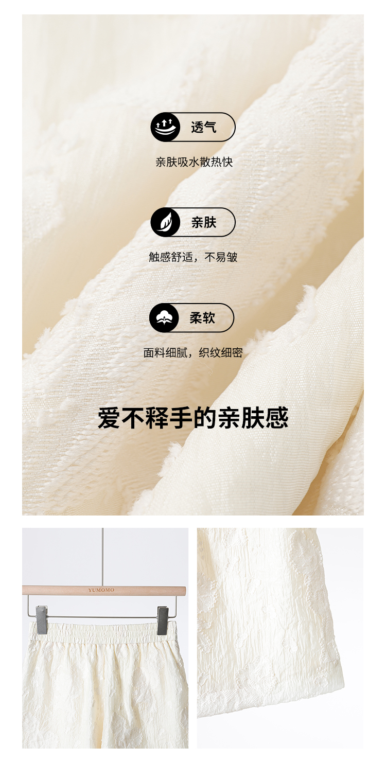 褲子里布採用的雪紡的料子,質地非常輕薄,手感柔軟、涼爽,