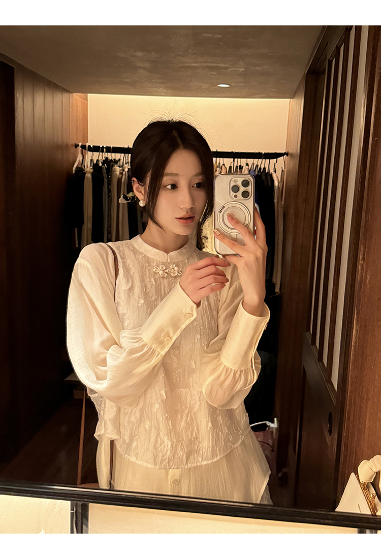 領型設計經典的中式立領,前中有一對搭配重工盤扣