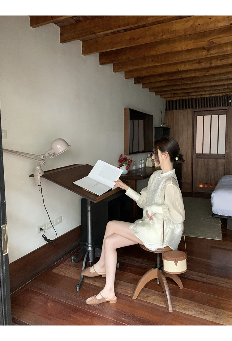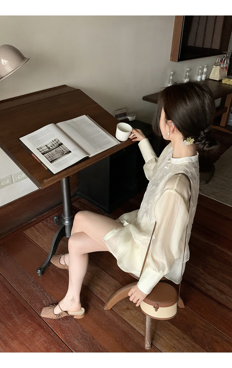 上衣外層馬甲拼接了剪花布料,具有強烈的立體肌理感,