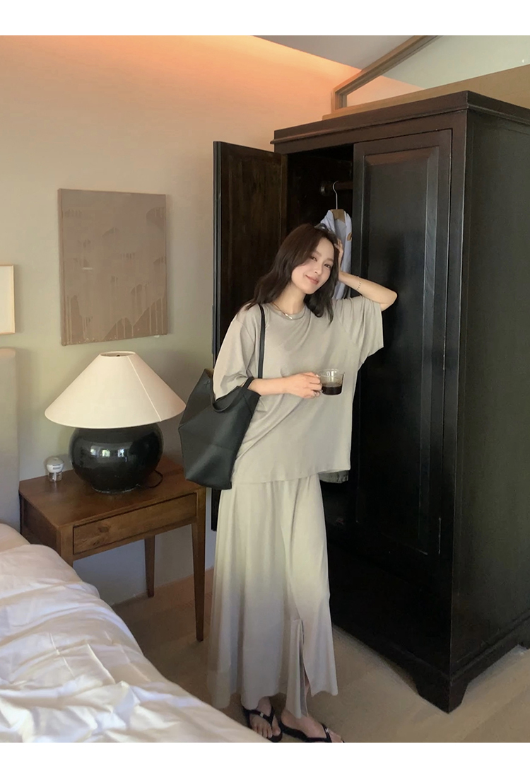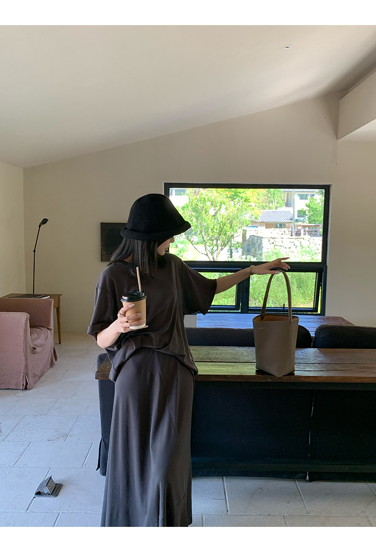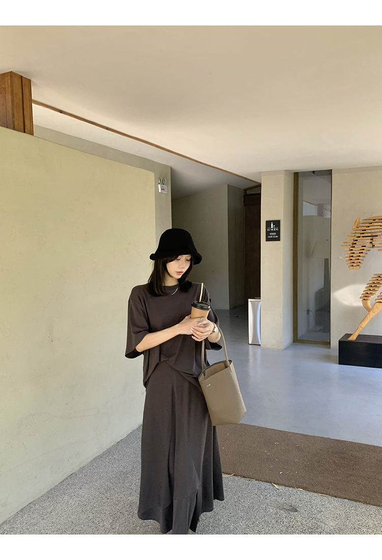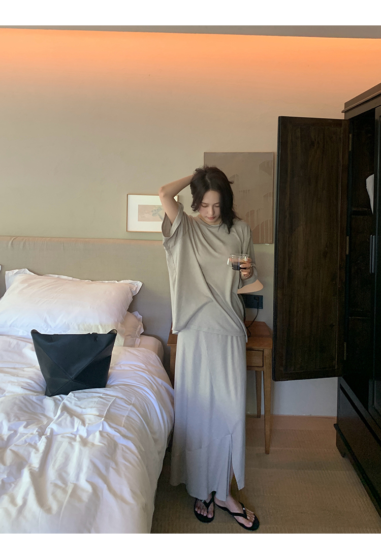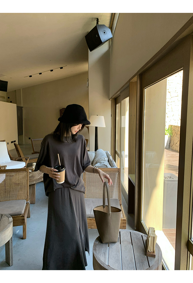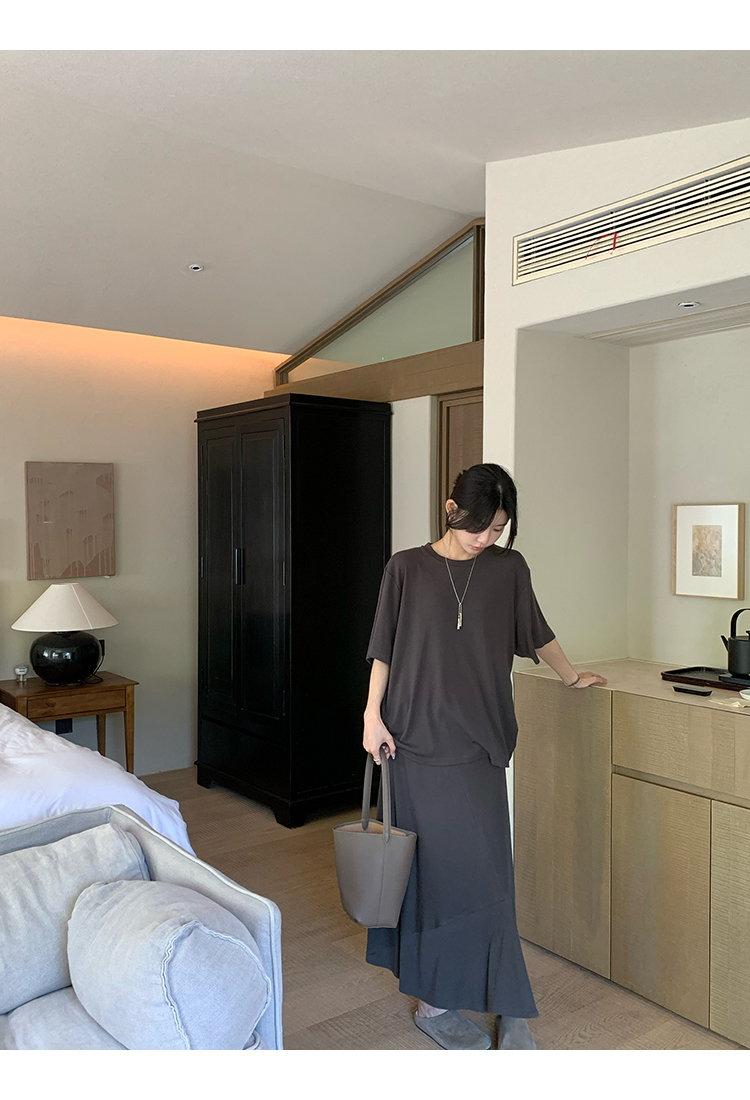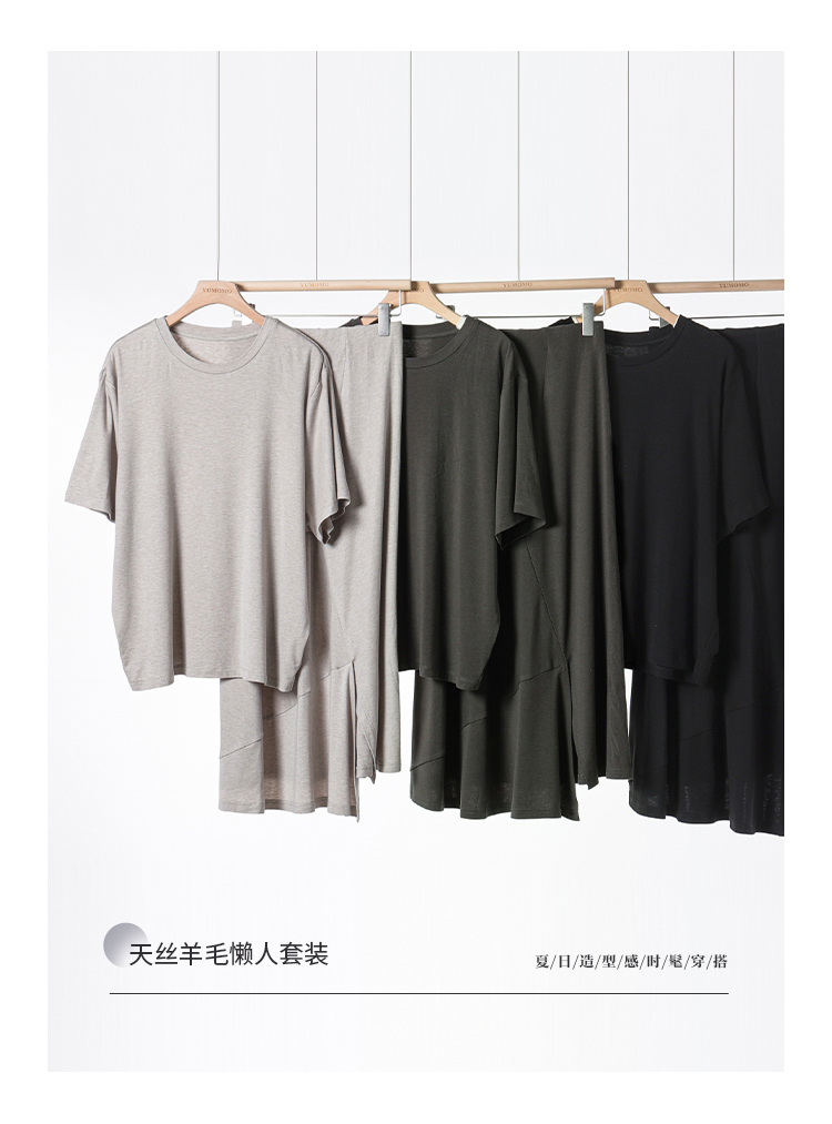 *o-ha-you*【FMQD2041039】慵懶姊姊vibe-天絲羊毛套裝 雲感爽滑親膚 T恤/半裙