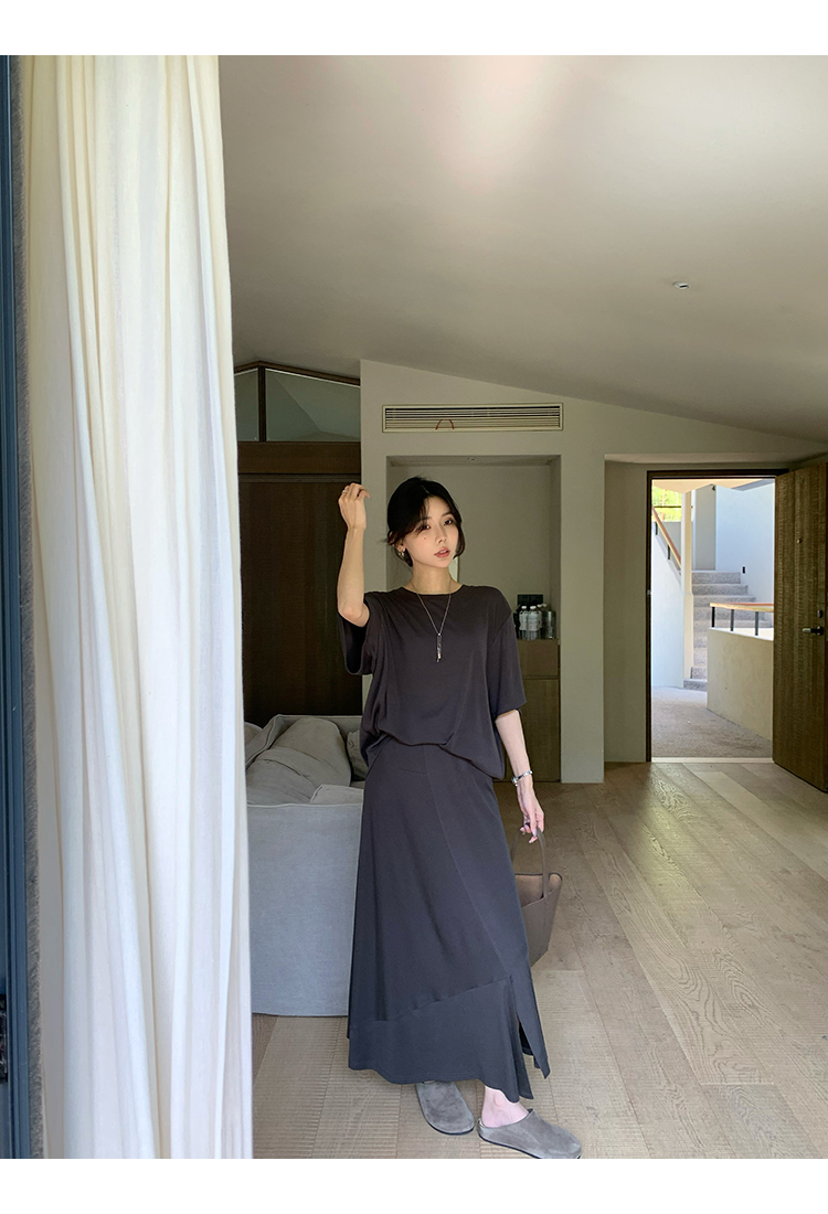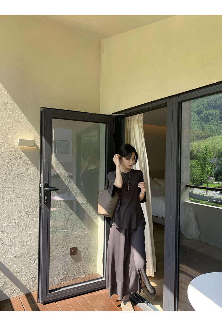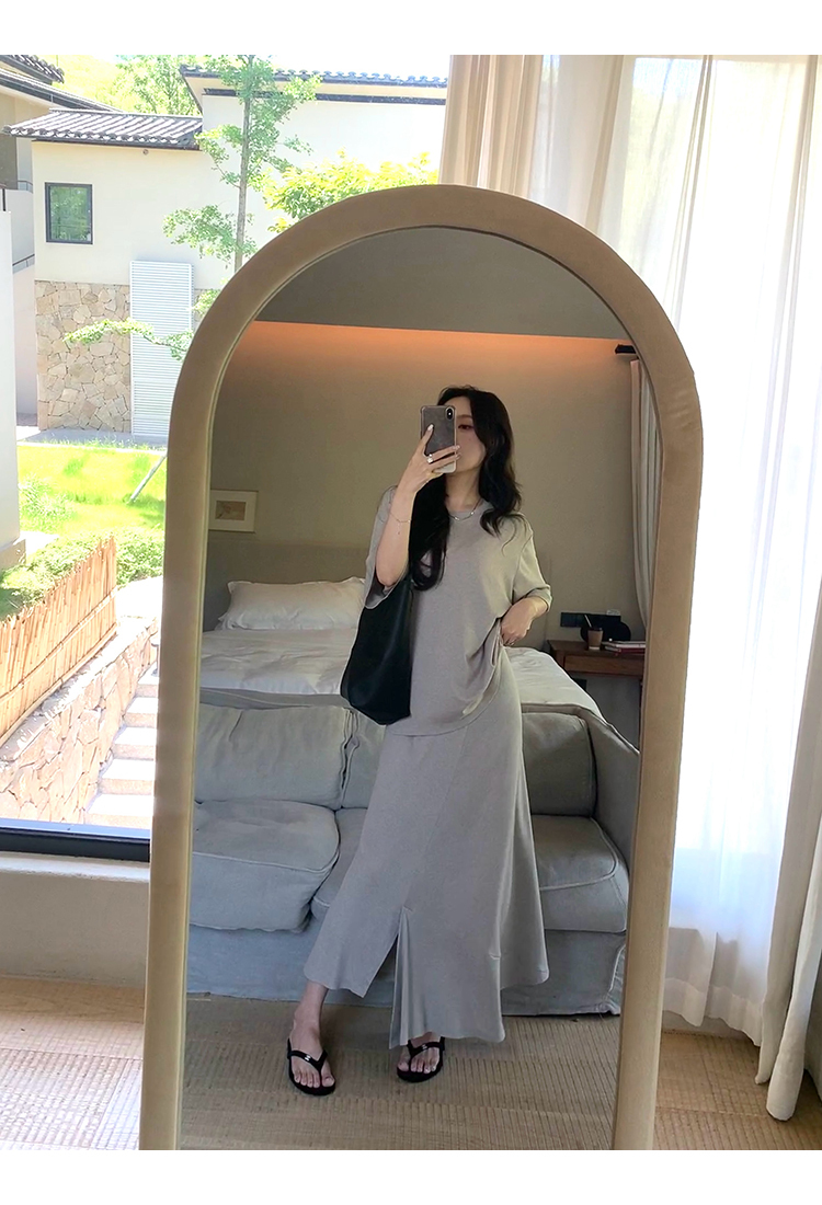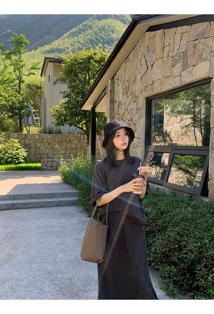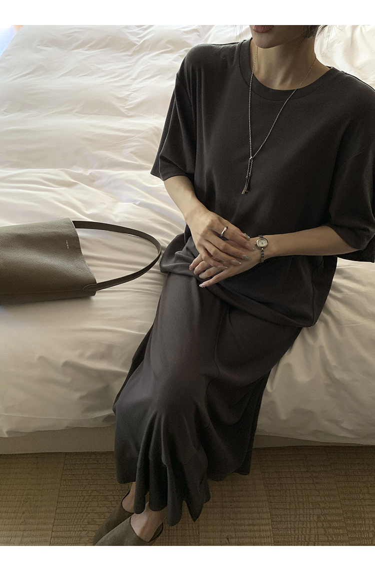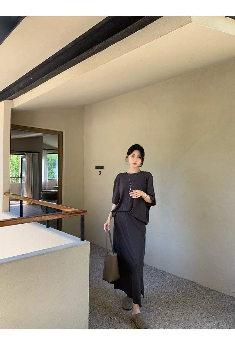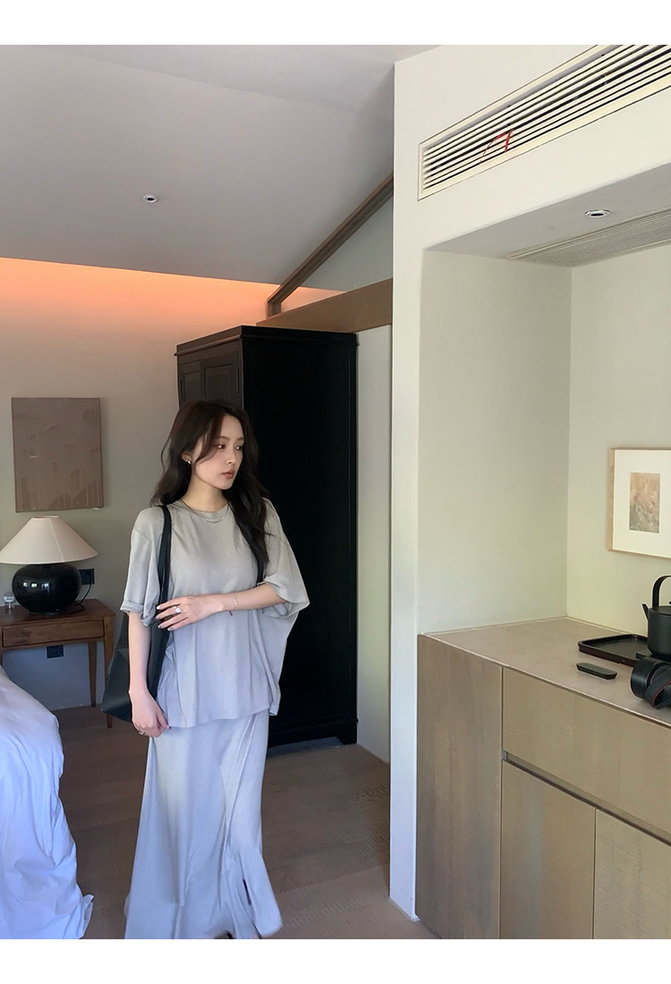 *o-ha-you*【FMQD2041039】慵懶姊姊vibe-天絲羊毛套裝 雲感爽滑親膚 T恤/半裙