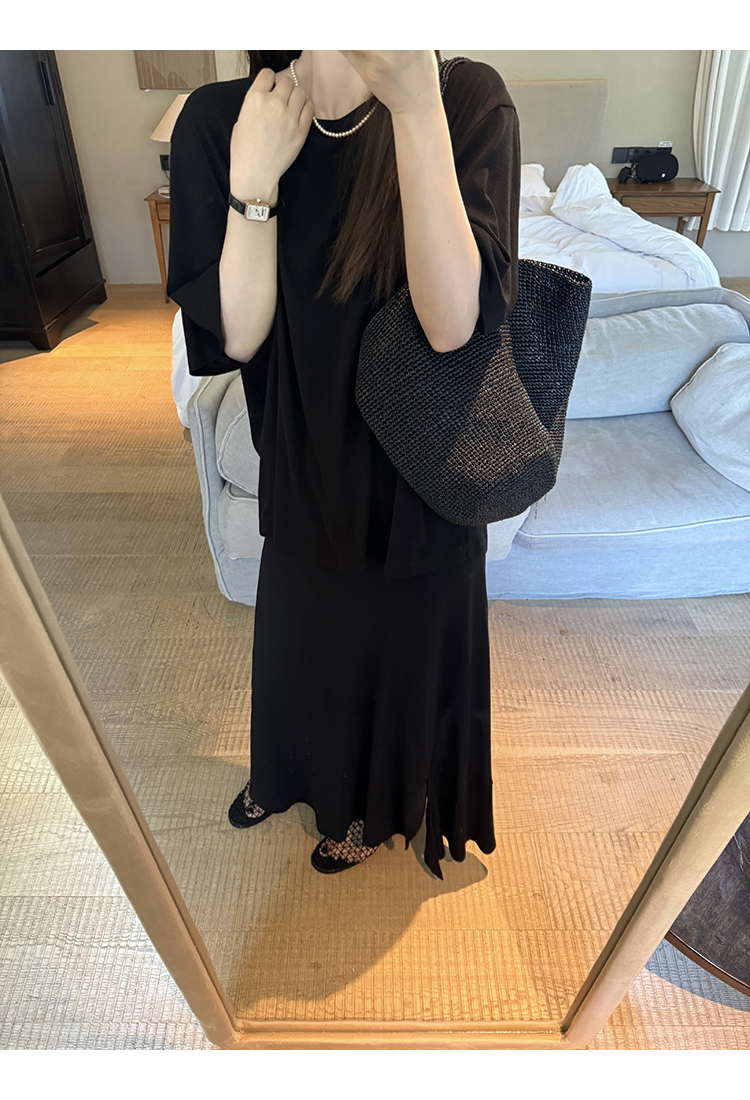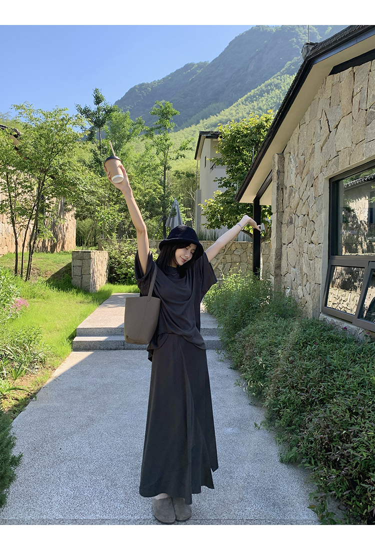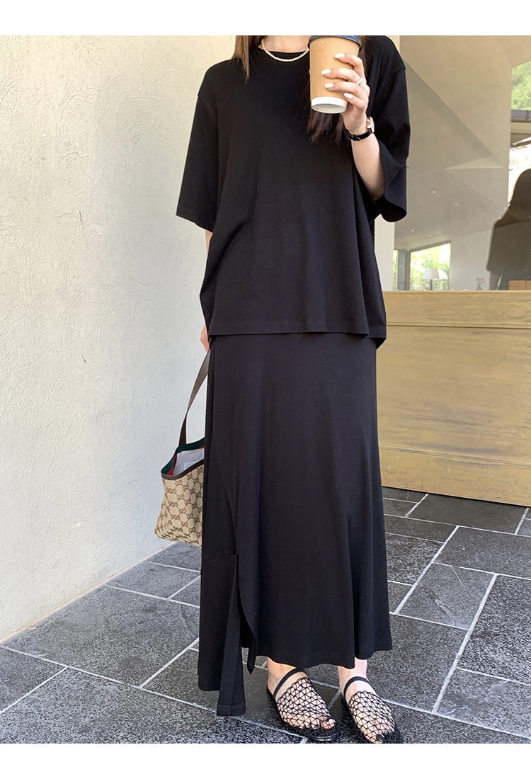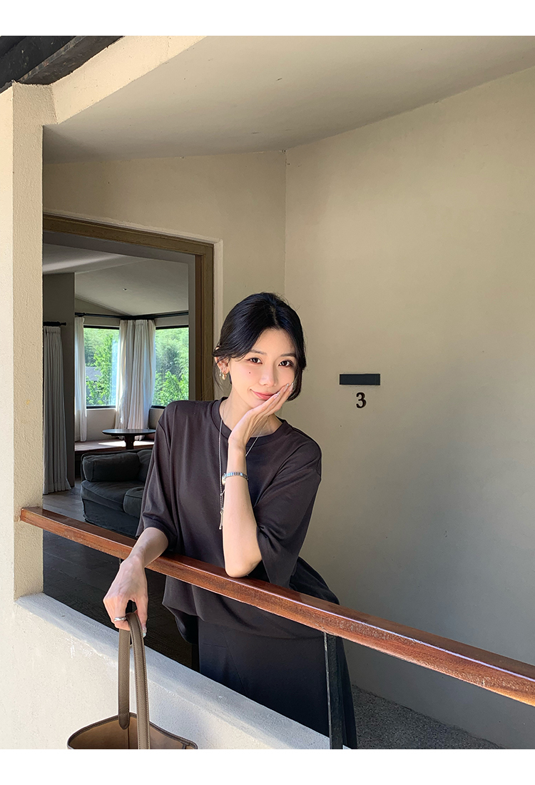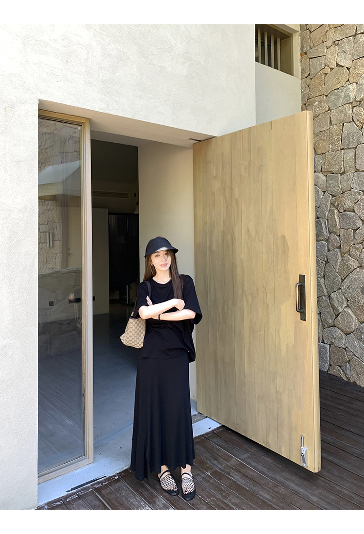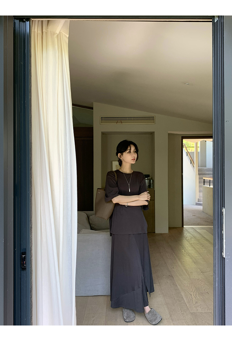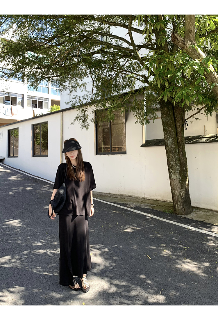 *o-ha-you*【FMQD2041039】慵懶姊姊vibe-天絲羊毛套裝 雲感爽滑親膚 T恤/半裙