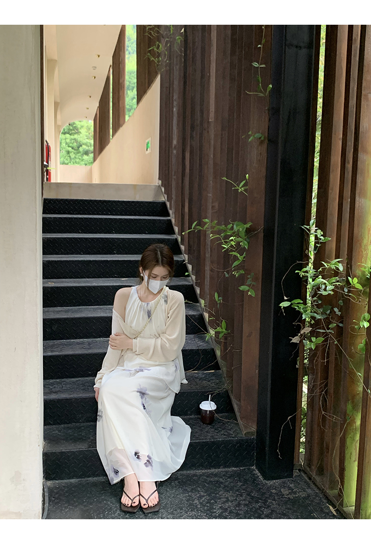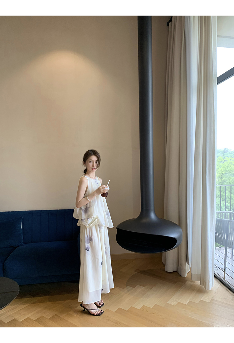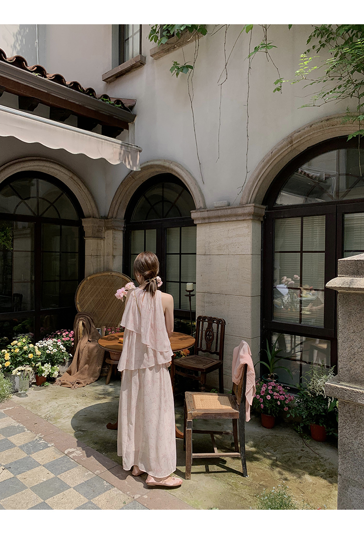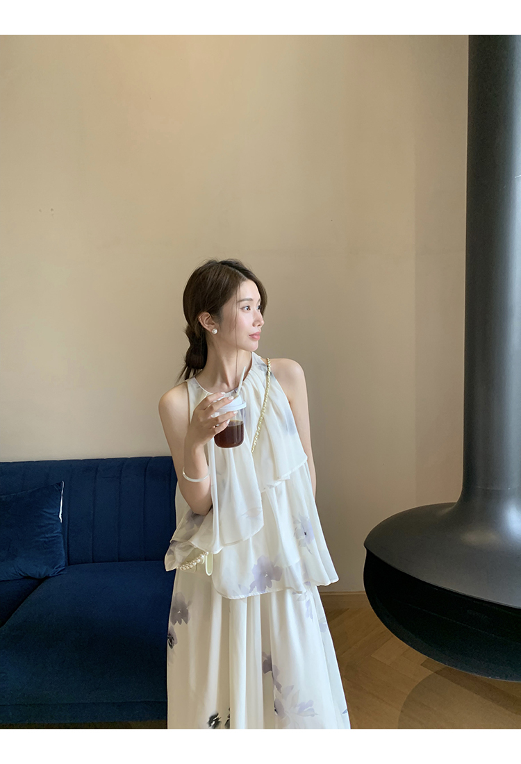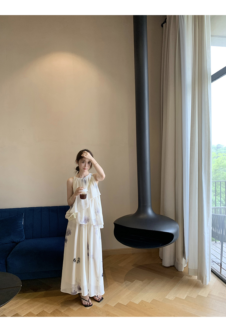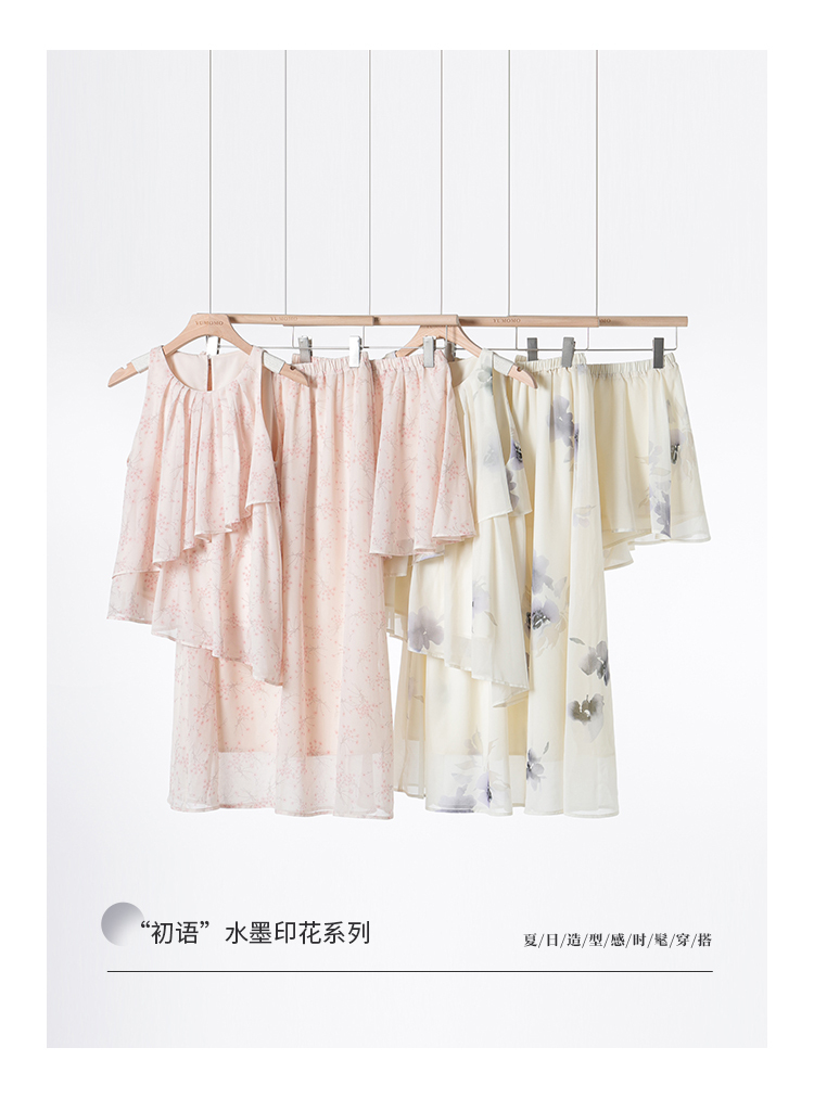 *o-ha-you*【FMQD2042007】「初語」水墨印花連衣裙溫柔套裝白月光掛脖上衣/短裙褲/中長半裙/洋裝