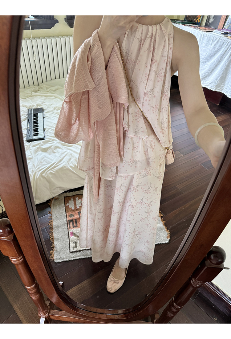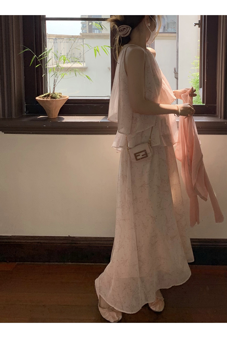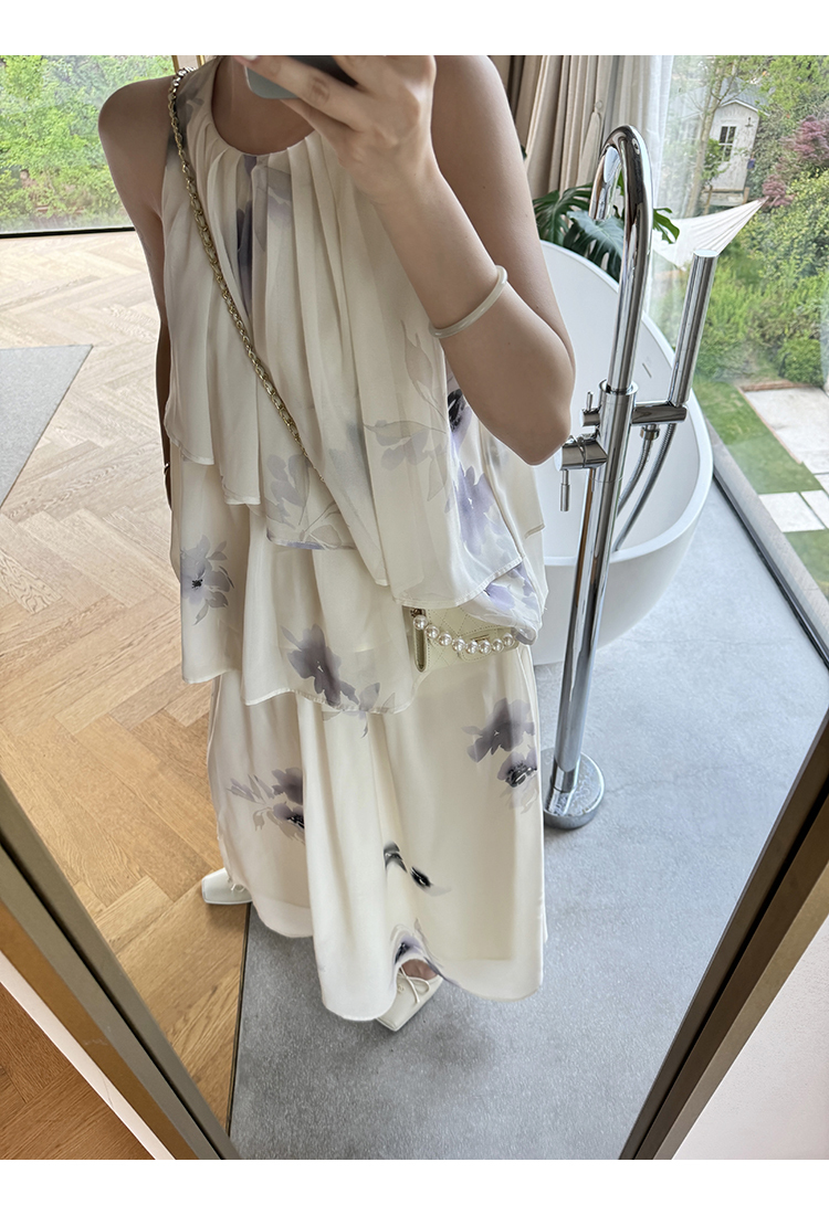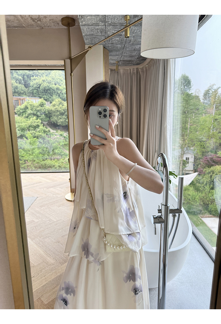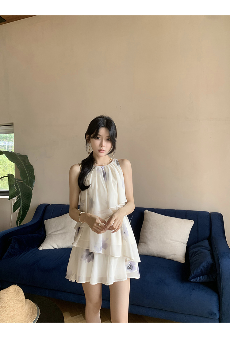 *o-ha-you*【FMQD2042007】「初語」水墨印花連衣裙溫柔套裝白月光掛脖上衣/短裙褲/中長半裙/洋裝