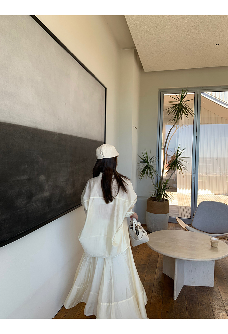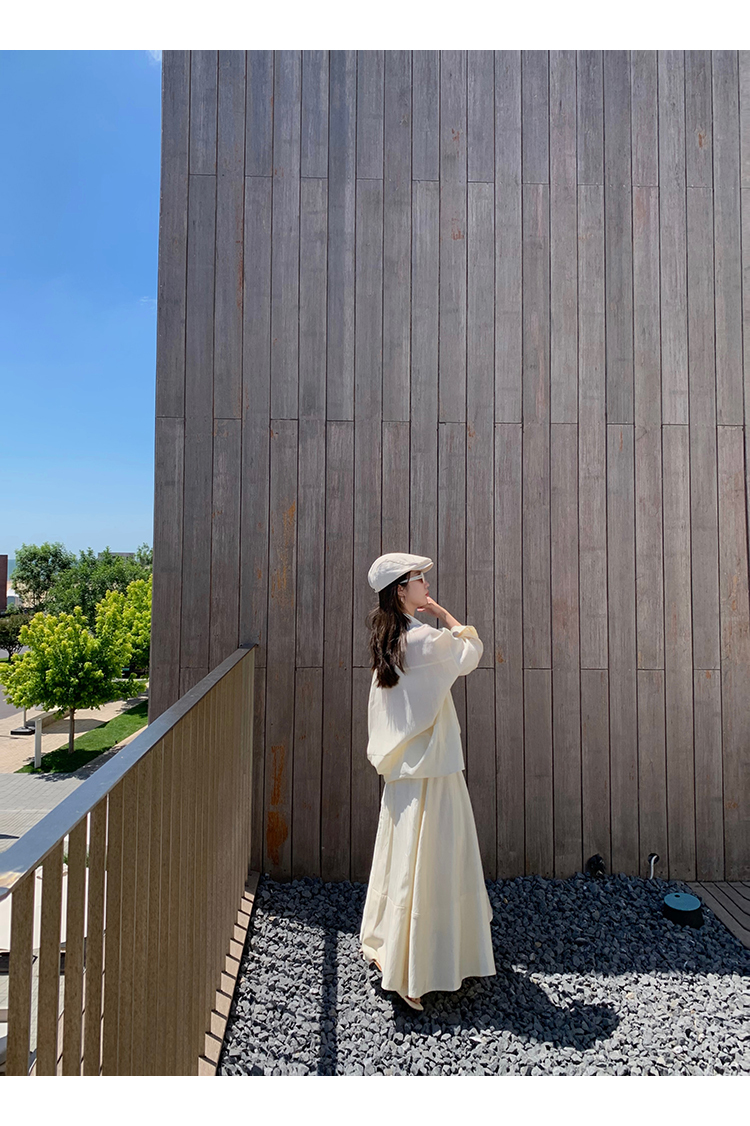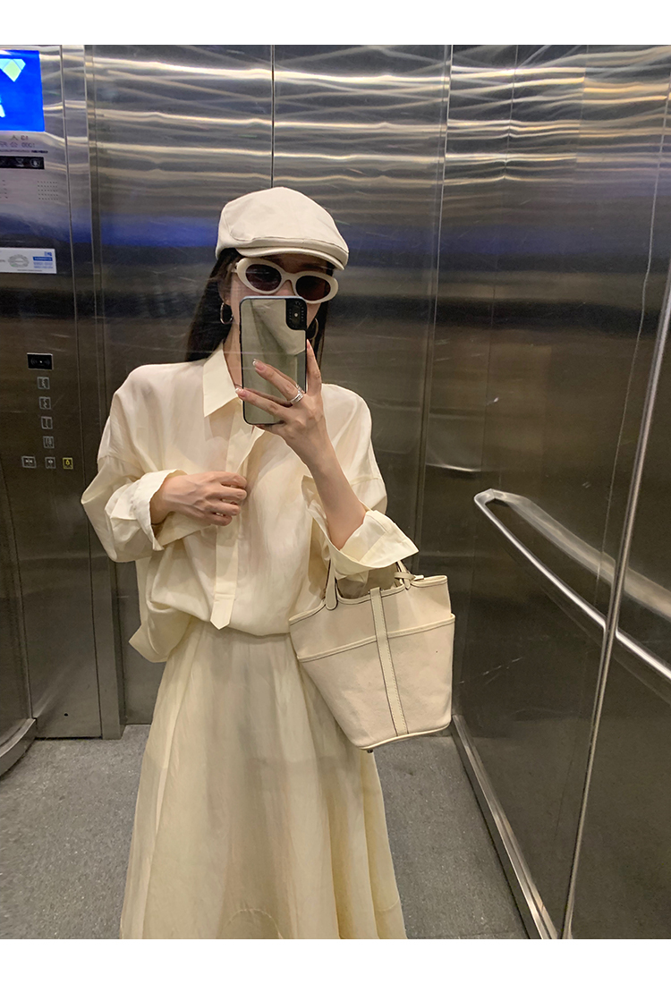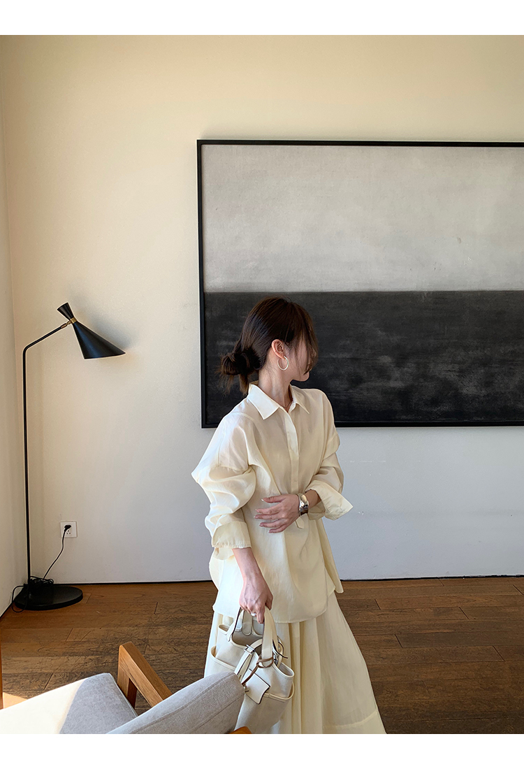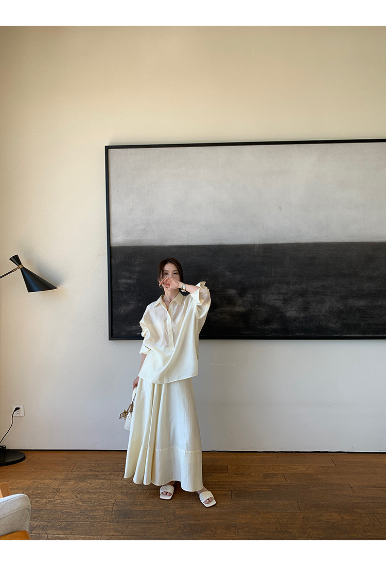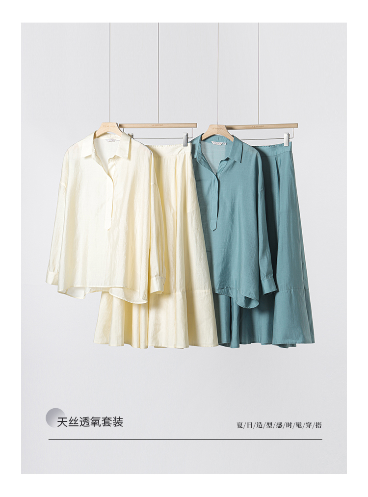 *o-ha-you*【FMQD2042032】天絲透氧套裝大用料輕盈透氣清涼防嗮寬鬆套頭襯衫/A字長半裙-2色