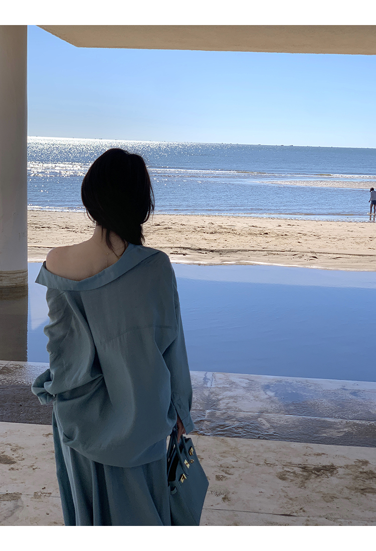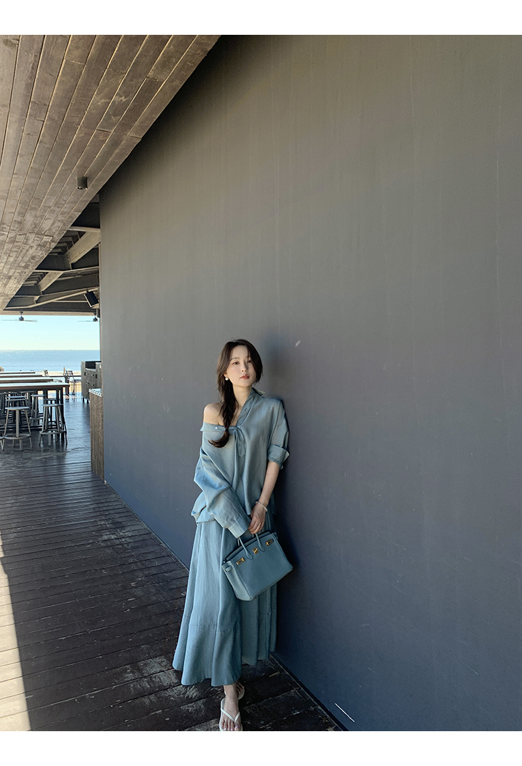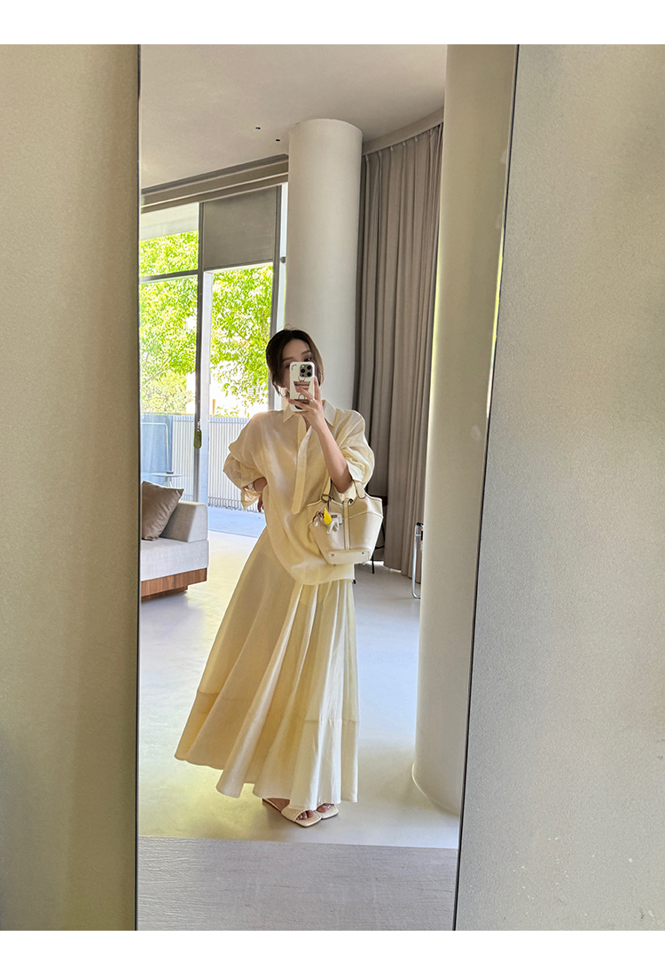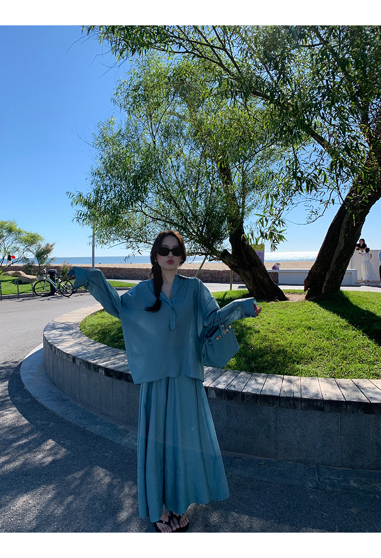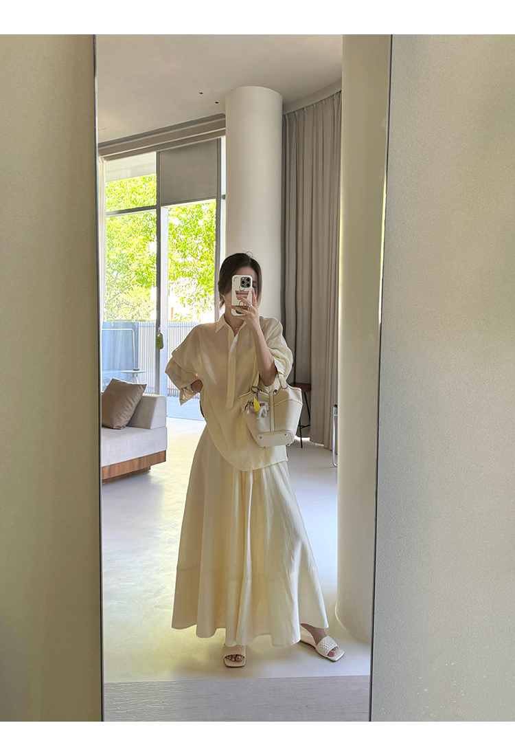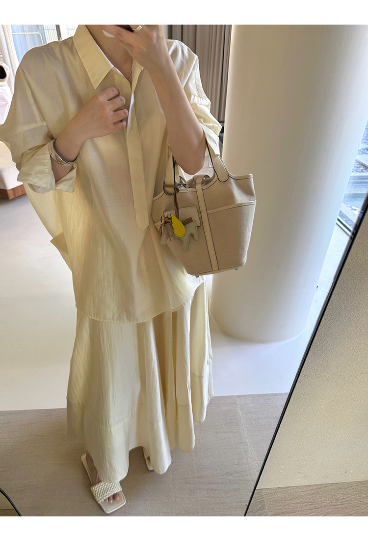 *o-ha-you*【FMQD2042032】天絲透氧套裝大用料輕盈透氣清涼防嗮寬鬆套頭襯衫/A字長半裙-2色