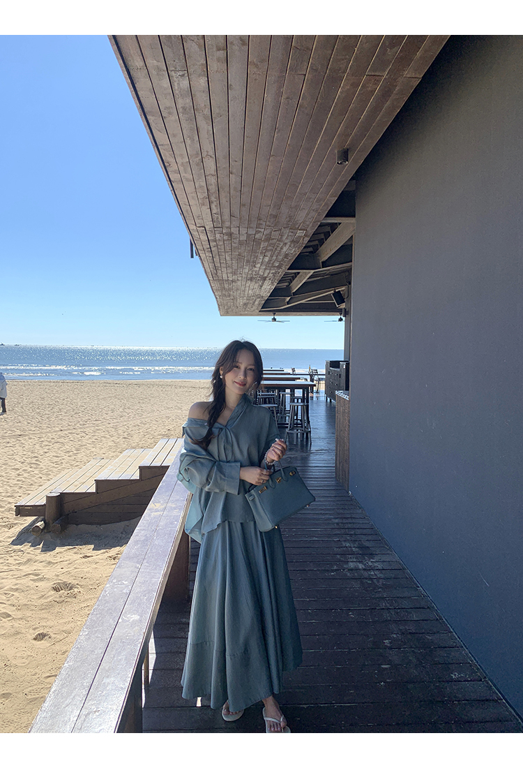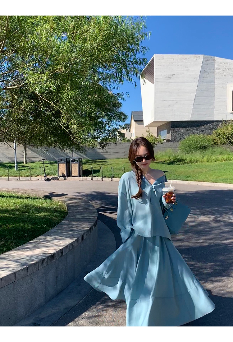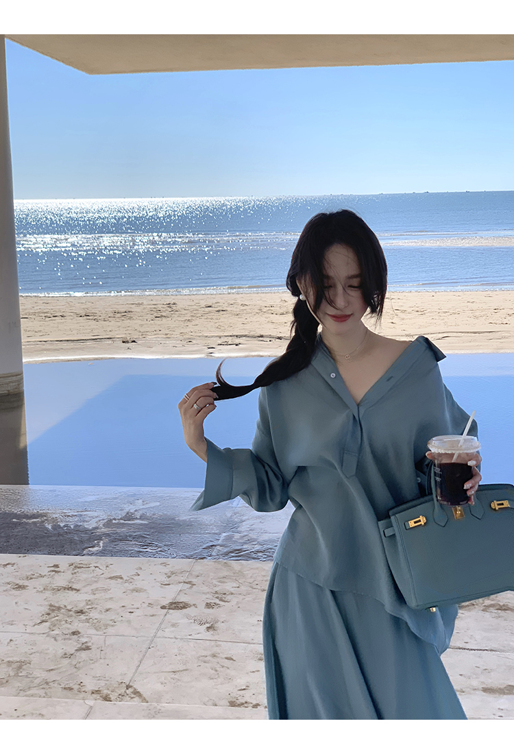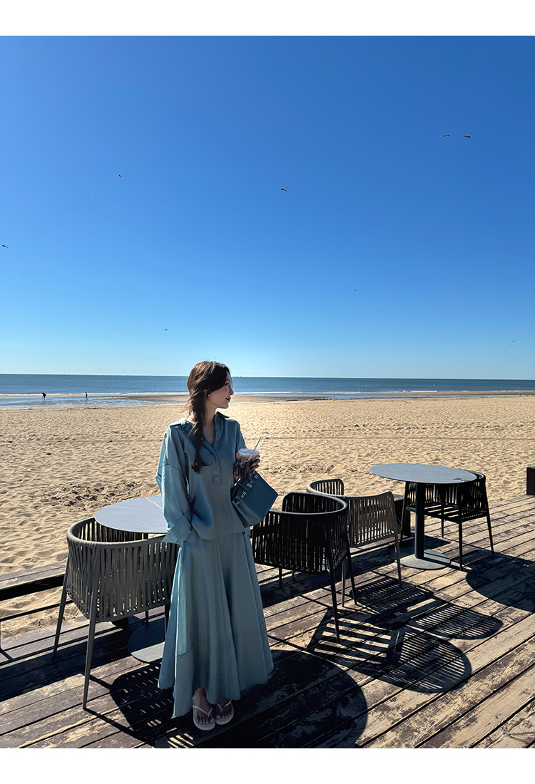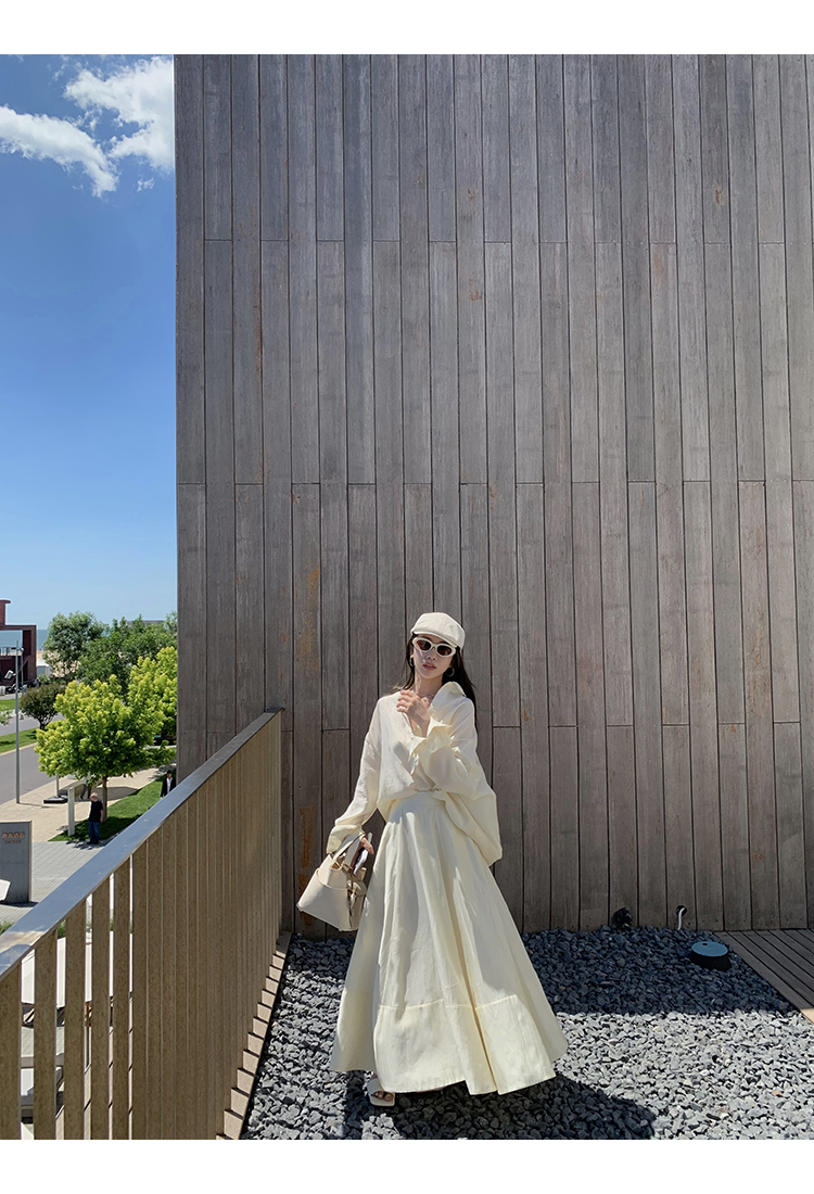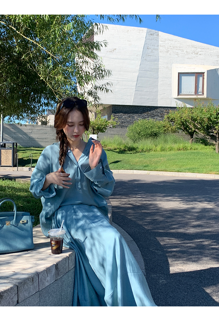 *o-ha-you*【FMQD2042032】天絲透氧套裝大用料輕盈透氣清涼防嗮寬鬆套頭襯衫/A字長半裙-2色