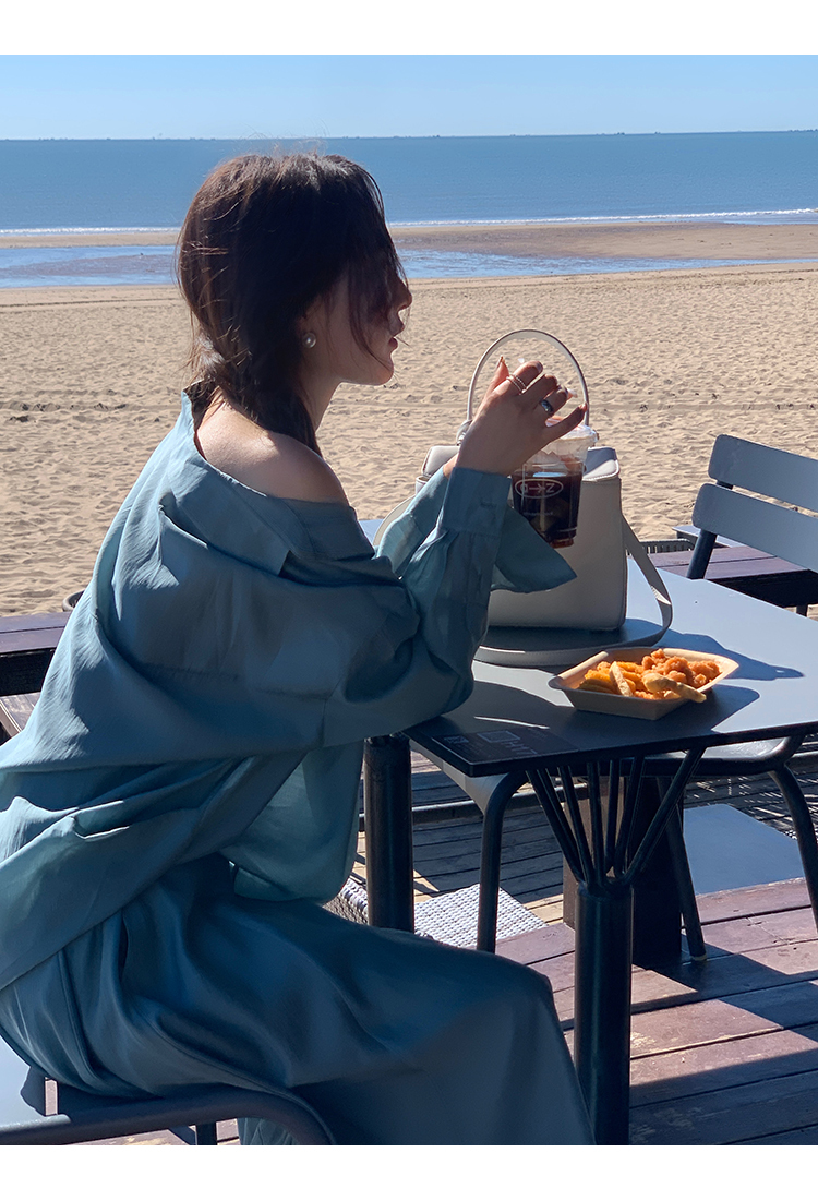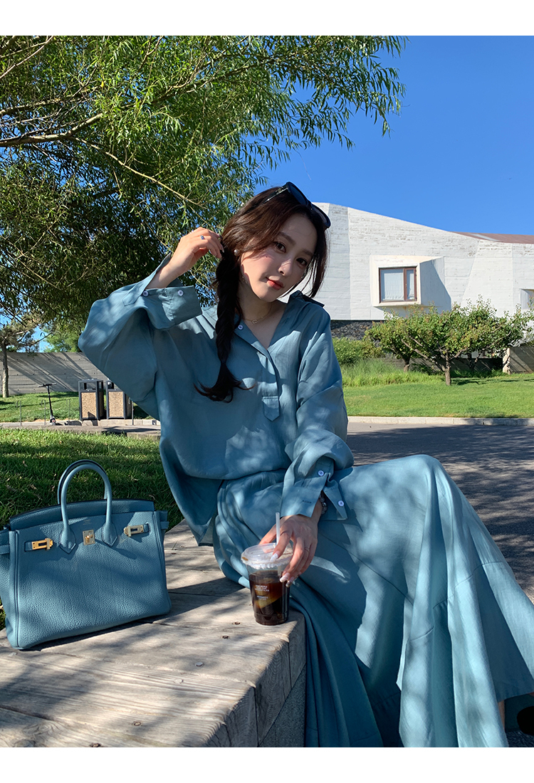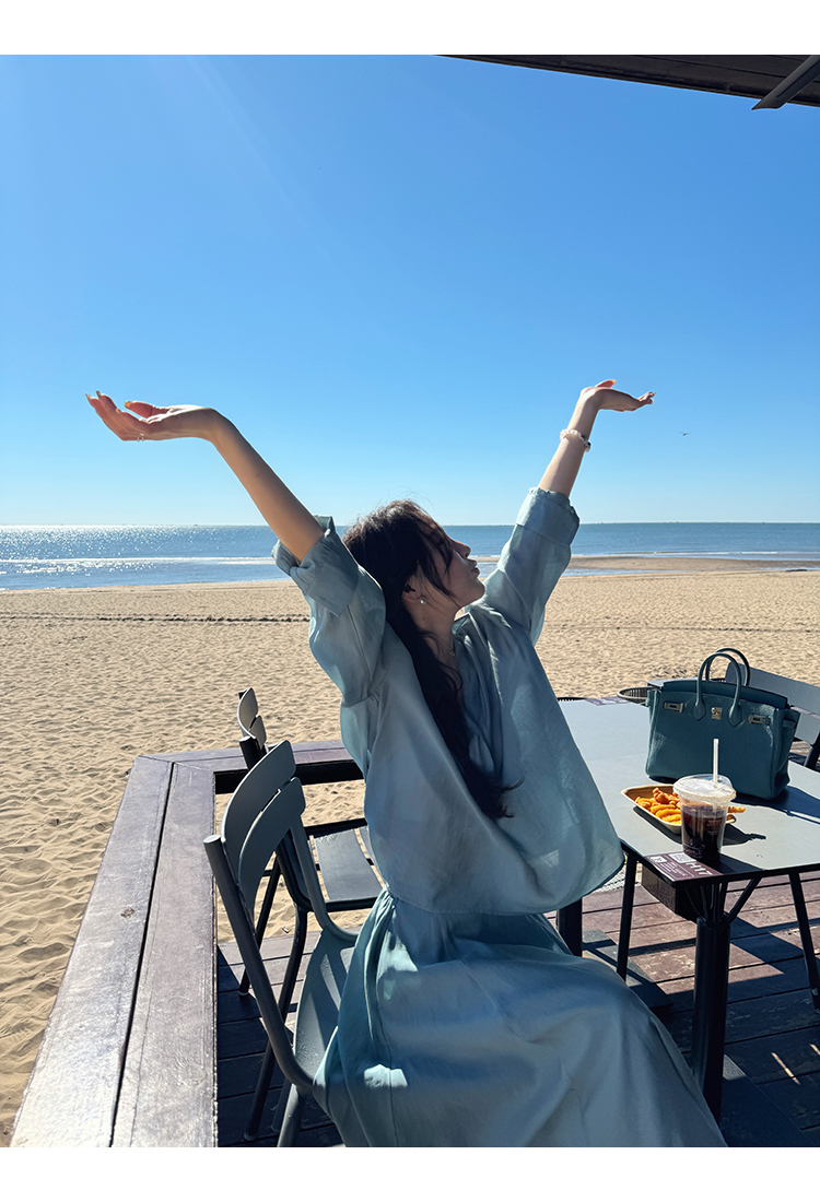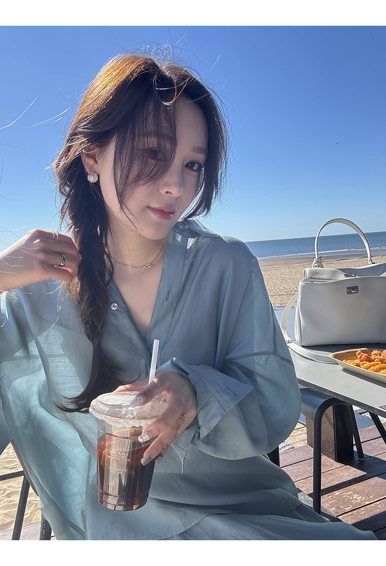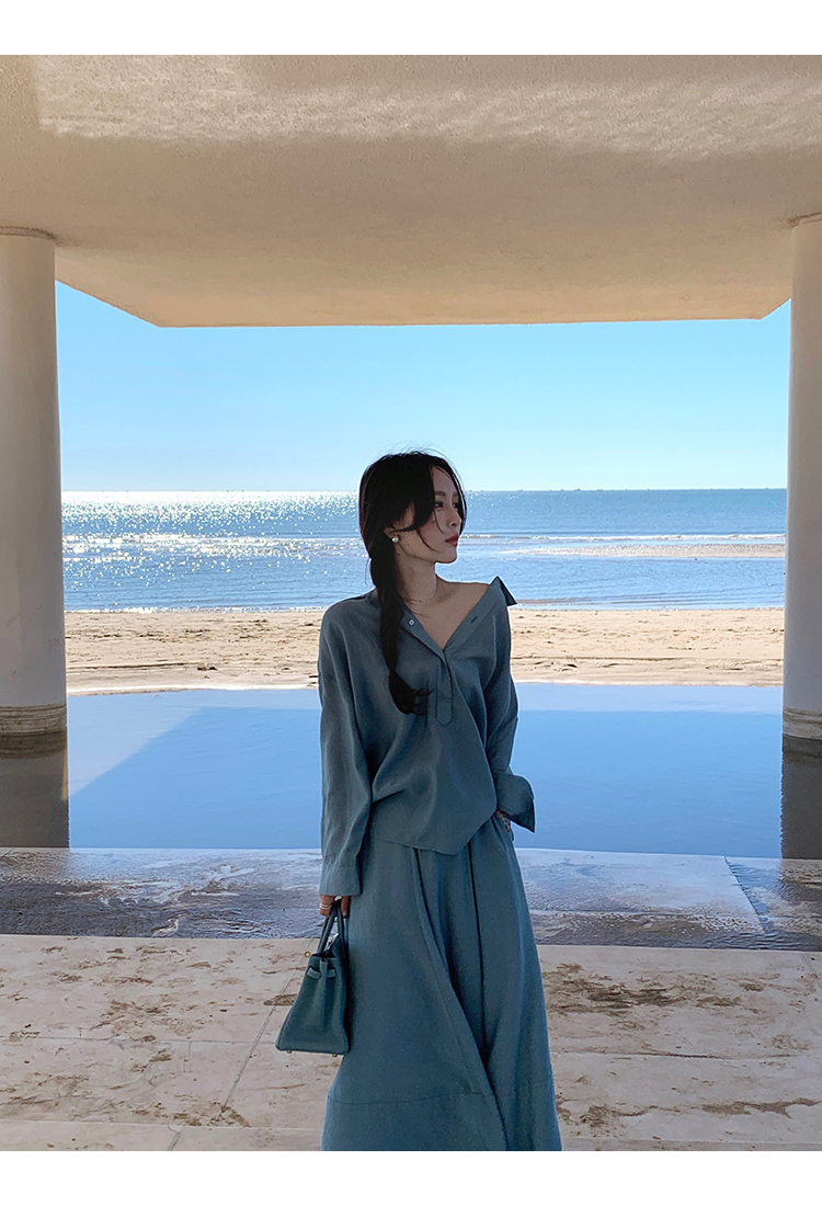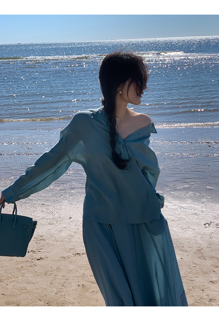 *o-ha-you*【FMQD2042032】天絲透氧套裝大用料輕盈透氣清涼防嗮寬鬆套頭襯衫/A字長半裙-2色