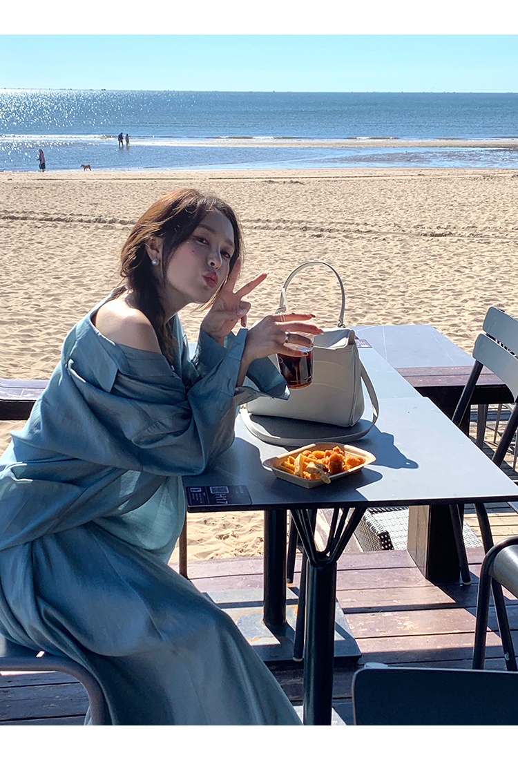 下擺設計前短後長的下擺設計,視覺上拉長身形,塑造莞美比例
