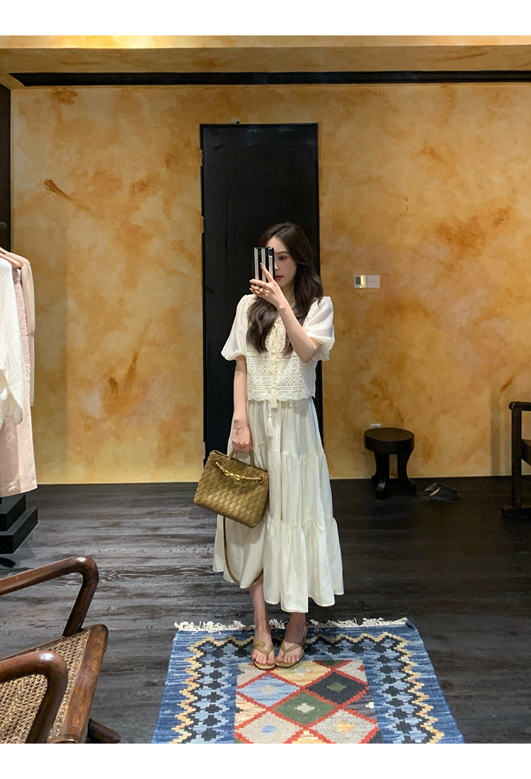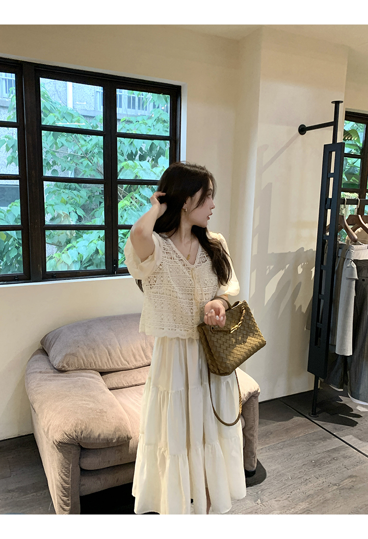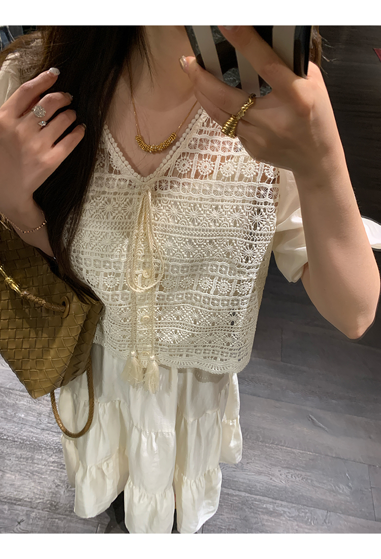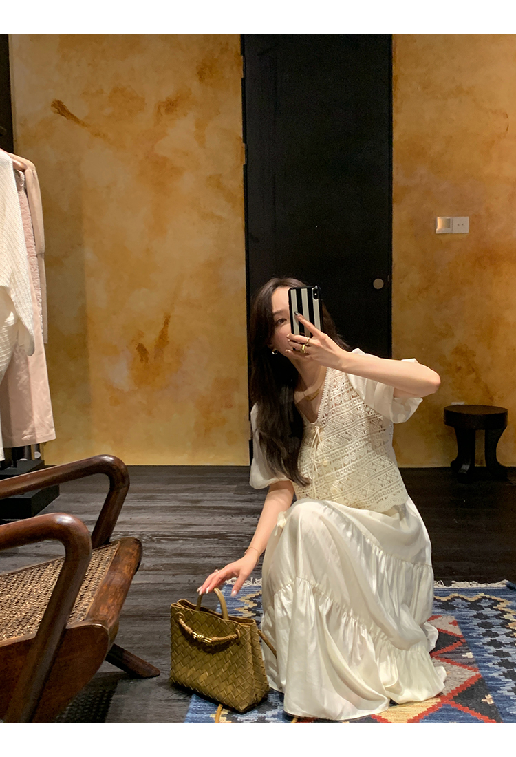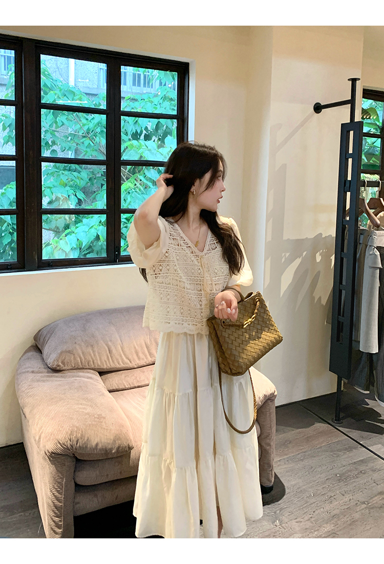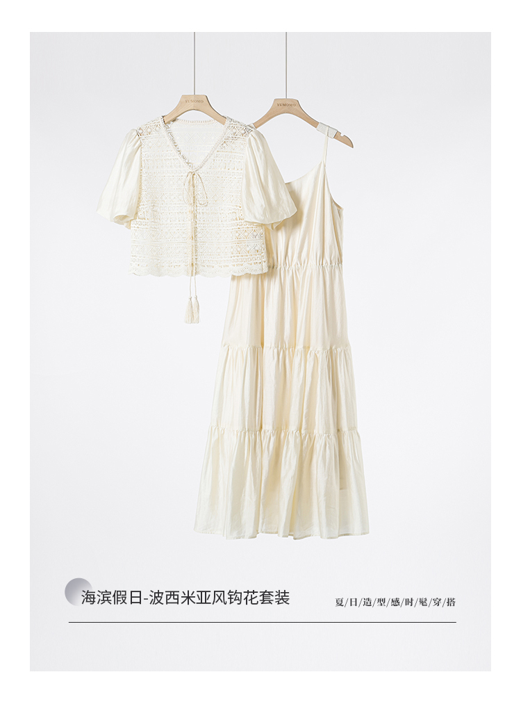 *o-ha-you*【FMQD2042033】海濱假日-波西米亞風鉤花套裝鏤空上衣/天絲吊帶裙洋裝