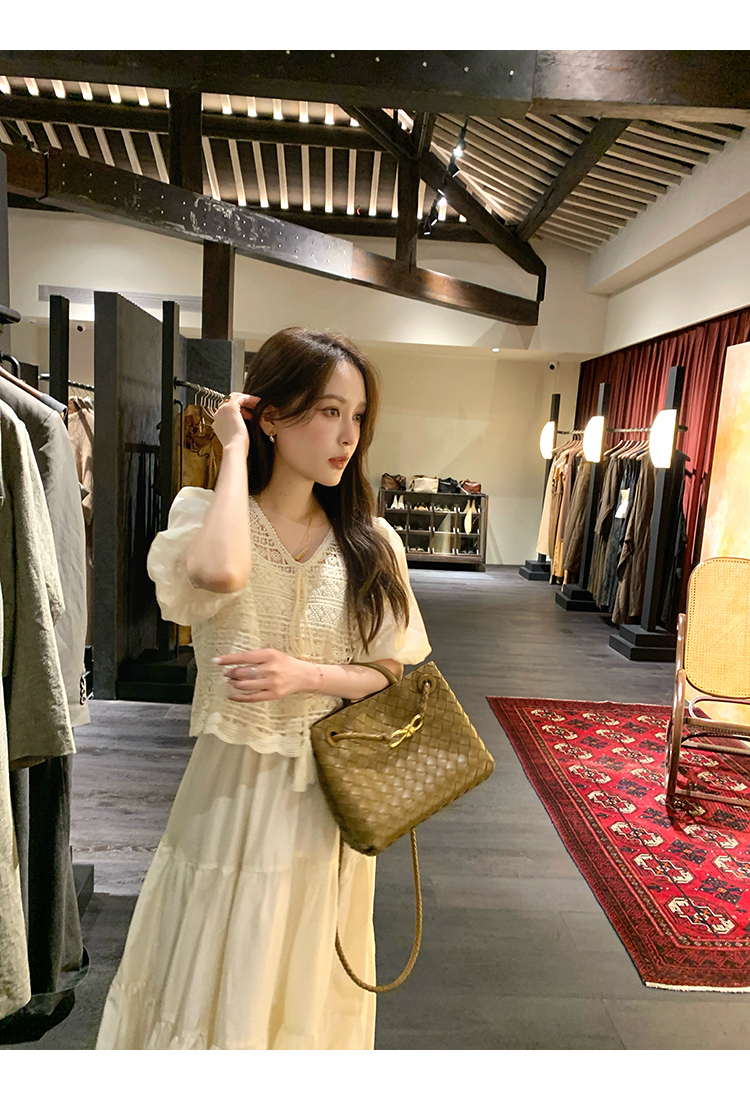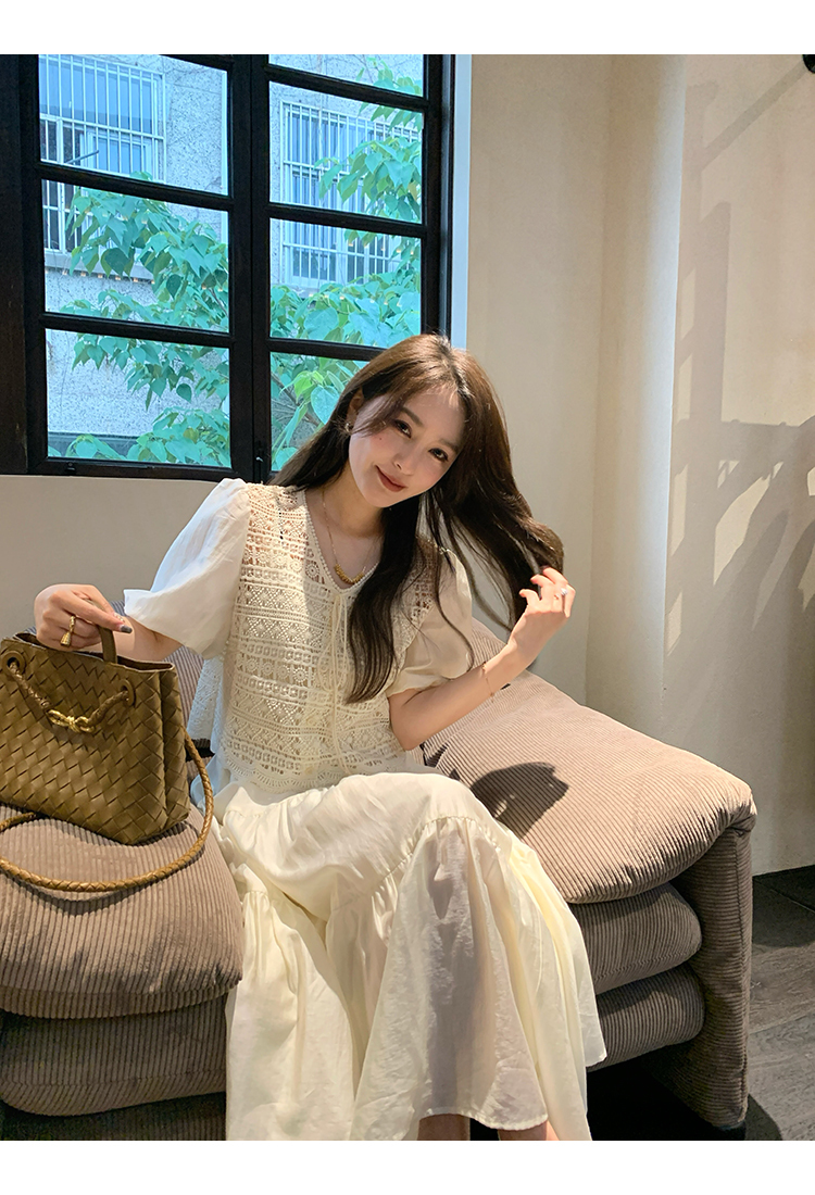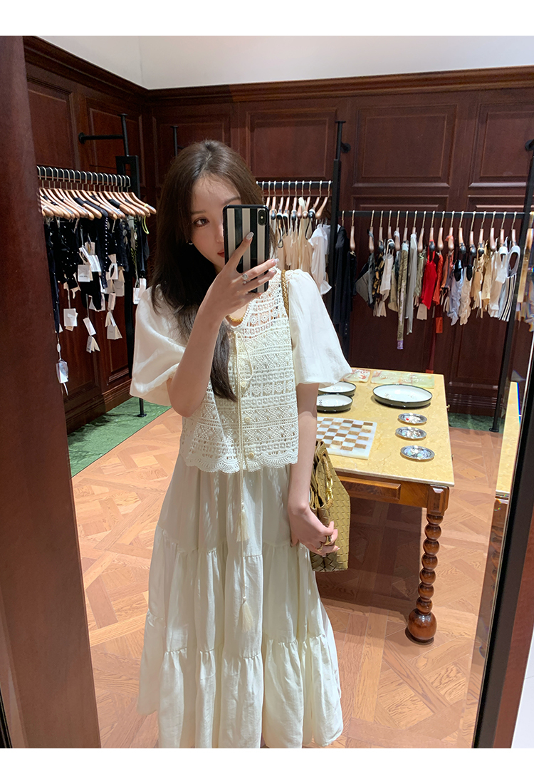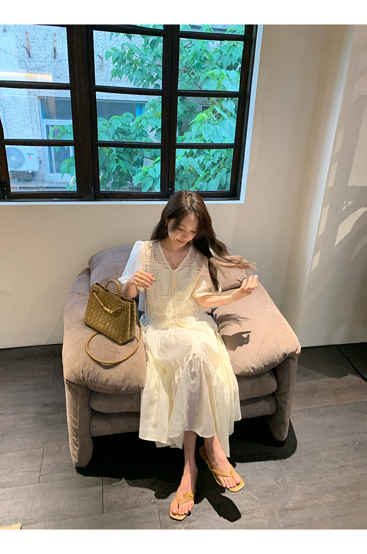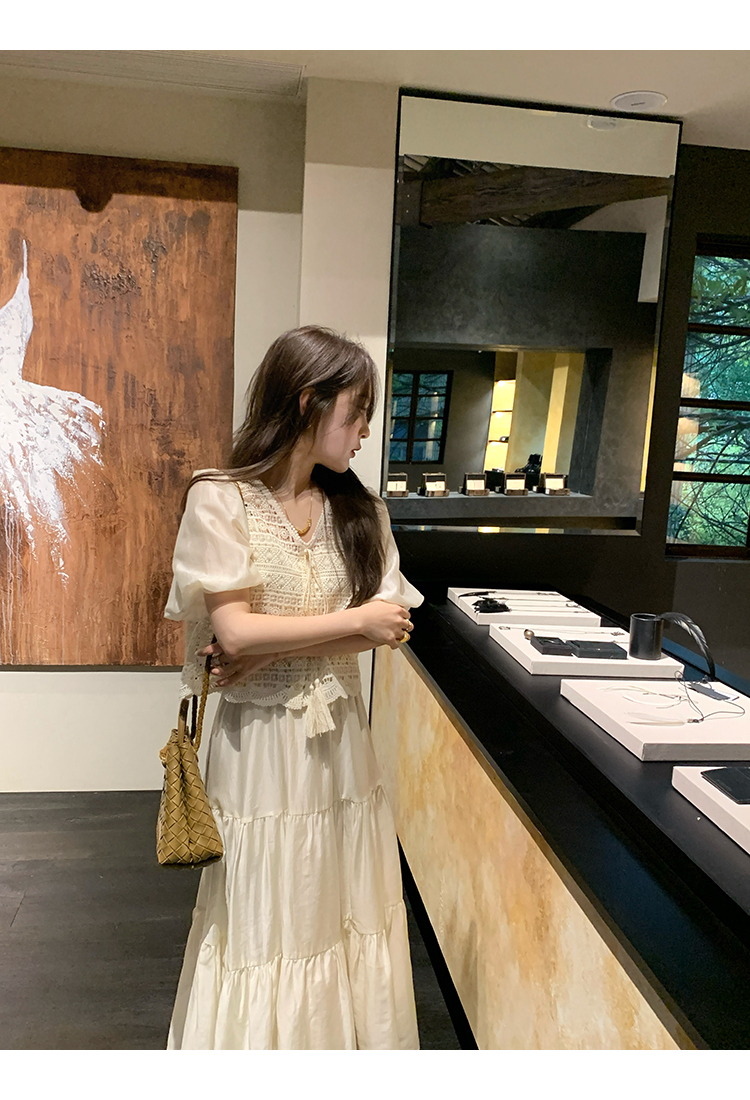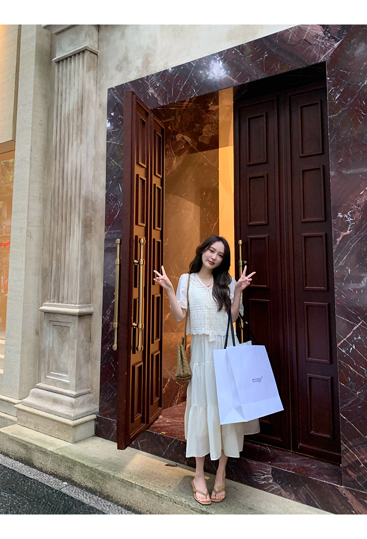 *o-ha-you*【FMQD2042033】海濱假日-波西米亞風鉤花套裝鏤空上衣/天絲吊帶裙洋裝