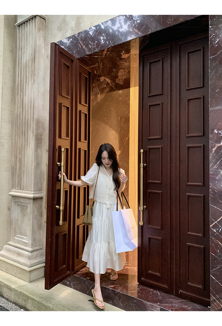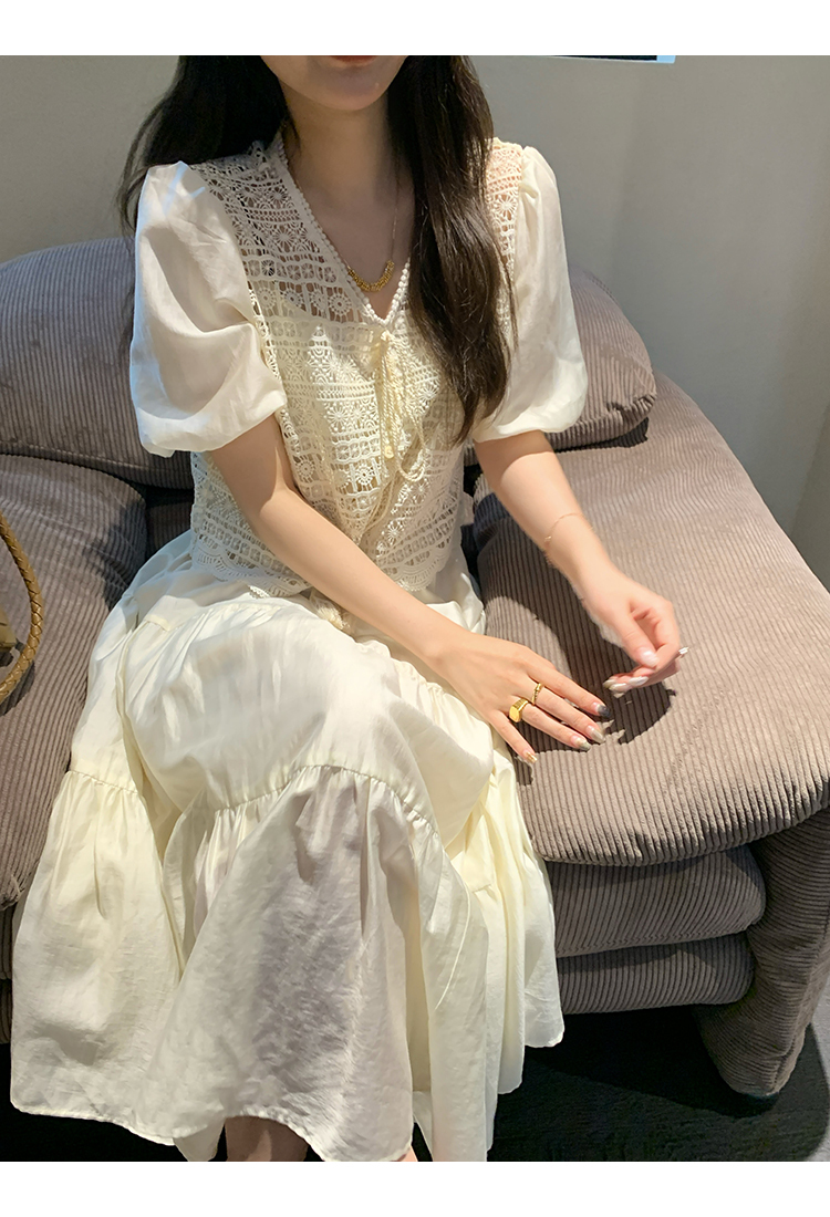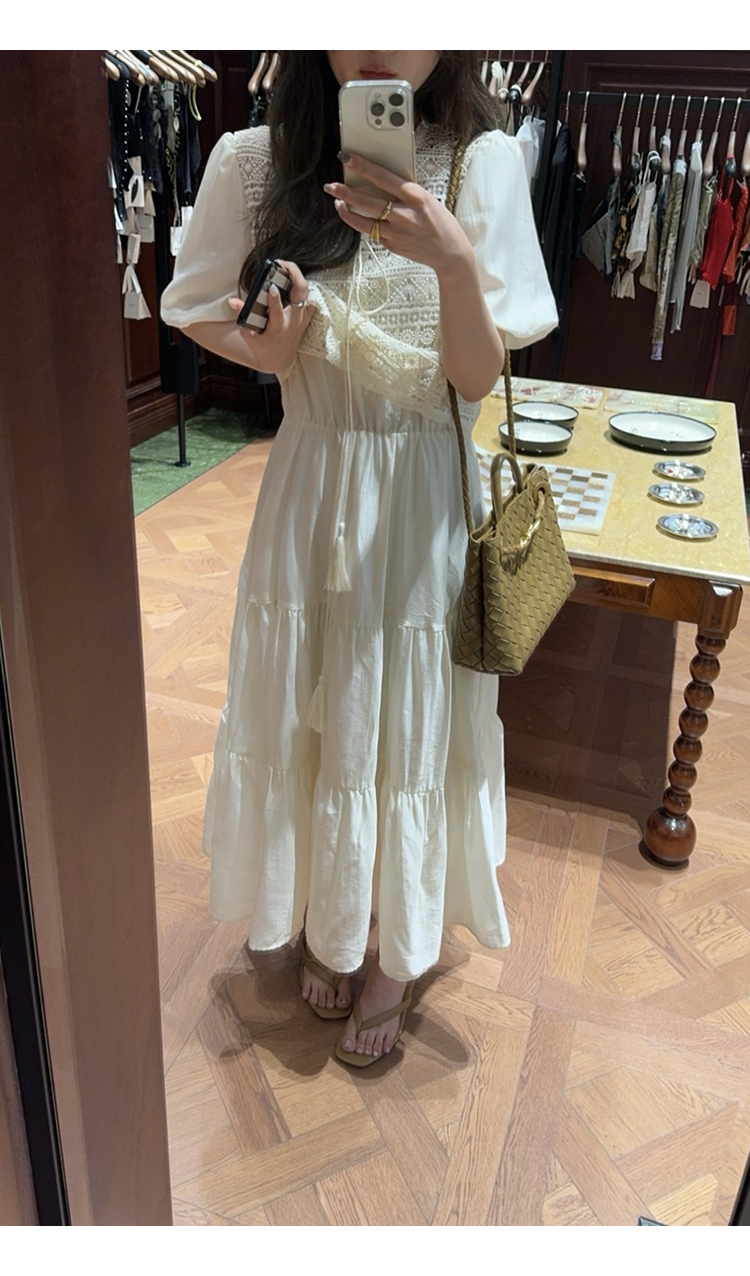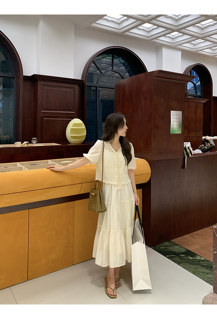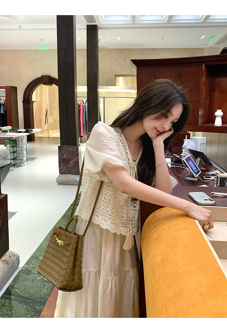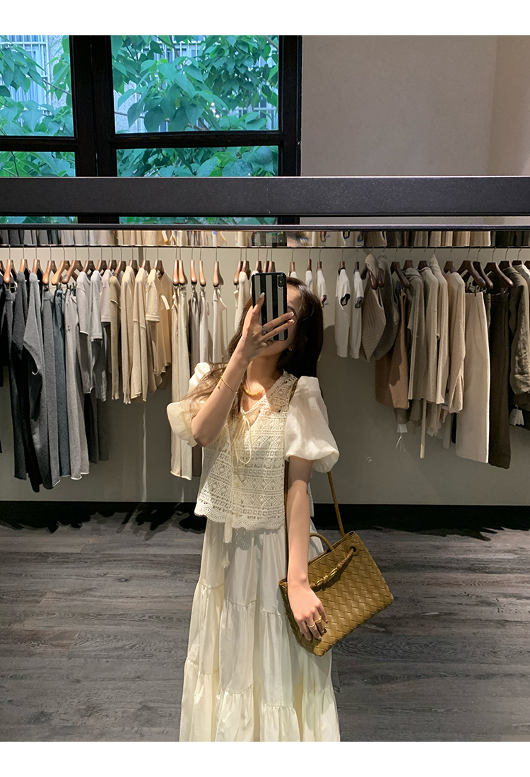*o-ha-you*【FMQD2042033】海濱假日-波西米亞風鉤花套裝鏤空上衣/天絲吊帶裙洋裝