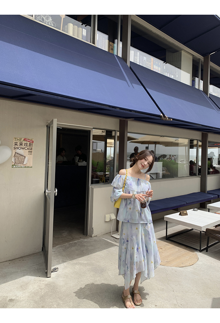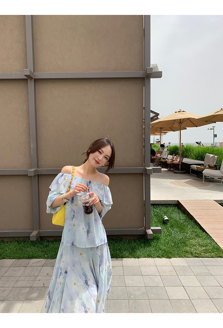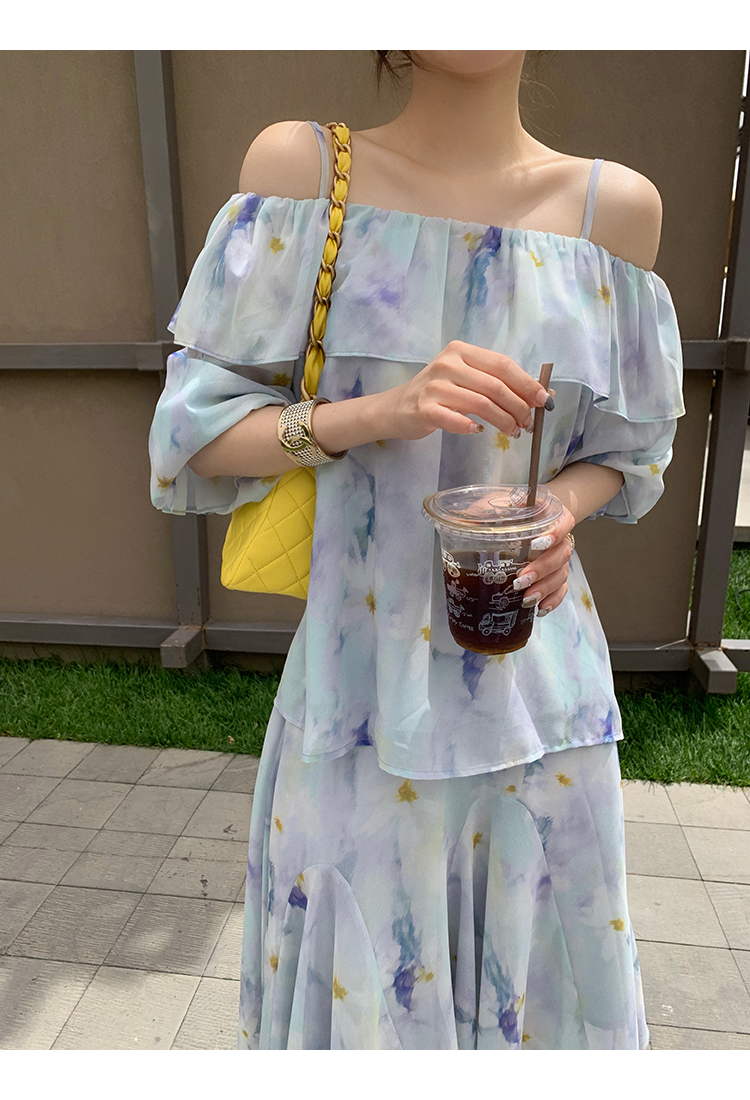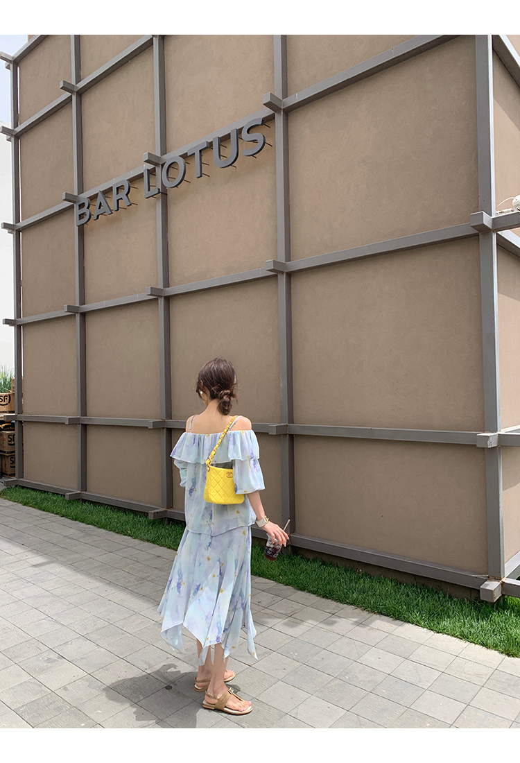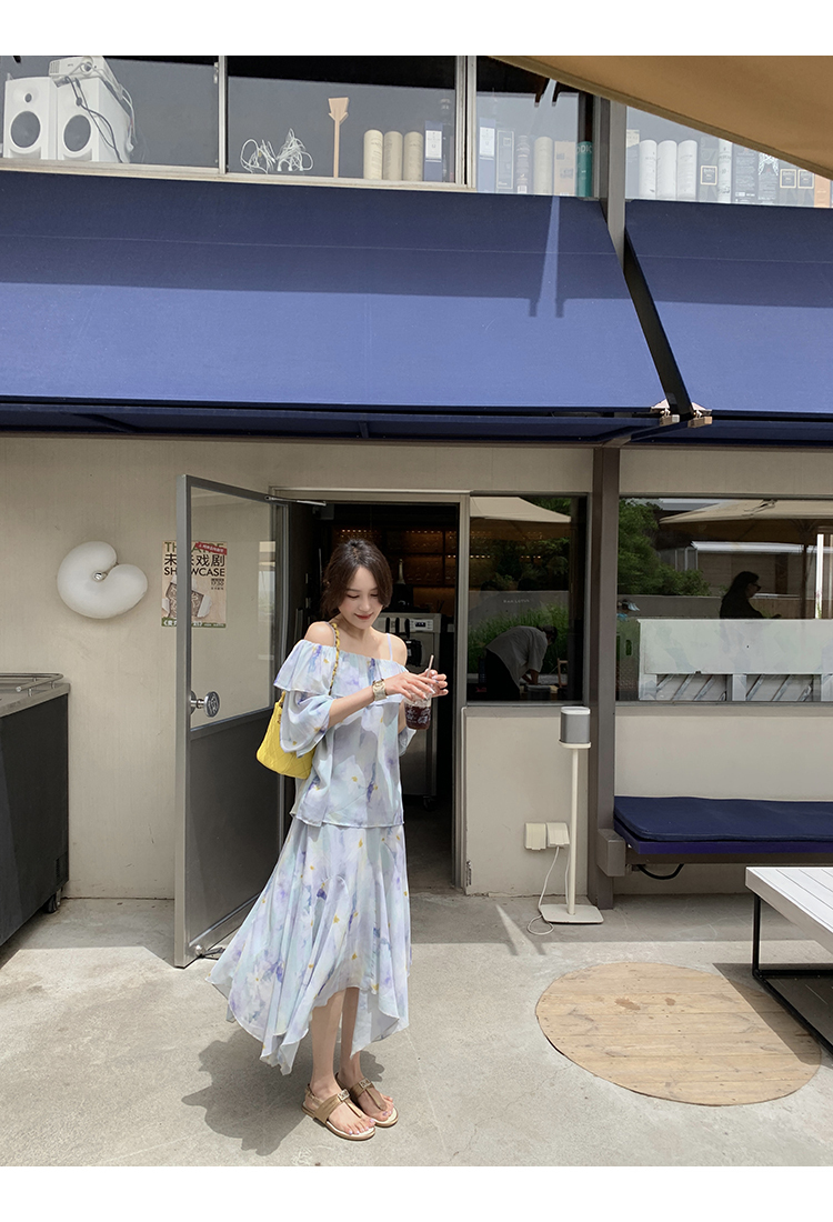 *o-ha-you*【FMQD2042063】江南煙雨-暈染系列訂製喬其紗輕盈飄逸 一字肩上衣/半裙/連衣裙洋裝