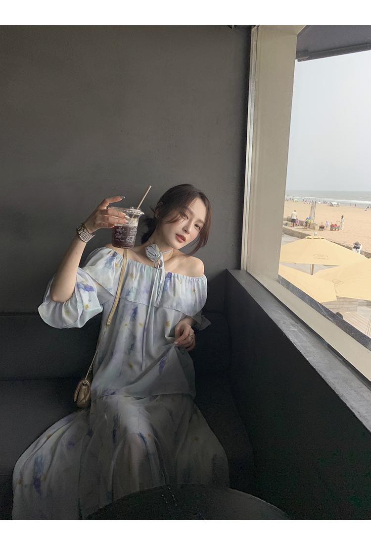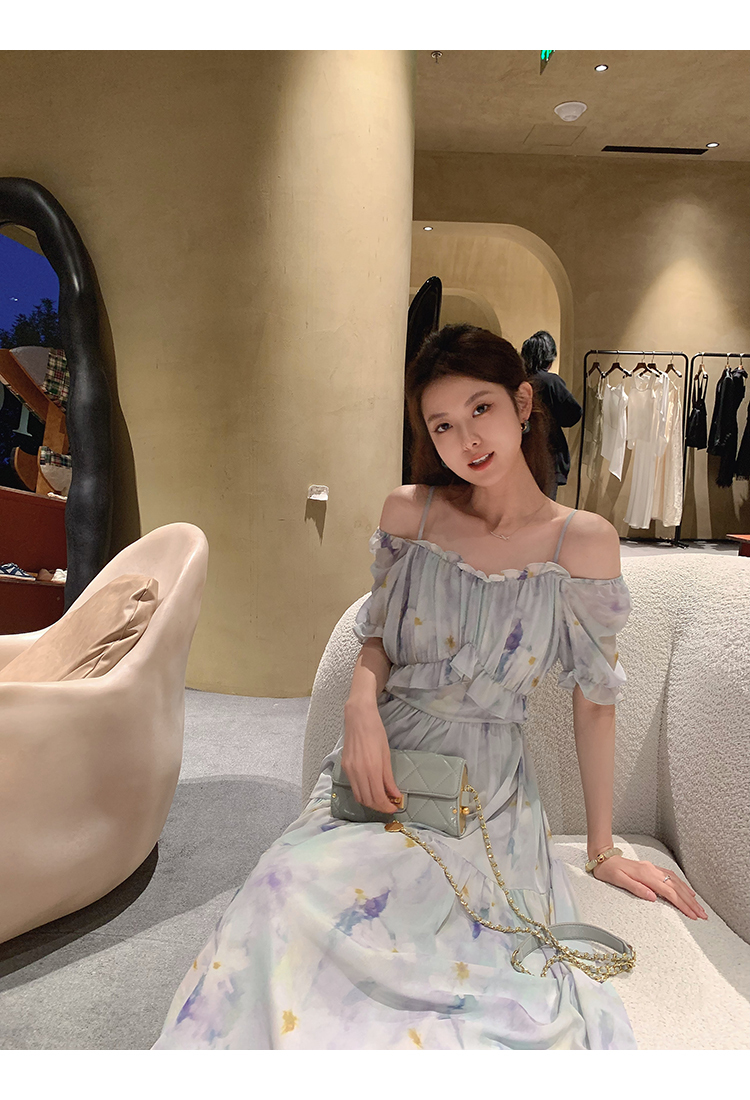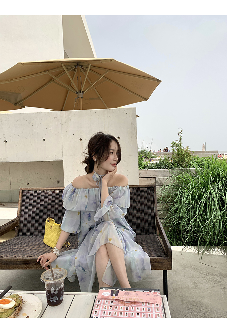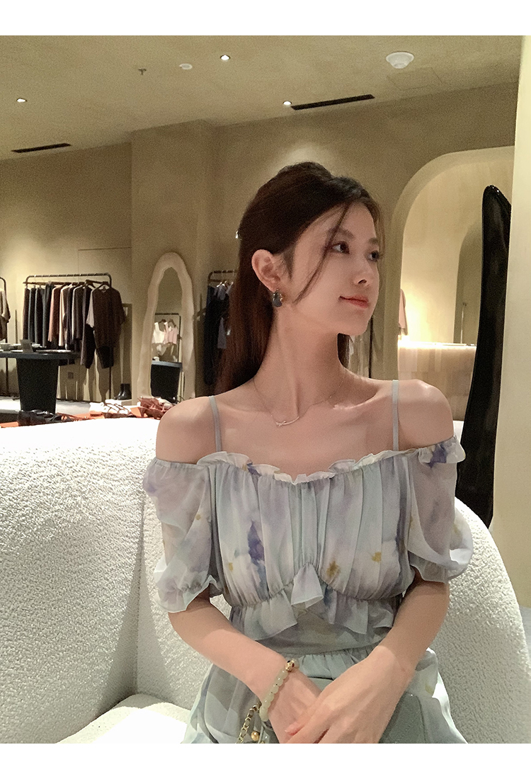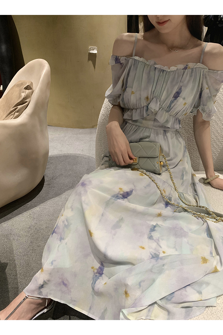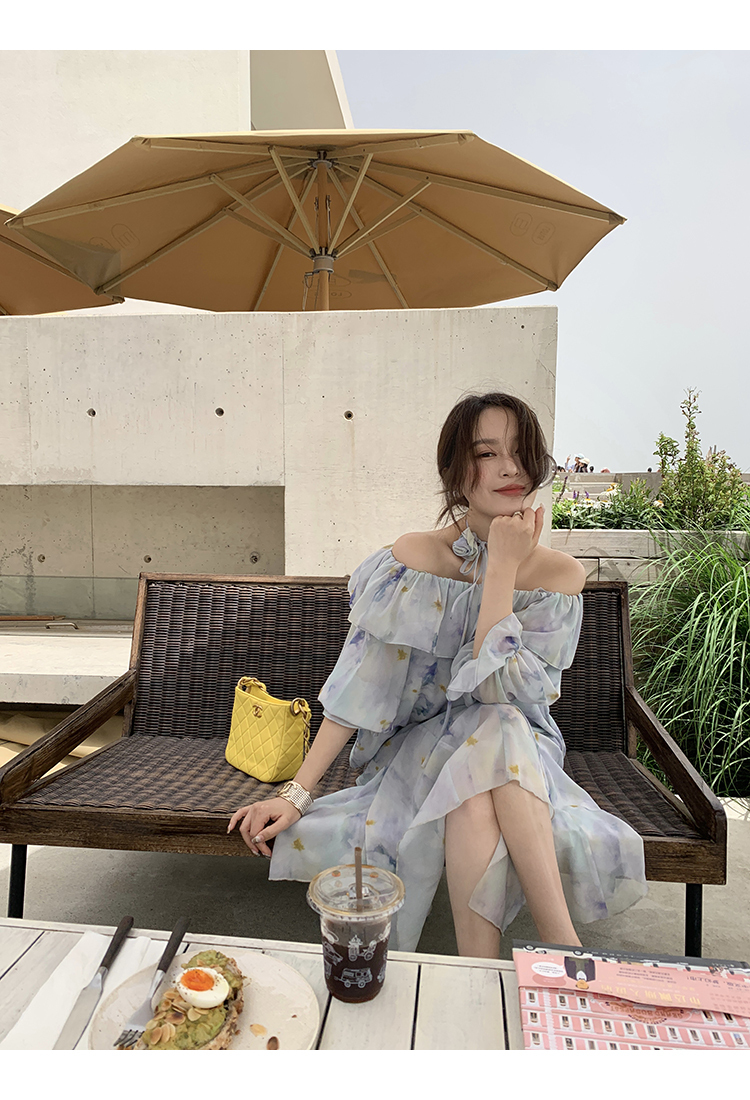 *o-ha-you*【FMQD2042063】江南煙雨-暈染系列訂製喬其紗輕盈飄逸 一字肩上衣/半裙/連衣裙洋裝