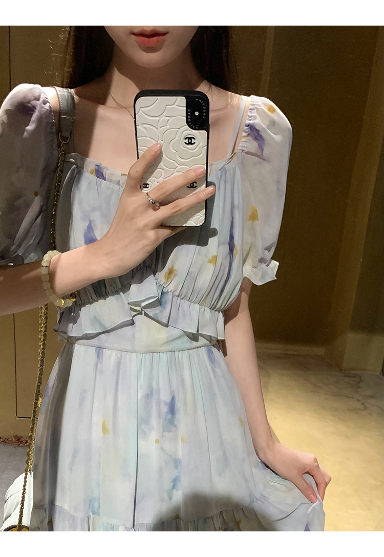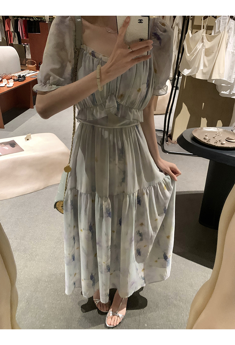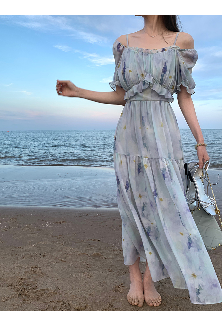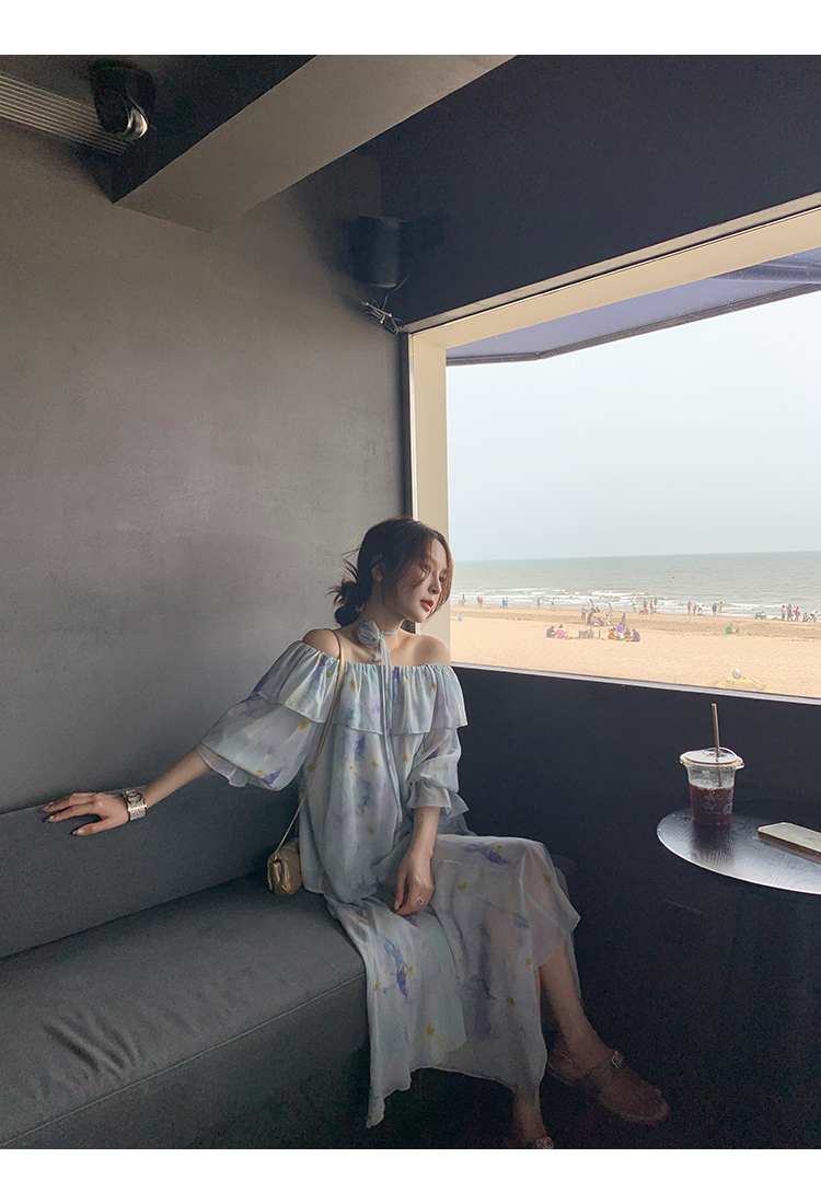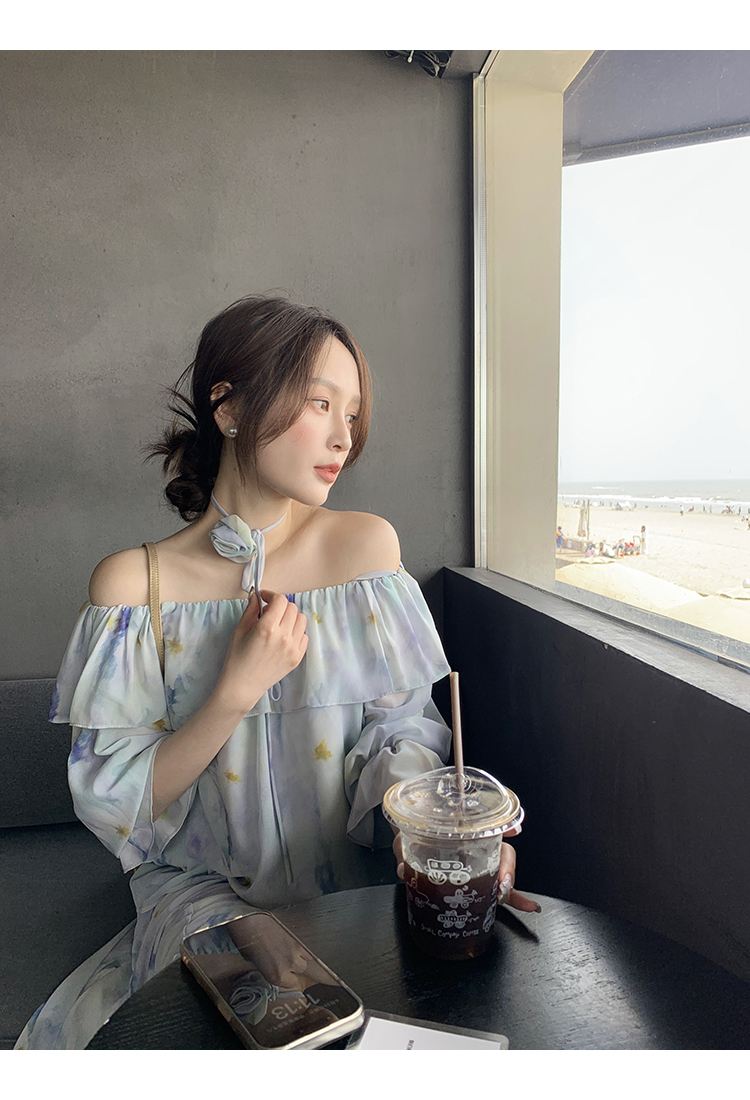 *o-ha-you*【FMQD2042063】江南煙雨-暈染系列訂製喬其紗輕盈飄逸 一字肩上衣/半裙/連衣裙洋裝