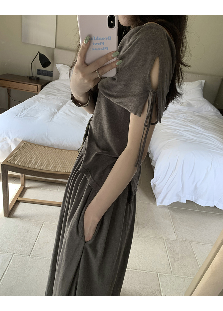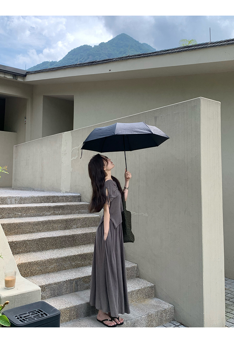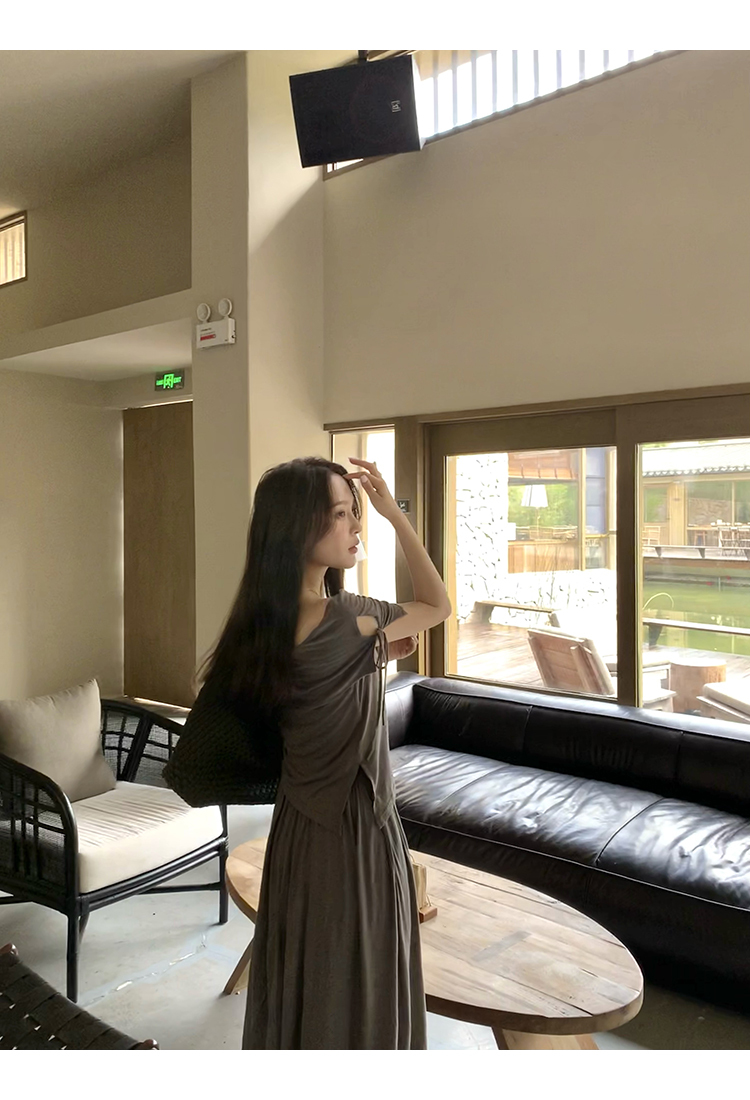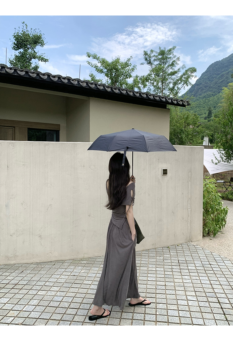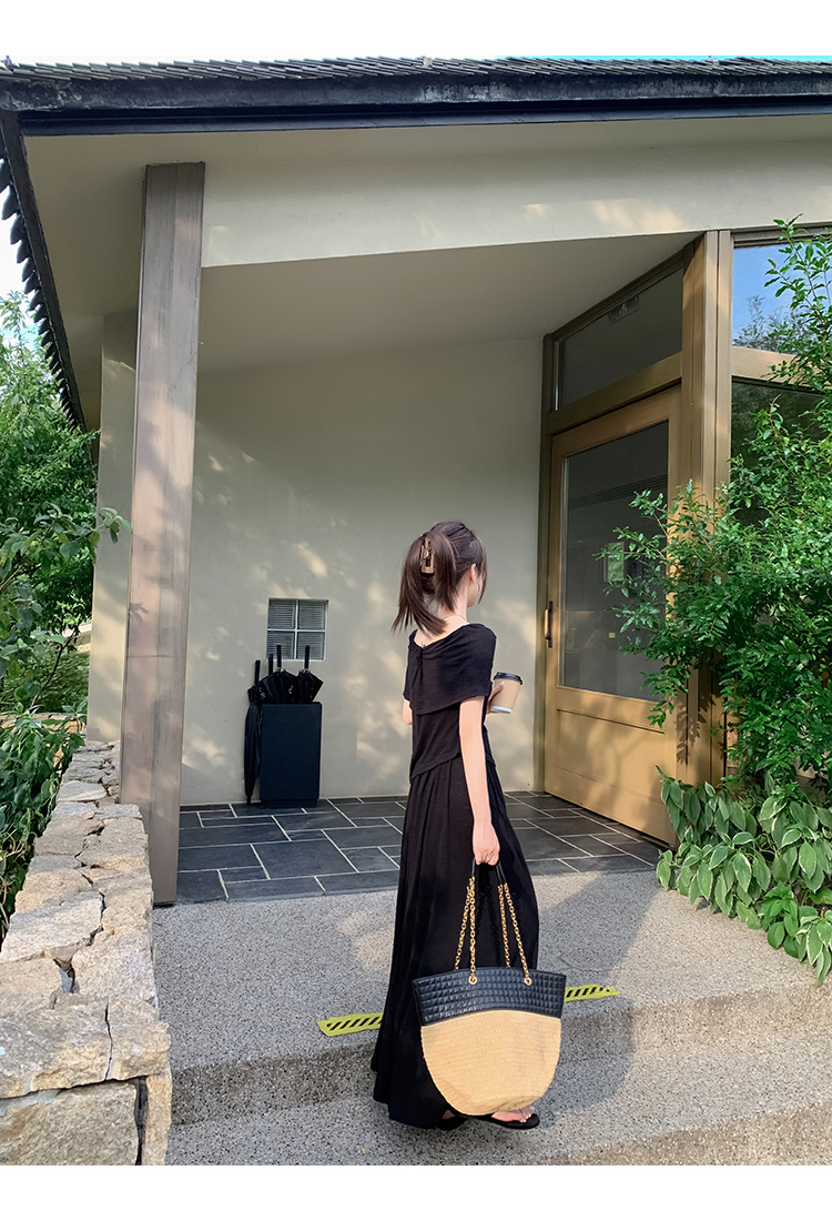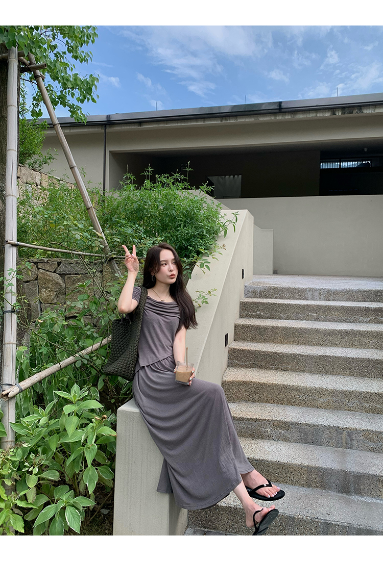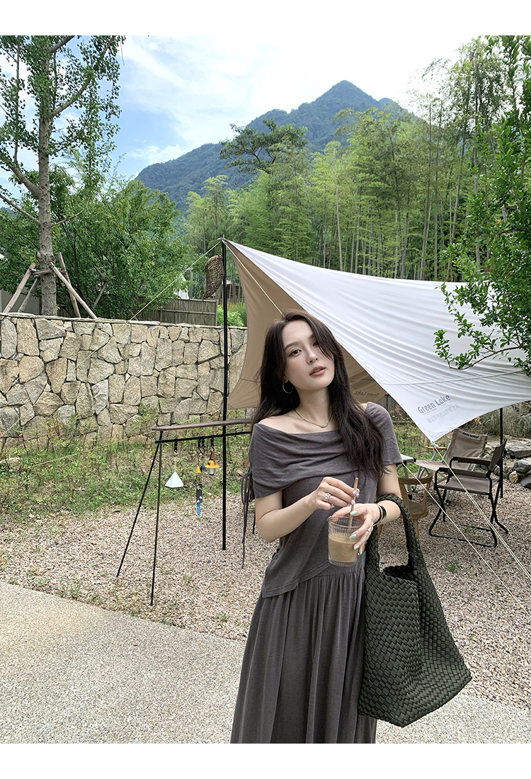 *o-ha-you*【FMQD2042064】繆斯姊姊紙片人look套裝訂製亞麻針織一字肩上衣/大擺半裙